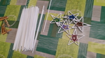 Nejprve jsme takto spojili dvě trubičky a začali ohýbat, aby nám vznikl konečný tvar hvězdy. Oba konce jsme zajistili kolíčky a slepili tavicí pistolí. Na závěr jsme pomocí omotané bavlnky zvýraznili střed hvězdy.