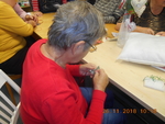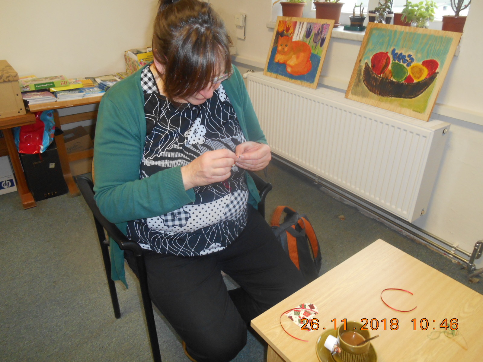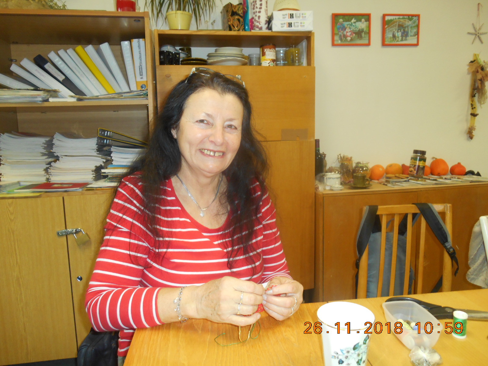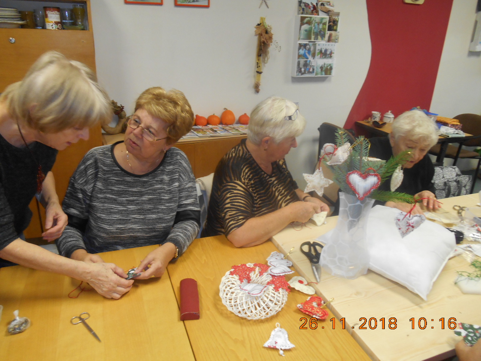 V čase předvánočním k nám zavítala opět paní Talábová, která si pro nás tentokrát připravila výrobu textilních vánočních dekorací. Přestože většina z nás měla strach, když uslyšela slova jehla a nit, ale nakonec jsme to všichni zvládli na jedničku a odnesli si domů nejen už příjemnou vánoční atmosféru ale i svůj výrobek.