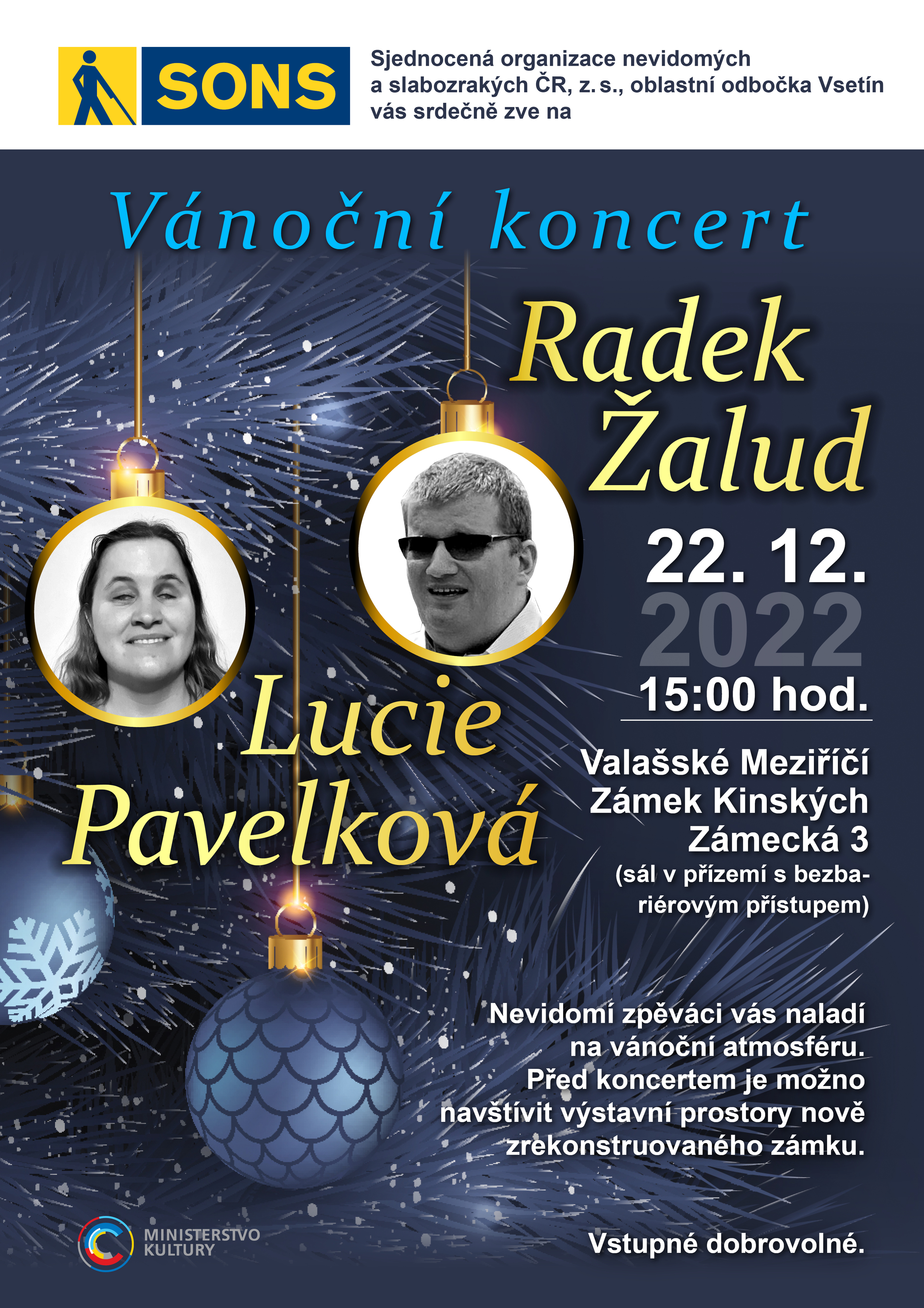 Nevidomí zpěváci vás naladí na vánoční atmosféru. Před koncertem je možno navštívit výstavní prostory nově zrekontruovaného zámku. Vstupné dobrovolné.