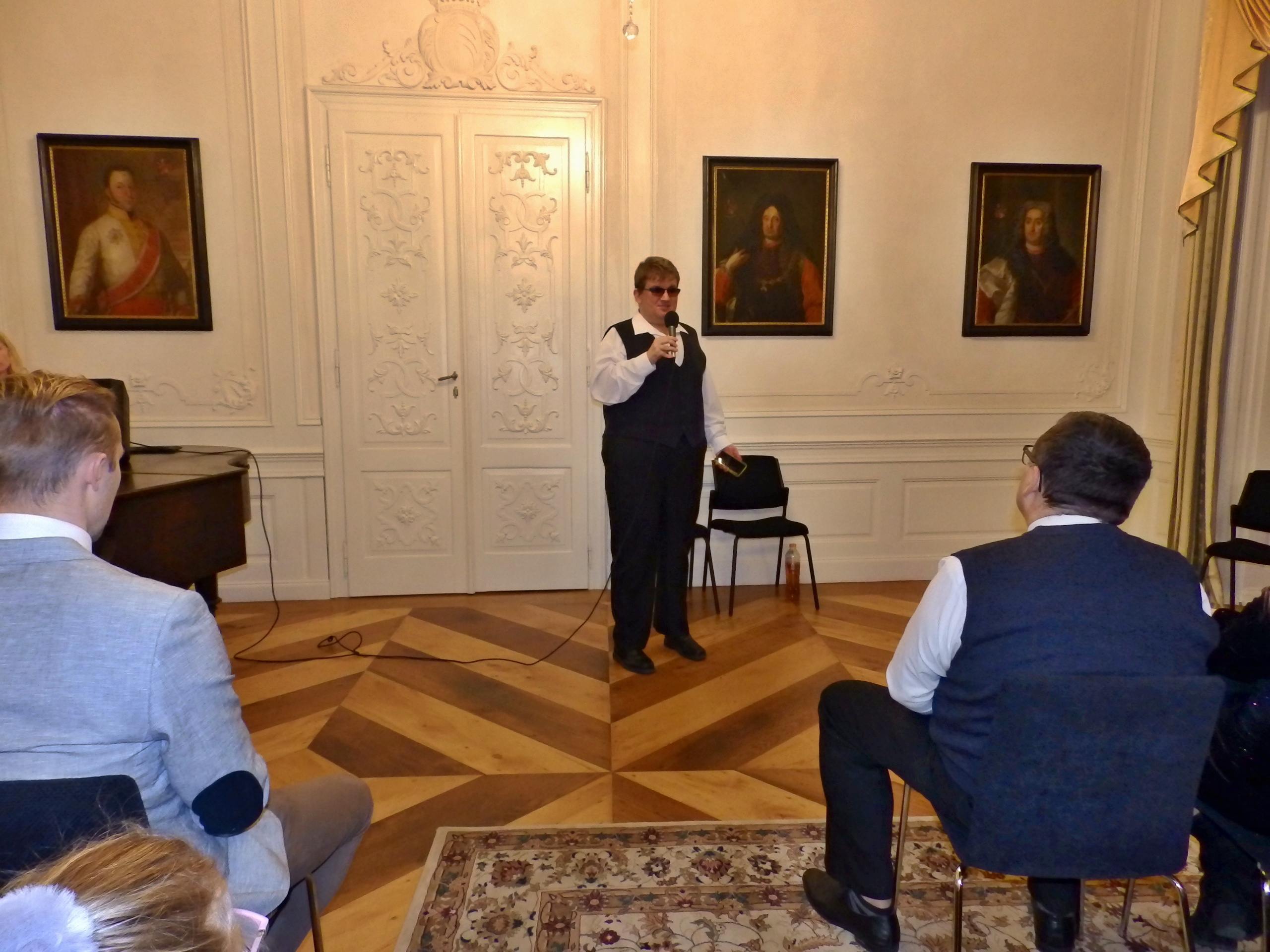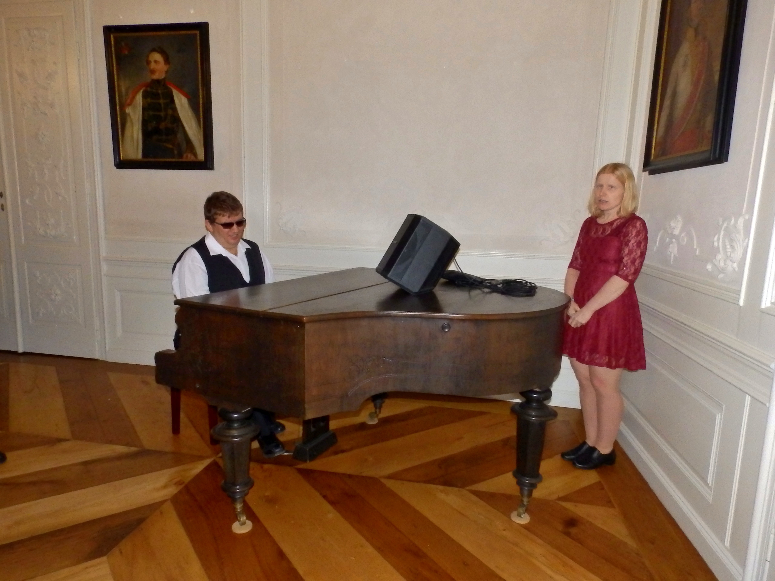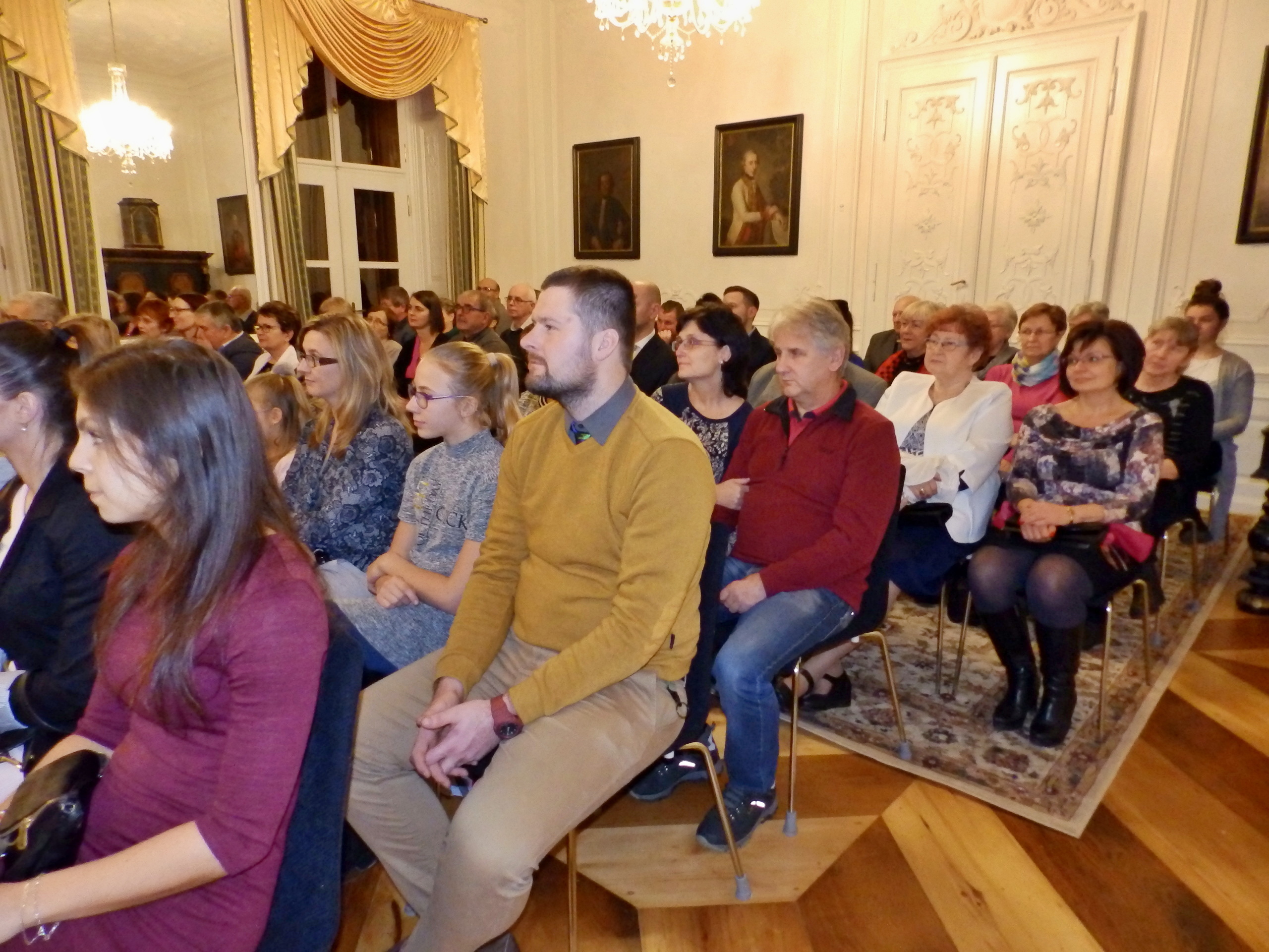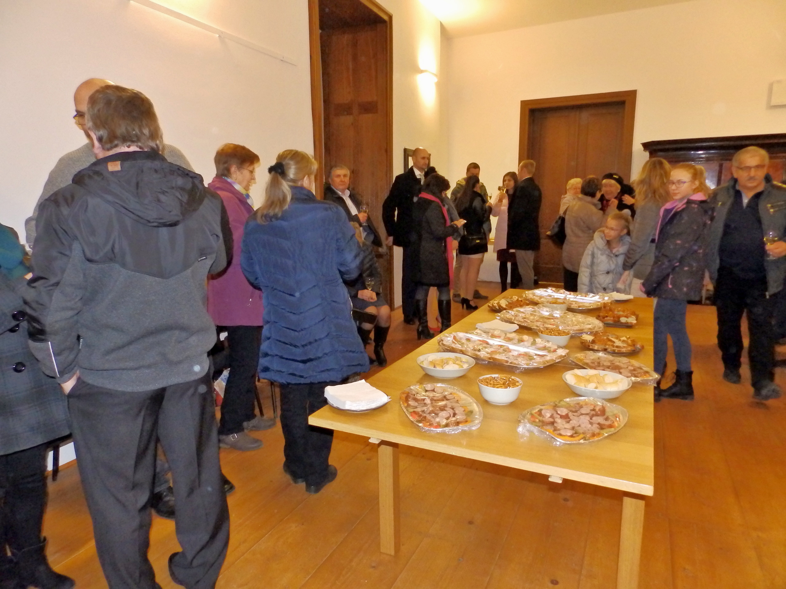 V této dobré pohodě se přítomní přemístili do dalších zámeckých prostor, kde při malém občerstvení a opět za hudebního doprovodu při přípitku a proneseného zpěvu písně „Ta naše písnička česká“, byl ukončen nejen koncert, ale i plodný rok 2018.