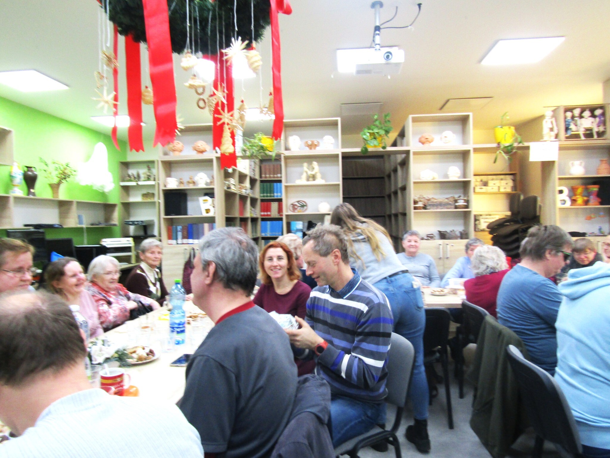 Přijedou mezi nás i ti, kteří běžně ze zdravotních důvodů se nemohou účastnit našich pravidelných aktivit. Takže je to i takové malé, společenské a sváteční setkání. Na tom letošním setkání nám v úvodu pásmo koled zazpíval náš pěvecký sbor Pastelky. Kdo už má na svátky napečeno, přinese malou ochutnávku i pro ostatní, takže se stoly zaplní samými sladkostmi jednohubky, my pak dodáme ovoce a něco na přípitek.