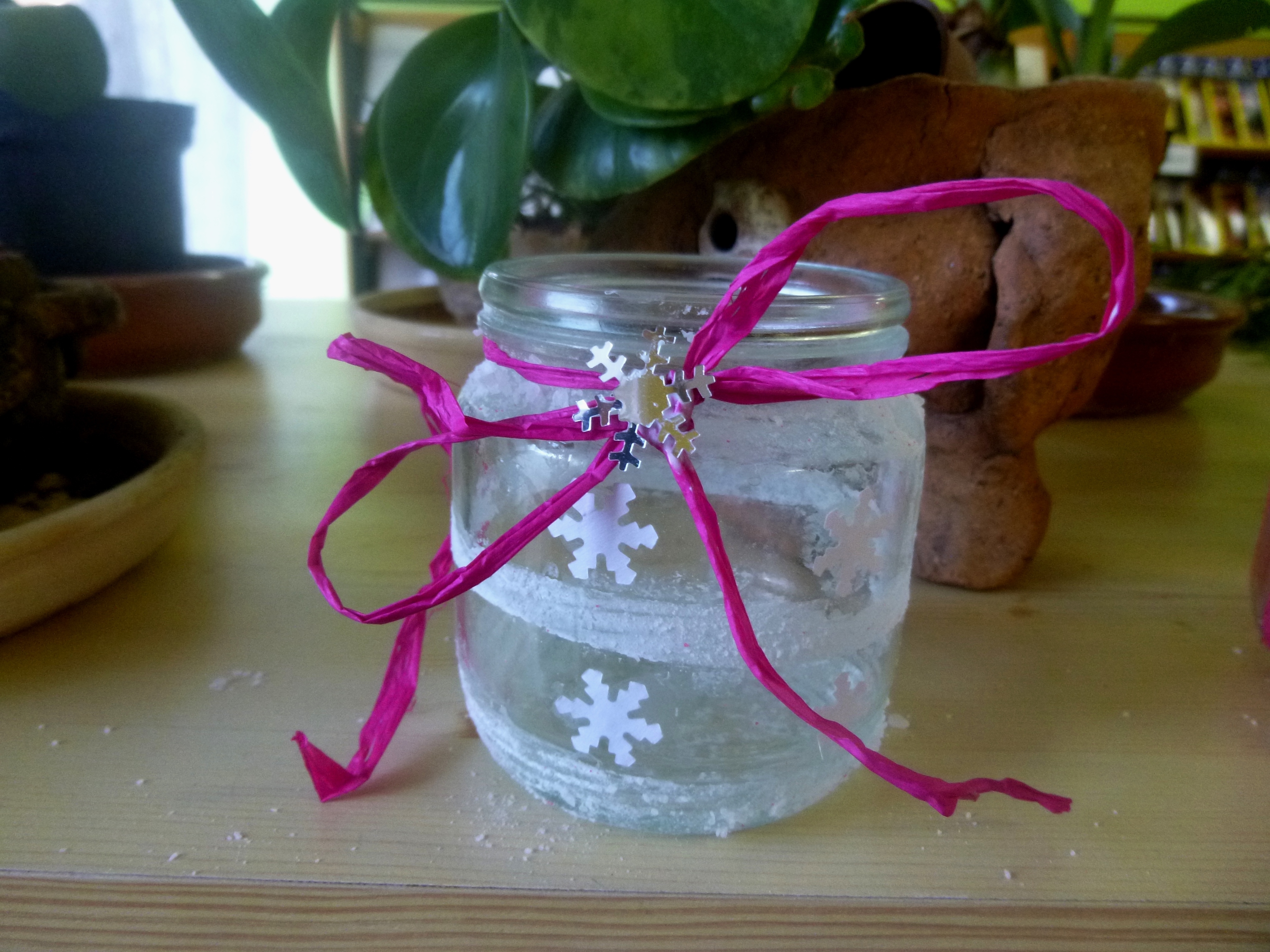Není třeba mnoho komponentů a výroba je velmi jednoduchá, kterou zvládnou i nevidomí lidé. Buď sami a vytvoří si svůj nepravidlený a jedinečný originál, nebo za minimální pomoci vidící osoby vyrobí přesně takový, jakou mají představu. I bez kontroly zraku lze sklenici jednoduše potřít lepidlem, tam kde lepidlo pokryje plochu sklenice, se vyválí sůl, strhne se malířská páska, popřípadě se dolepí či dováží malé ozdůbky, a krása je na světě.