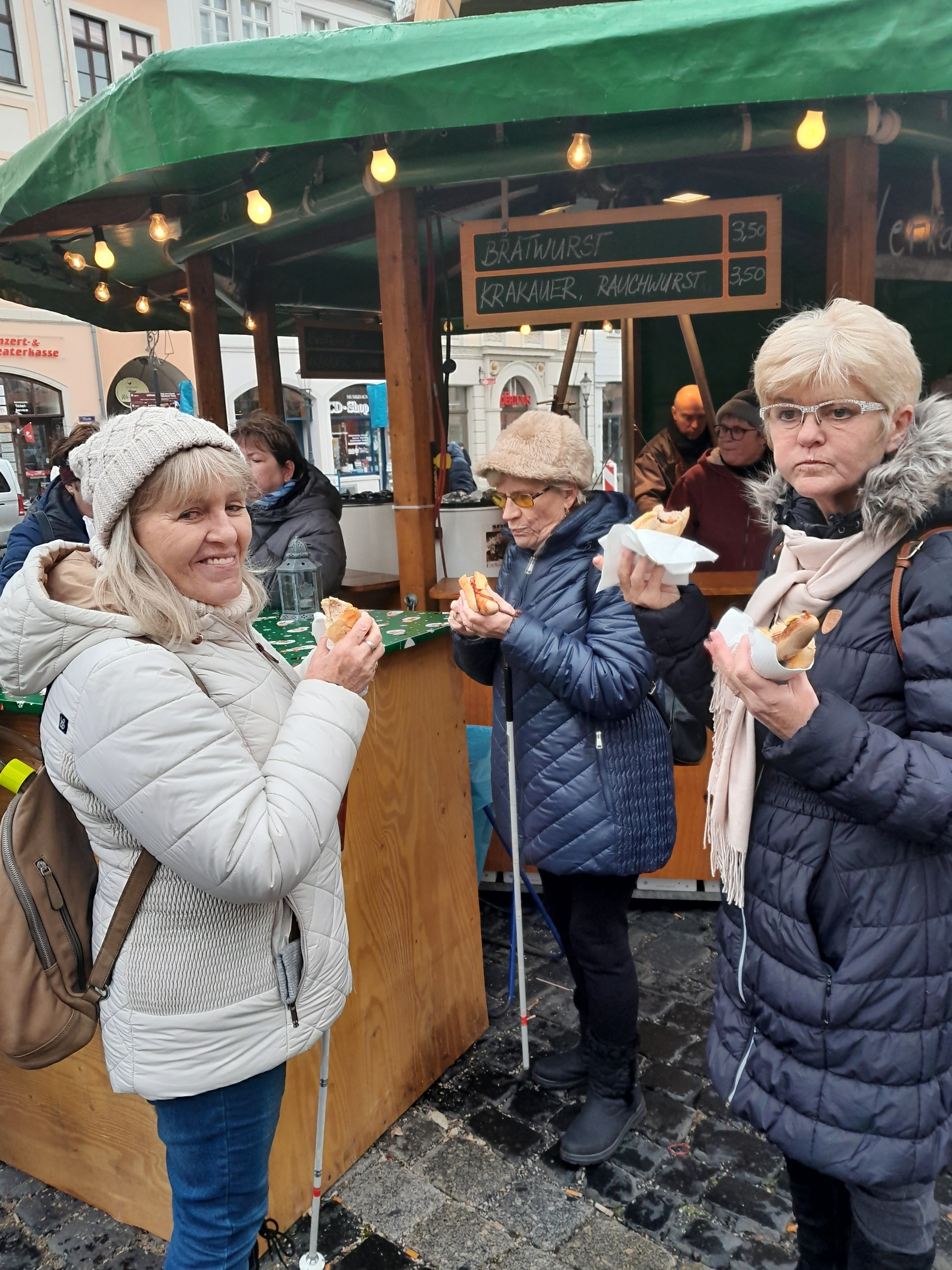 Ve středu 7. prosince 2022 jsme spolu s jabloneckou odbočkou SONS navštívili Vánoční trhy v Žitavě. Počasí nám nepřálo - pršelo, foukalo, ale nás to neodradilo. V historickém centru Žitavy jsme si pochutnali na klasické německé klobáse - bratwurst a svařáku :-). Dobrá nálada nás provázela po celou dobu.