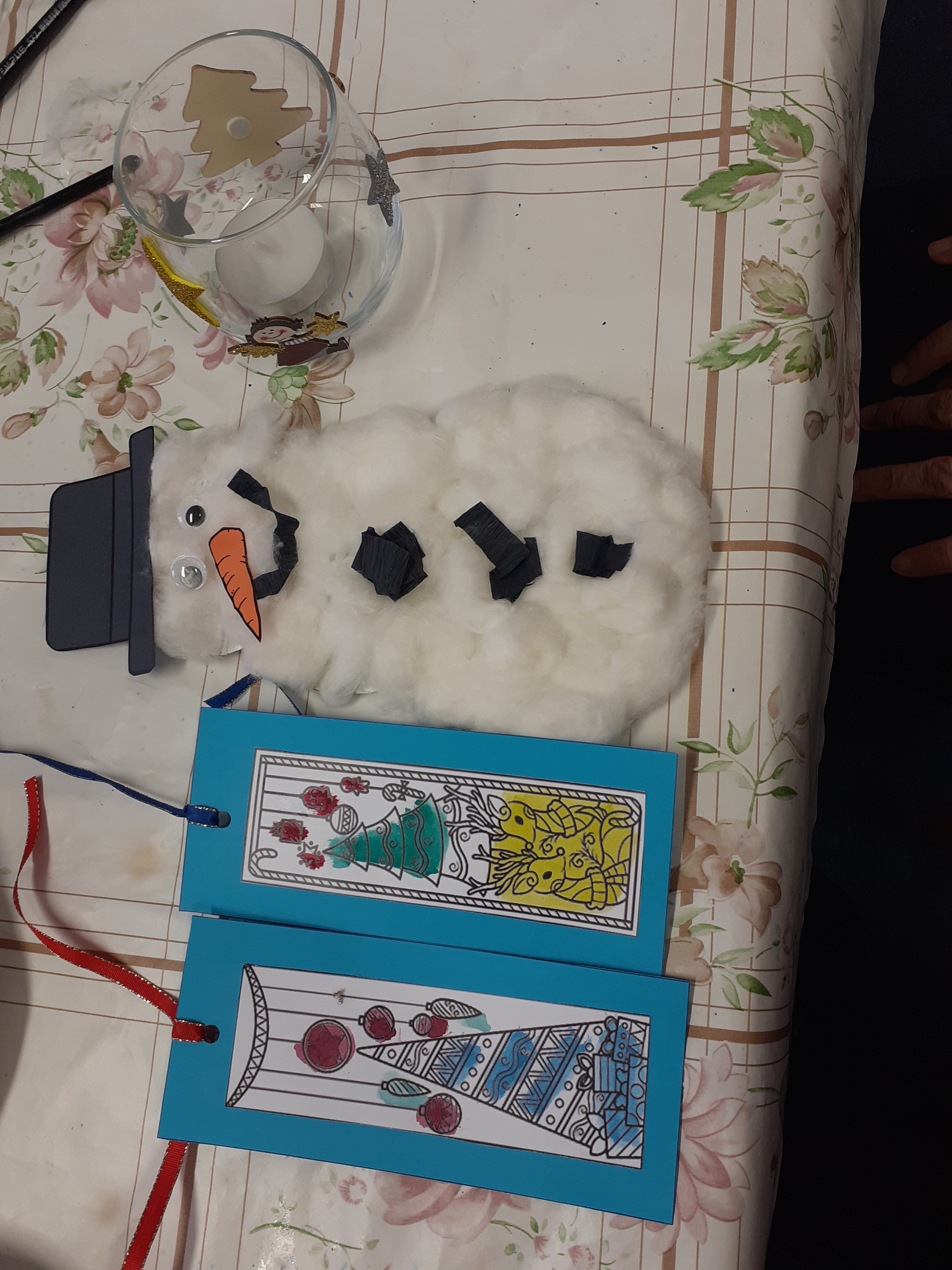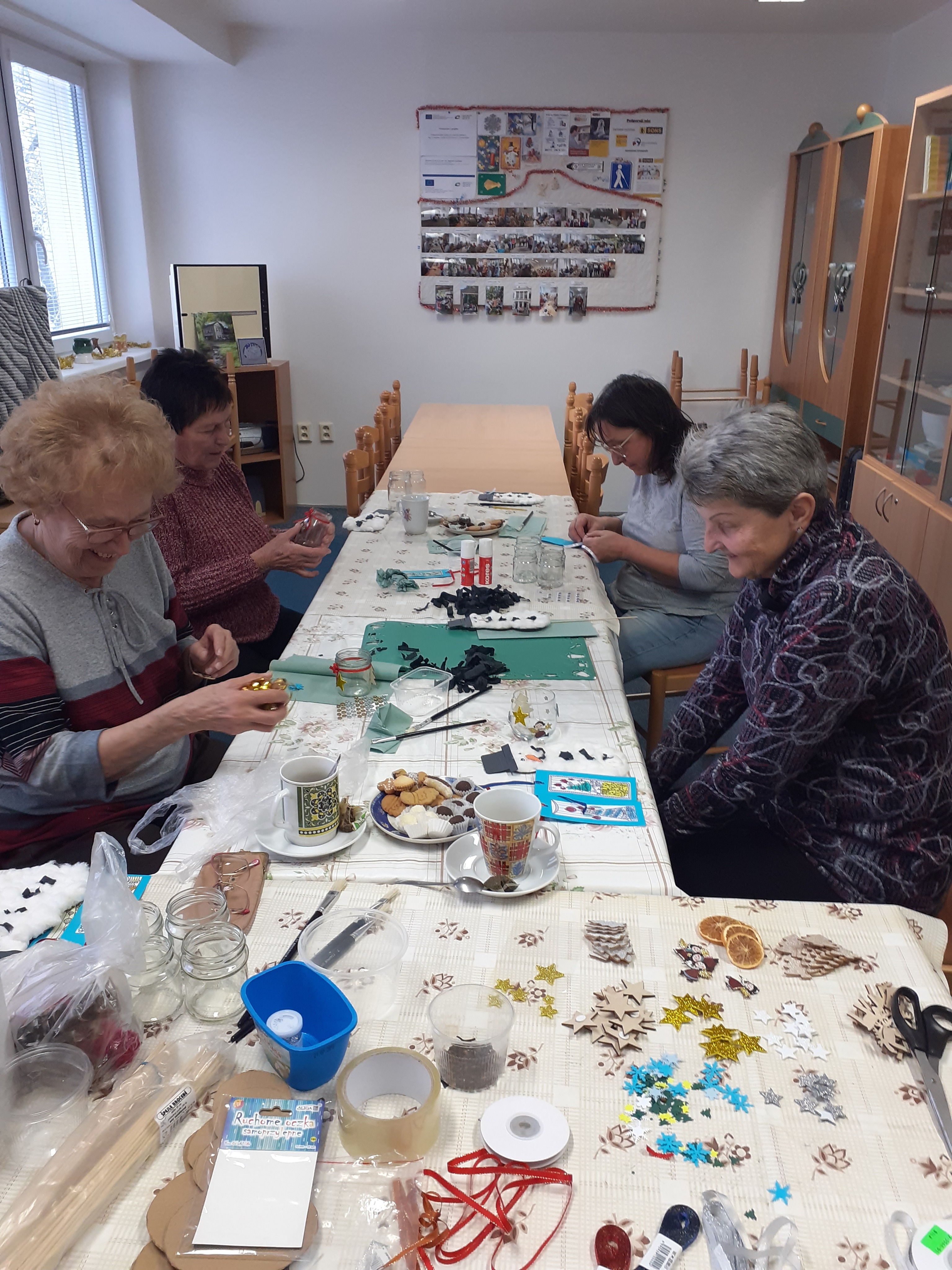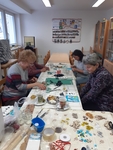 Dne 7. 12. v klubovně naší odbočky proběhla sociálně aktivizační činnost - vánoční tvoření, kdy jsme s uživatelkami vyráběly vánoční věci. Připravila jsem si pro ně podklady a šablony k výrobě vánoční záložky, vánočního zápichu ve tvaru sněhuláka a vánoční svícen. Zprvu jsem uživatelkám vždy ukázala, jak to má vypadat, poté jim rozdala materiály a ony již samy vyráběly. Když potřebovaly s něčím pomoct, tak si řekly. Společně jsme si taky vyrobily pěkné vánoční produkty. Cílem této SAS je, aby uživatelky procvičily jejich jemnou motoriku a pomohly být ve společenském prostředí.