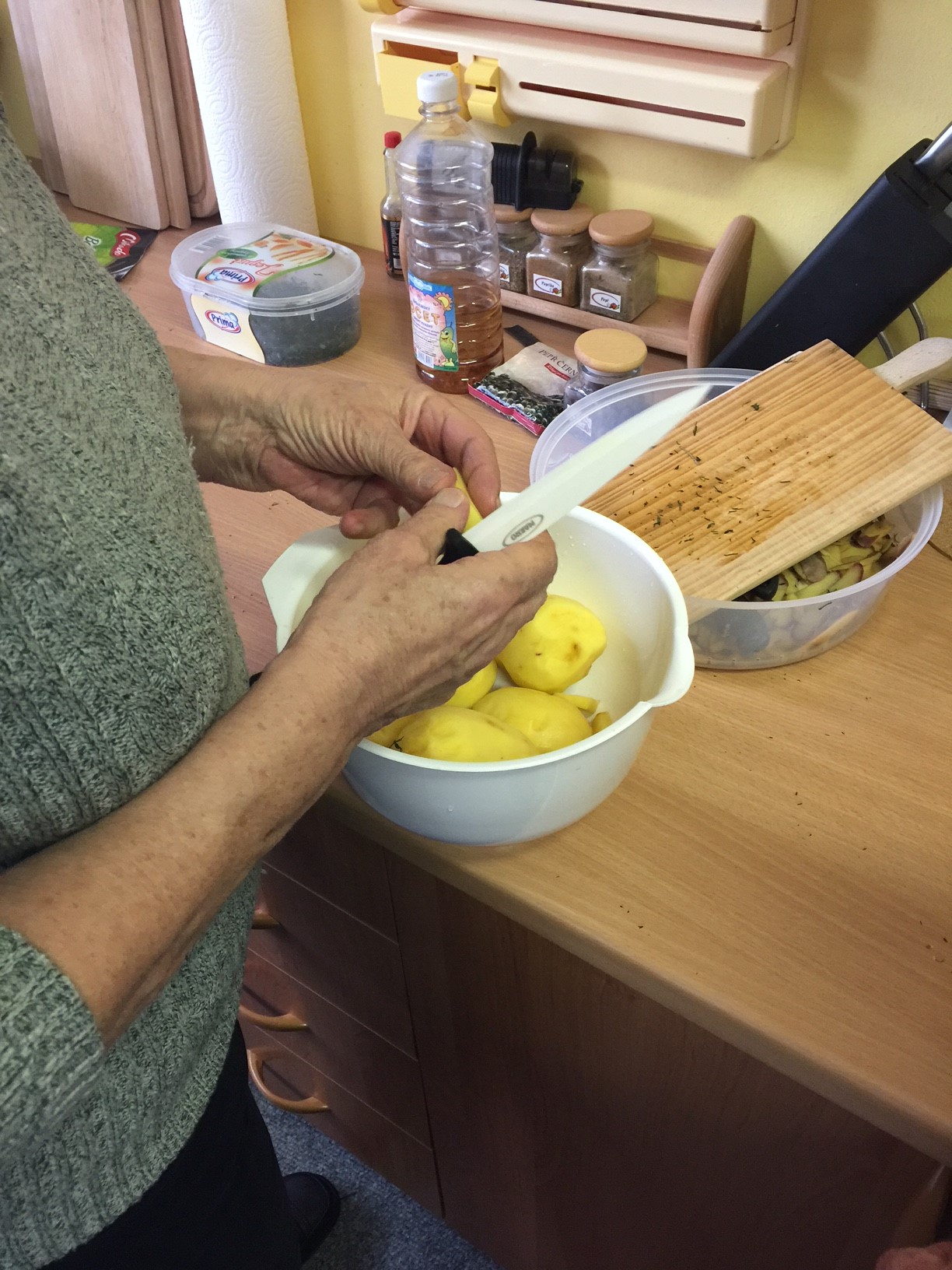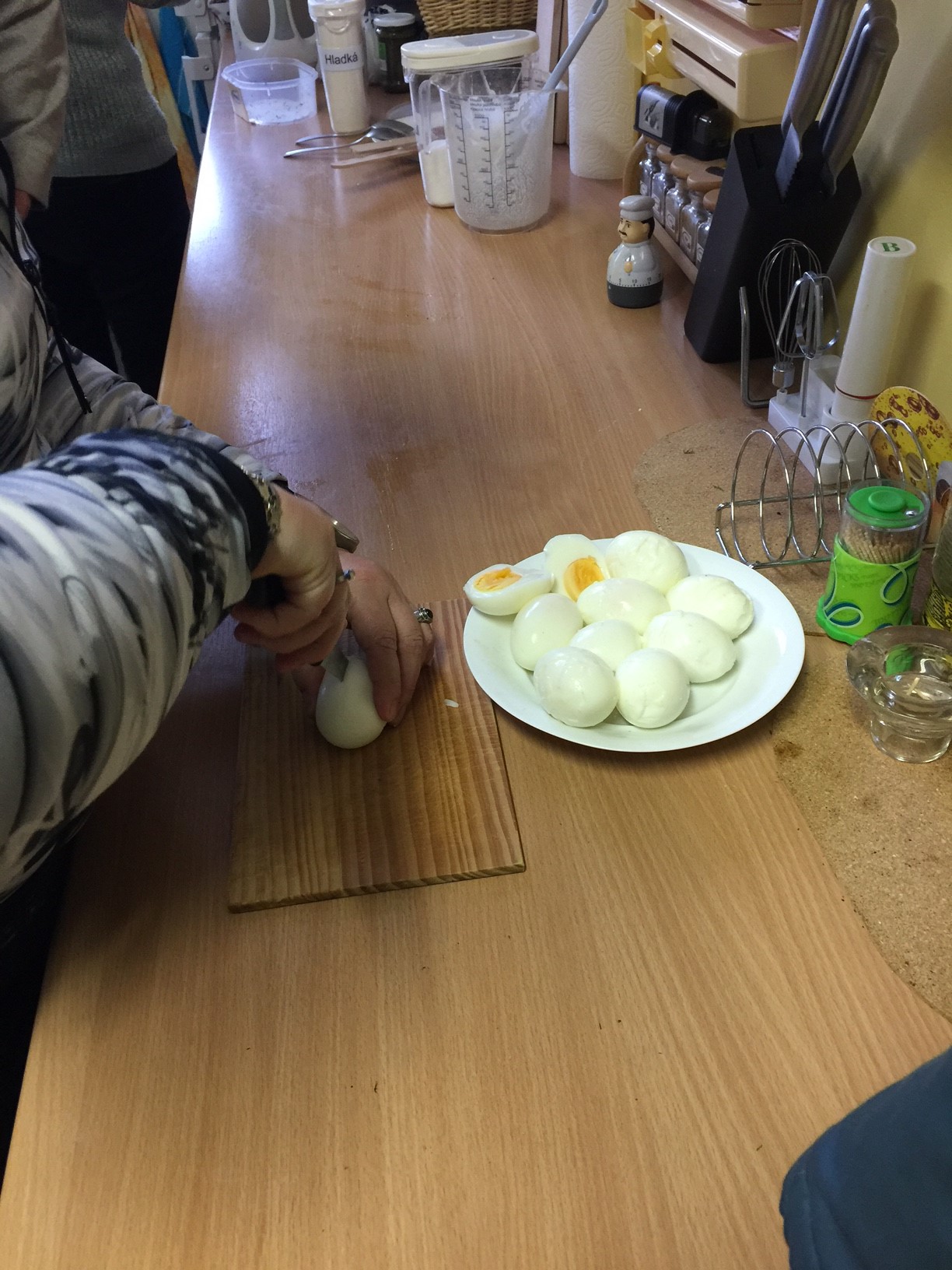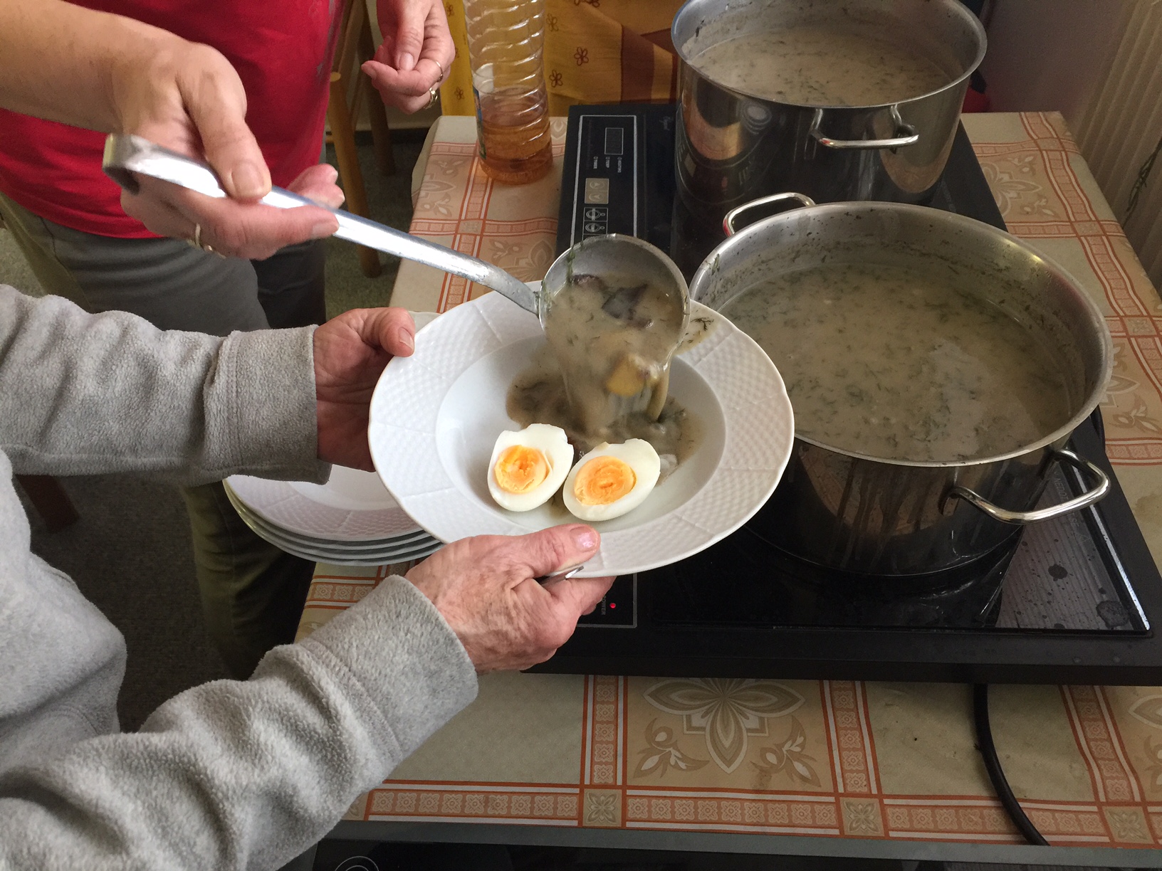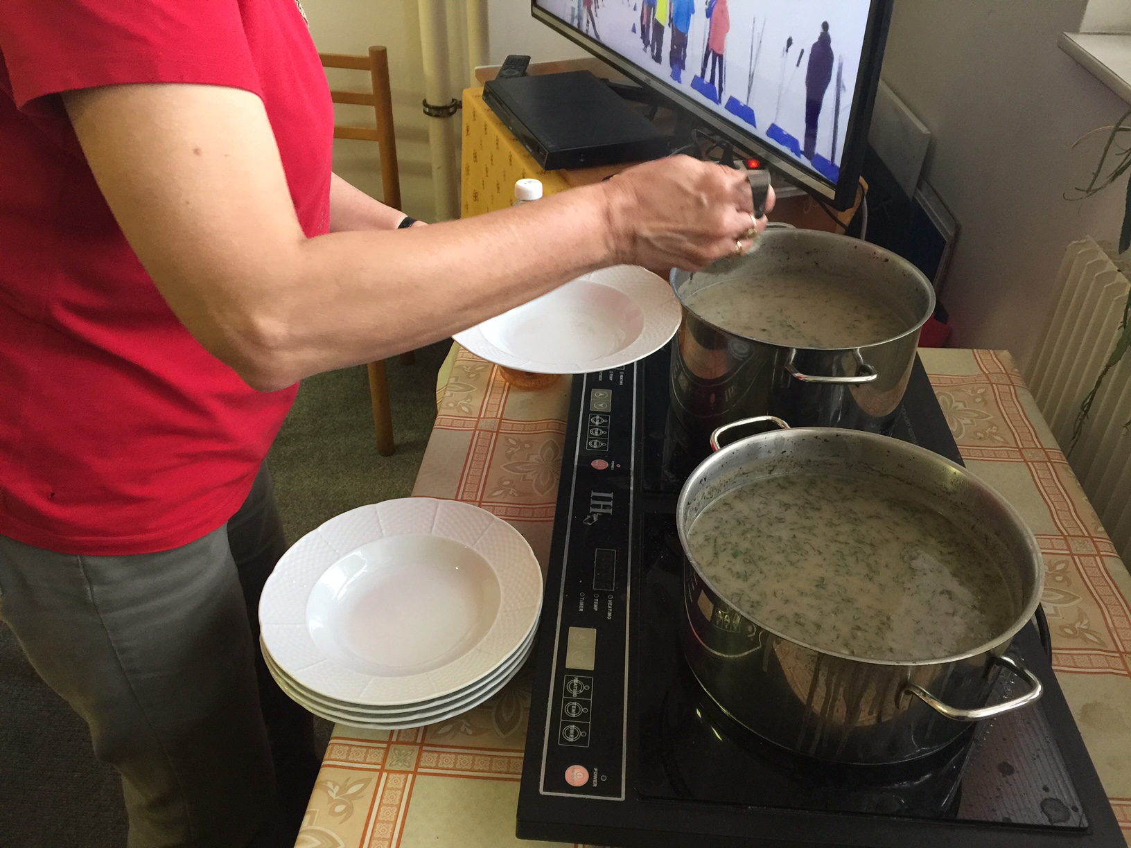 Dnes jsme se po nějakém čase opět vrátili k vaření – nácviku a procvičování sebeobsluhy, samostatnosti a soběstačnosti. Vařila se kulajda. Pro někoho možná obyčejné jídlo, ale tato velmi chutné polévka byla zvolena záměrně, jako „odlehčení“ po svátečním nadměrném přísunu všemožných pochutin a přecpávání se. Původně jsme zvažovali nějaký salát, ale v tomto období je zelenina, zejm. pak rajčata, ale i paprika drahá a tím bohužel pro mnohé nedostupná. I pro nás, co jsme ve své činnosti odkázáni na dary sponzorů.