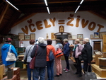 Prohlídku muzea jsme zahájili v sále přednáškou o včelách a včelích produktech s videoprojekcí - kde jsme se dozvěděli mnoho zajímavého o životě včelího společenství, o jejich důležitosti pro životní prostředí a vlastně pro život lidstva. Současně jsme se občerstvili kávou, medovými perníčky, medovou limonádou, medovicí a nebo medovým pivem. Pak jsme se přesunuli do patra, kde je v podkrovním prostoru budovy umístěná expozice včelích úlů, medomedů, voskových včelích pláství, vykuřovadel a různých dalších pomůcek potřebných pro včelaře. Po prohlídce exponátů jsme si nakoupili v "medovém" obchůdku různé výrobky z včelích produktů, ať je to propolis, med, vosk nebo pylový prášek a nakonec jsme si prošli krásný venkovní areál. Výlet se vydařil a my jsme se vraceli domů s dalšími nově nabytými vědomostmi o včelkách a se slibem, že se tam zase brzy vrátíme na některou z akcí, které muzeum a včelaři pořádají.