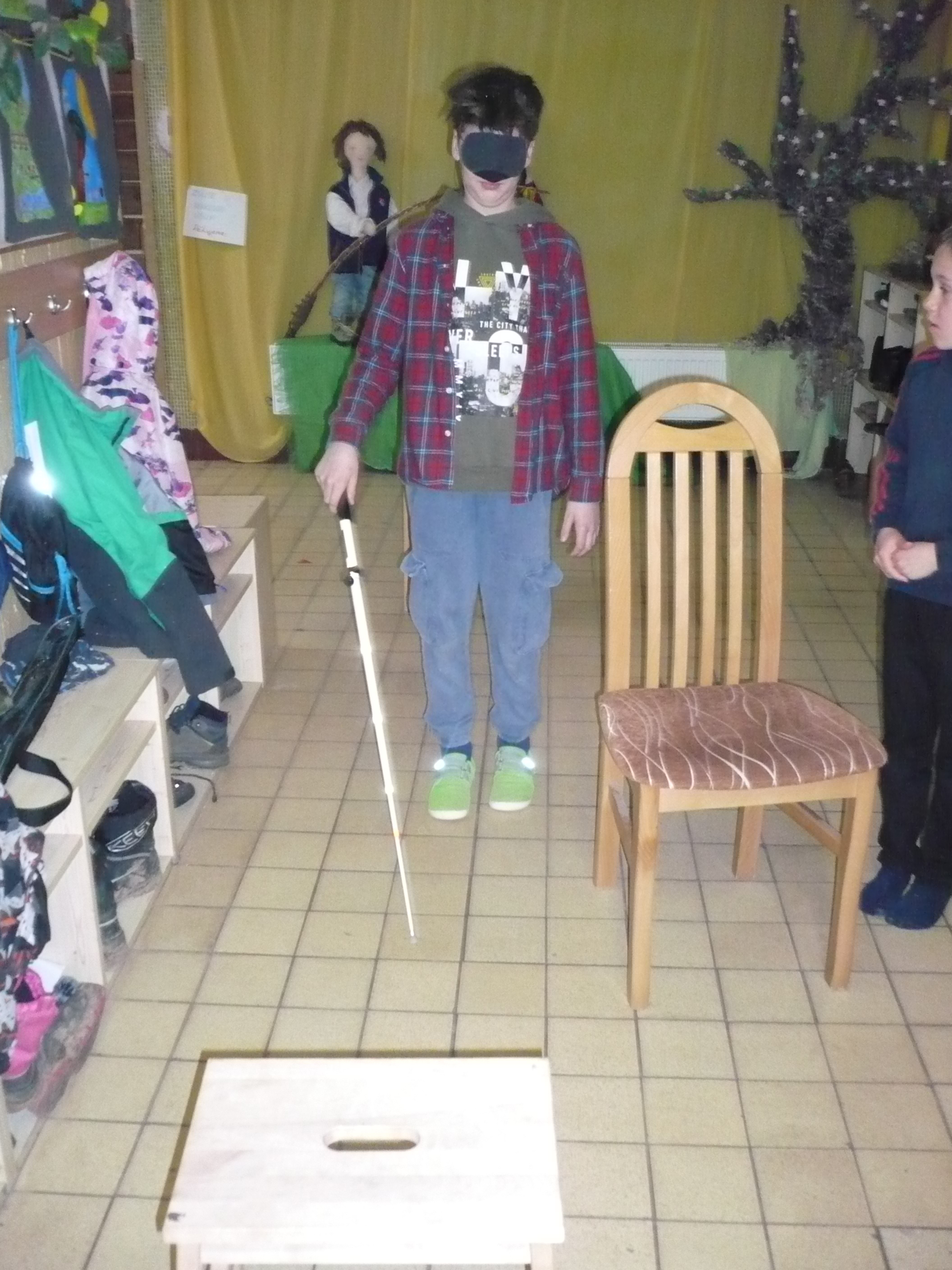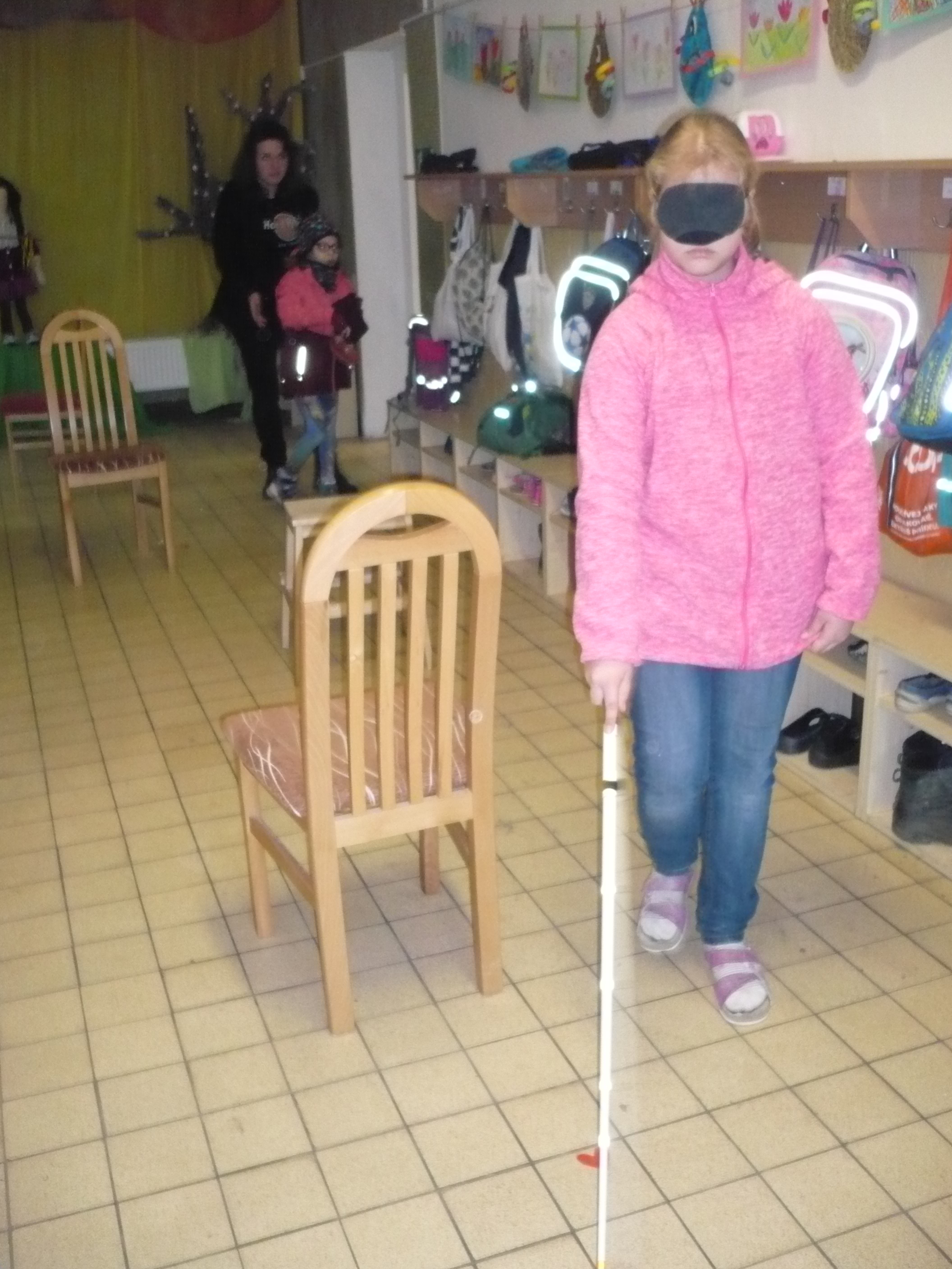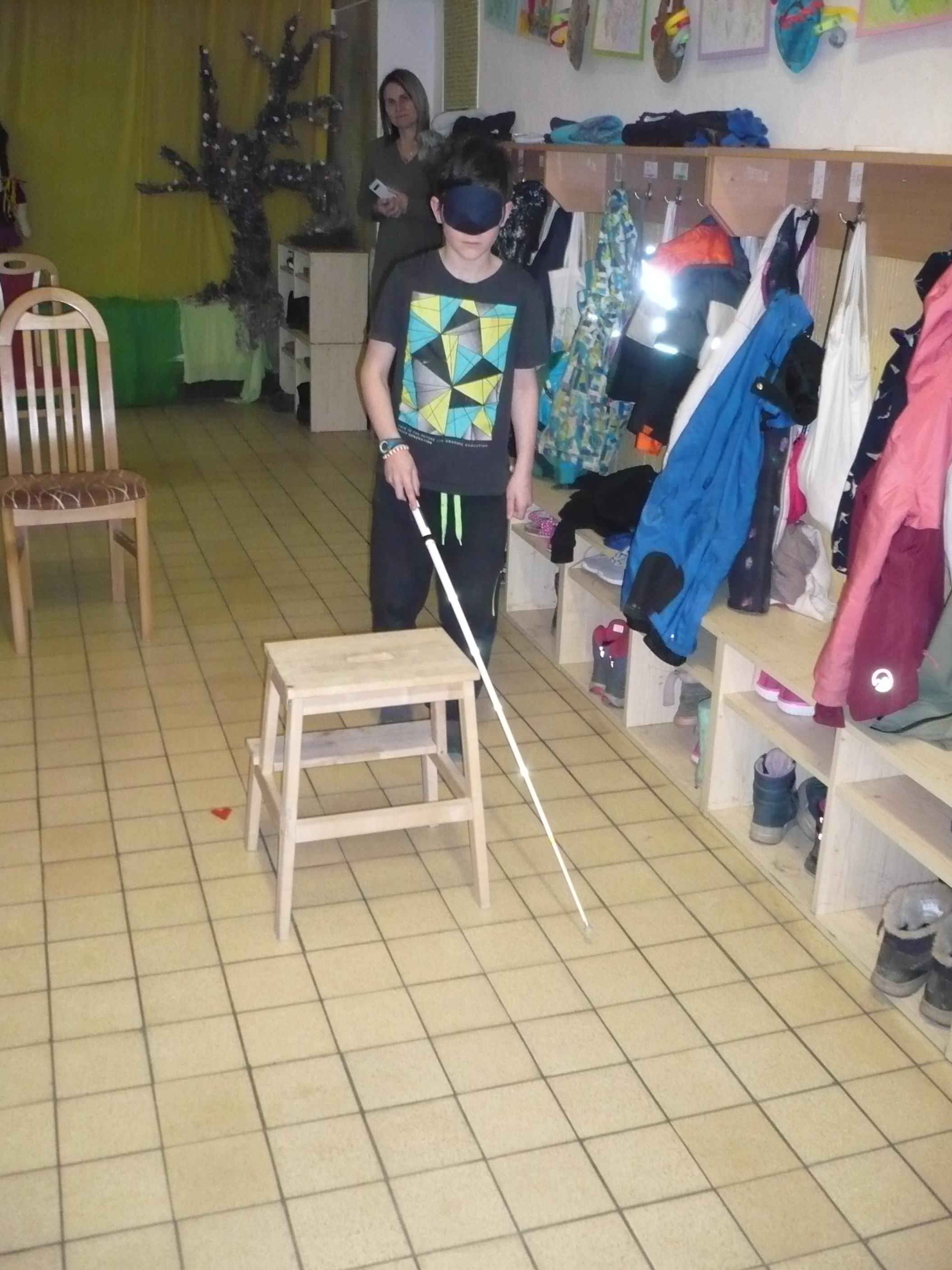 Akce probíhala systémem stanovišť, jedno bylo zaměřeno na Braillovo bodové písmo po vedením F. Krčmy, druhé bylo se simulačními brýlemi a pomůckami pod vedením V. Bártové, třetí byla překážková dráha na projití s bílou holí, které měl na starost I. Tůma a čtvrté bylo zaměřené na hry, knihy atd. v úpravě pro nevidomé, kde se dětem věnovalů V. Bárta. Do dění se zapojili i paní učitelky a asistent/ky. Žáci měli o tuto tematiku velký zájem, akce je bavila.