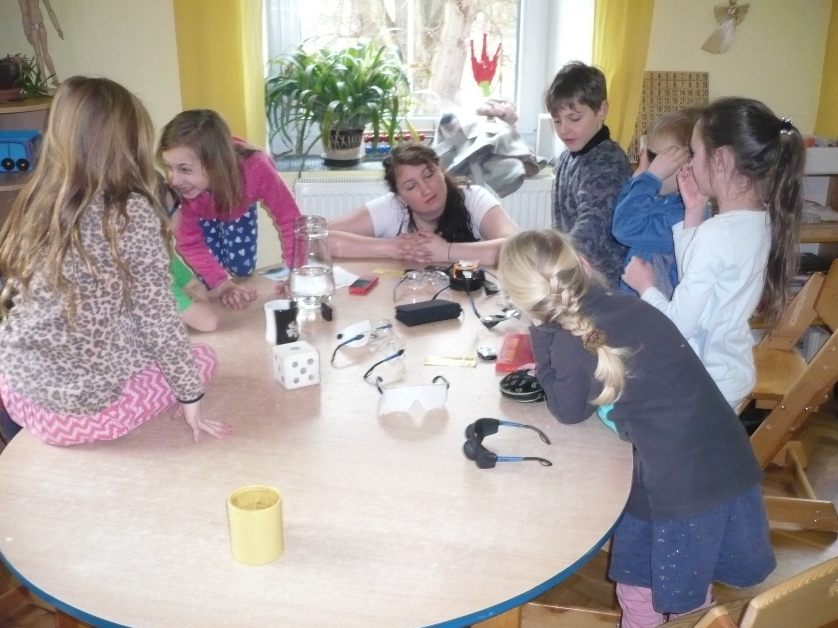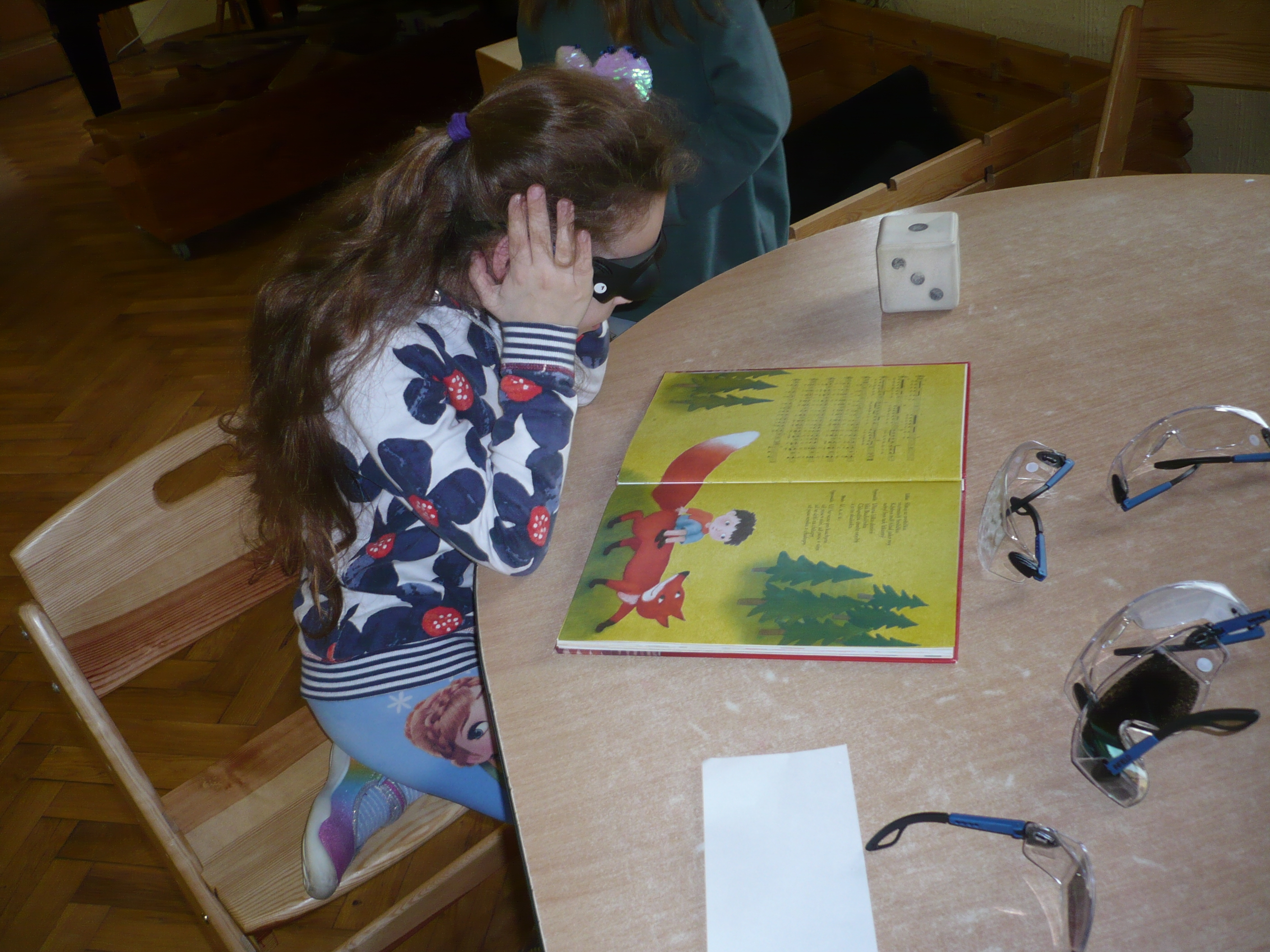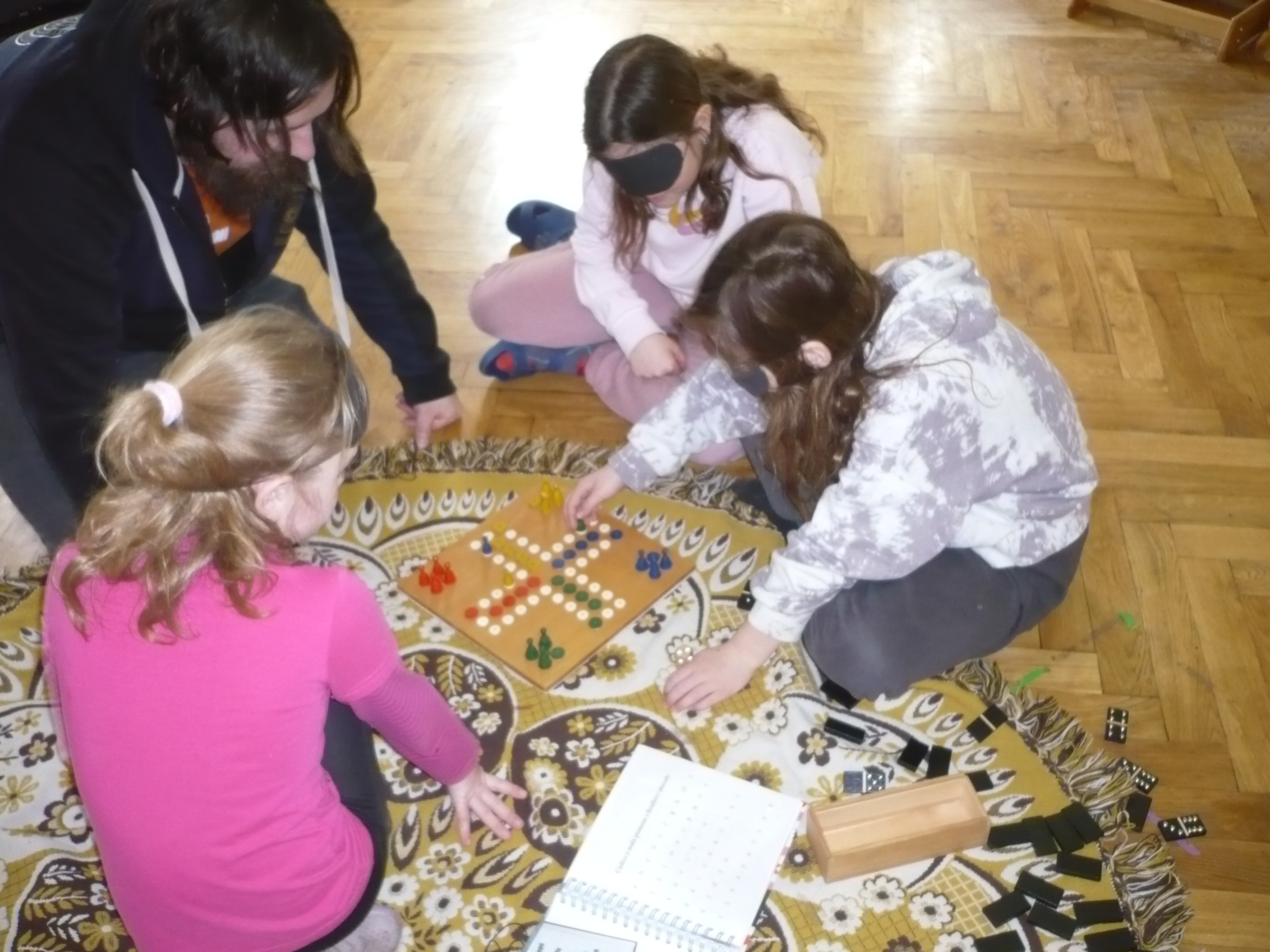 Akce probíhala systémem stanovišť, jedno bylo zaměřeno na Braillovo bodové písmo po vedením F. Krčmy, druhé bylo se simulačními brýlemi a pomůckami pod vedením V. Bártové, třetí byla překážková dráha na projití s bílou holí, které měl na starost I. Tůma a čtvrté bylo zaměřené na hry, knihy atd. v úpravě pro nevidomé, kde se dětem věnovalů V. Bárta. Do dění se zapojili i paní učitelky a asistent/ky. Žáci měli o tuto tematiku velký zájem, akce je bavila.