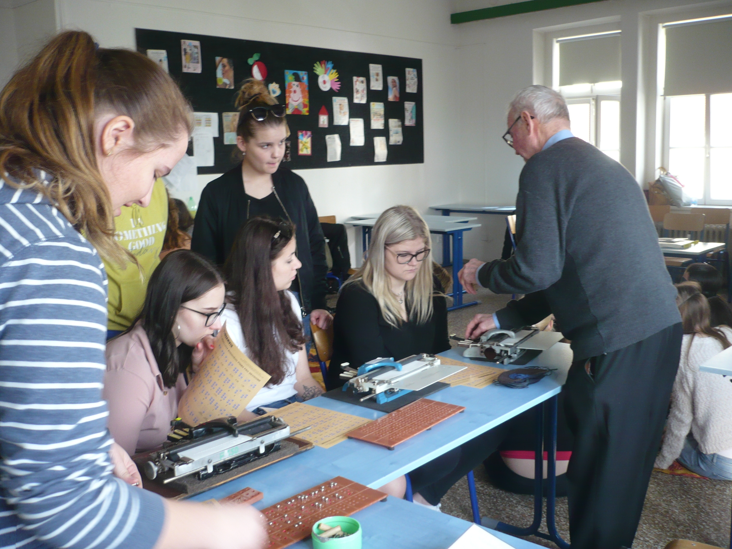 V pátek 22. 3. 2019 jsme se na Boleslavské soukromé střední škole Mladá Boleslav zúčastnili akce Ve škole potmě. Na této akci jsme opět připravili několik stanovišť, která byla zaměřena na Braillovo písmo, hry a knihy v úpravě pro nevidomé a slabozraké, simulační brýle a pomůcky. Dále zde byla překážková dráha k projití s bílou holí a klapkami na očích a neméně důležité stanoviště, na kterém byla příležitost popovídat si na témata související se postižením zraku s paní Kamilou Koncovou, které za její zapojení se děkujeme.