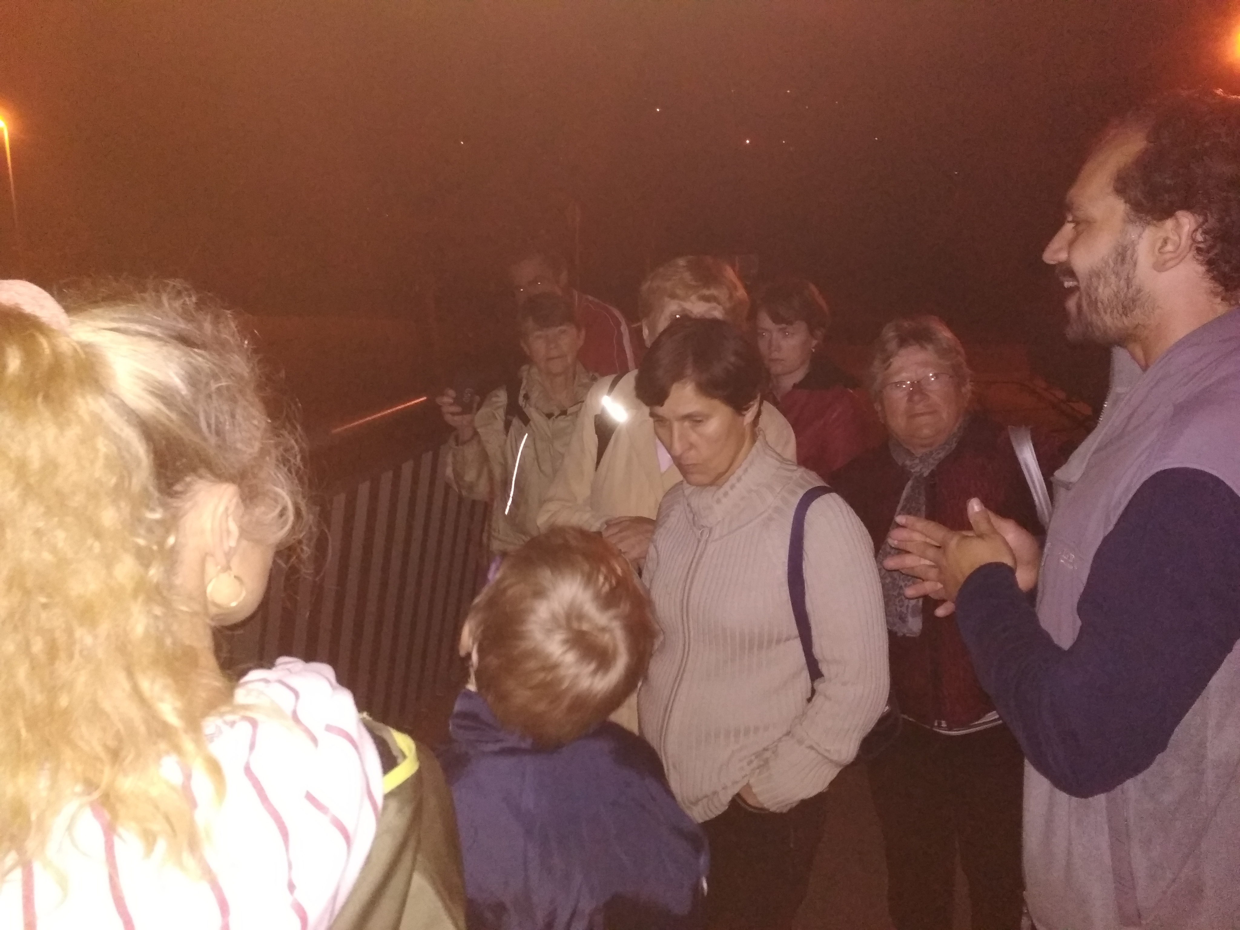 Sešla se nás malá osmičlenná skupinka, což bylo podle našeho průvodce ideální, neboť každý účastník tak mohl dostat svůj detektor, díky kterému jsme mohli poslouchat zvuky neboli frekvence netopýrů. Každý druh netopýra vydává určitou frekvenci, kterou my svým lidským uchem neslyšíme. K tomu, abychom zvuky netopýrů mohli slyšet, slouží právě ultrazvukové detektory tzv. echolokátory, které nám řeč netopýrů přeložili do jakéhosi pleskání, ťukání a vrzání. Na místě kde jsme se pohybovali, jsme ve výsledku slyšeli netopýra nejmenšího, hvízdavého a netopýra rezavého. V odkazech níže si můžete zvuky netopýrů poslechnout.