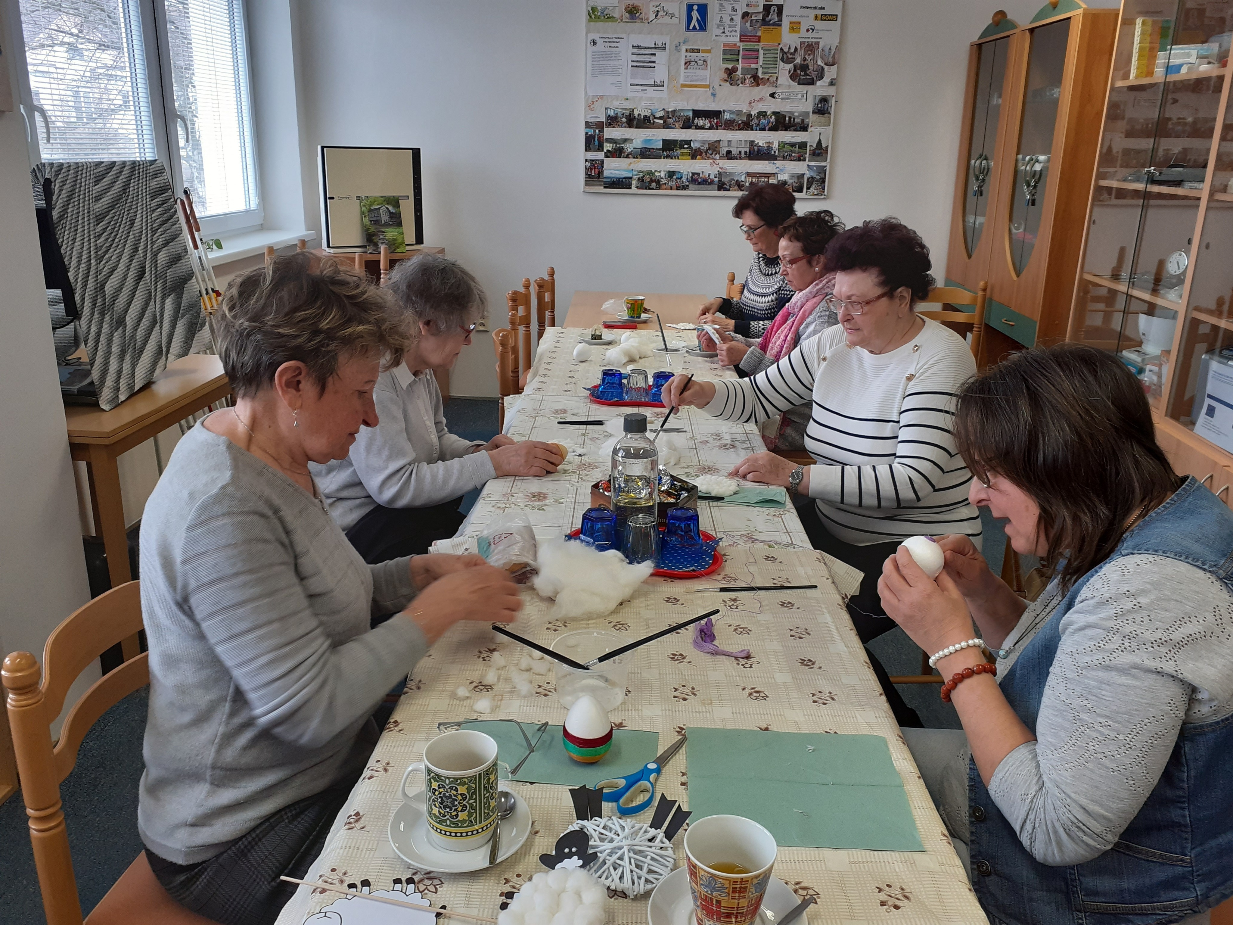 Dne 28. 3. proběhlo s uživateli velikonoční tvoření. Uživatele měli možnost si vyrobit velikonoční dekorace - zápich a bavlnkové velikonoční vajíčko. Všechny techniky tvorby byly přizpůsobené tak, aby to uživatele zrakově handicapovaní zvládli. Vytvořené produkty si mohli uživatele vzít domu, aby jim dělali radost. Na závěr jsme je pozvali na další plánované akce odbočky. Cílem tvoření je procvičení jemné motoriky a zapojení uživatelů do kreativní tvorby.