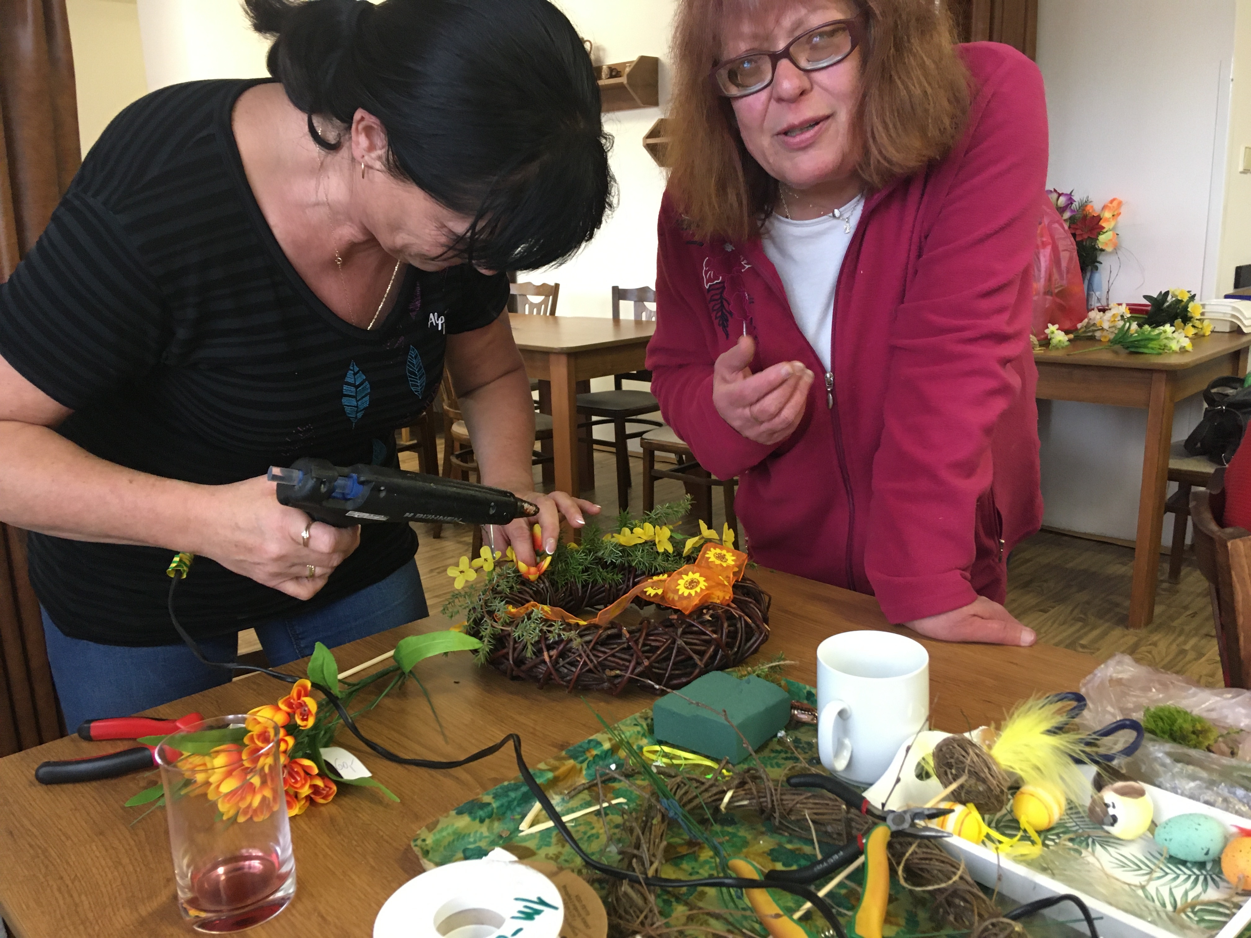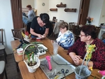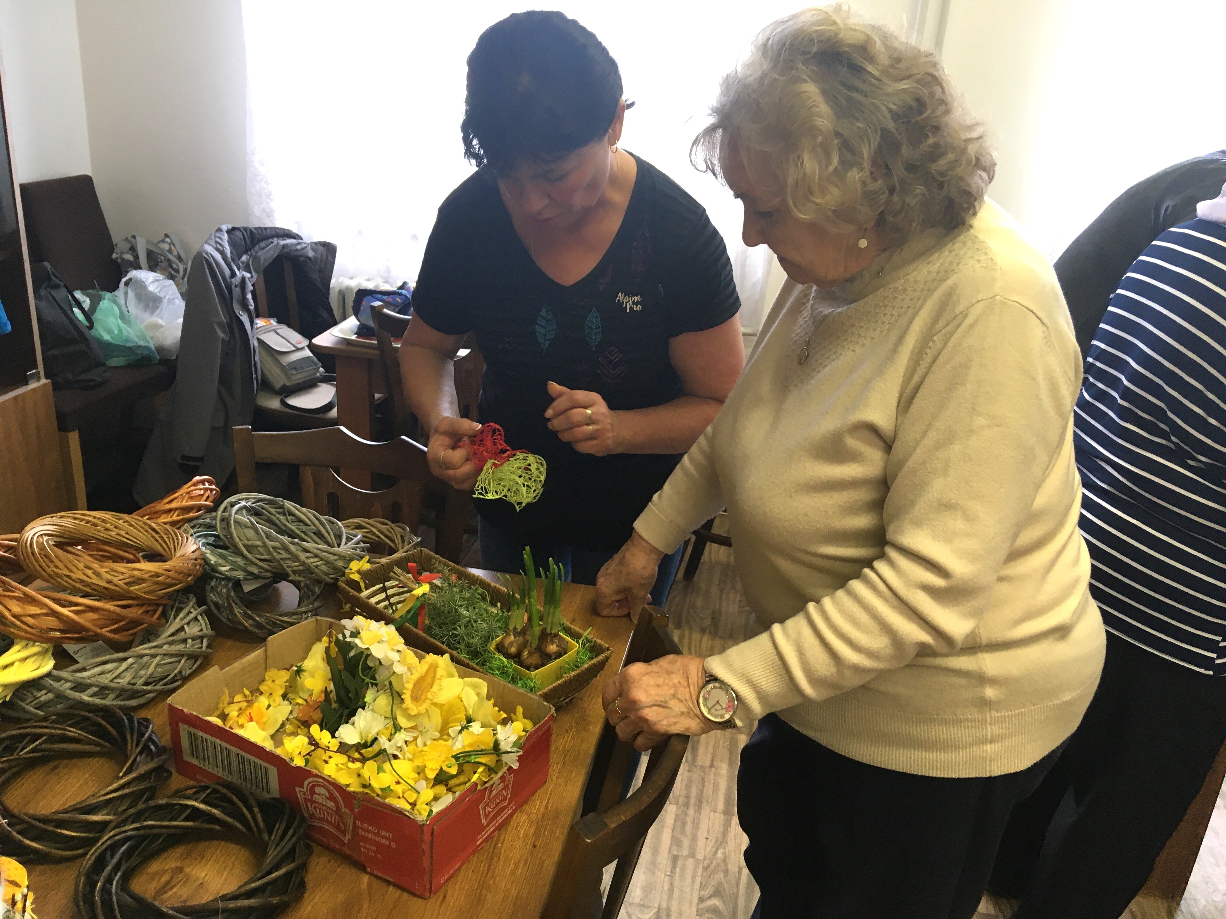 Uživatelé se nejprve seznamovali s veškerým sortimentem, který byl k dispozici. Poté společně vybrali, s čím chtějí pracovat a za pomoci květinářek si vytvořili krásné velikonoční ozdoby.