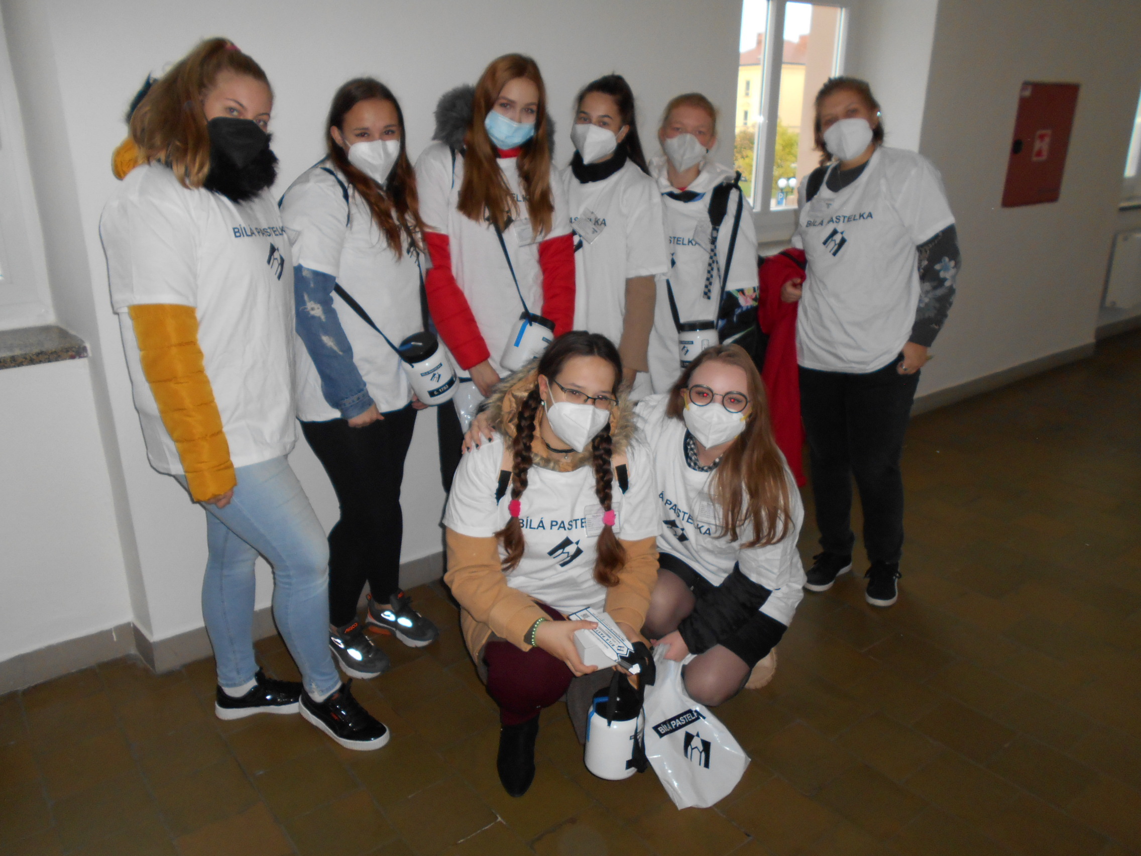 Ve středu, 13. 10., v dopoledních hodinách můžete potkat v ulicích Kroměříže dvojice dobrovolníků z řad studentů v bílých tričkách označených logem sbírky s kasičkami, kteří Vám rádi nabídnou symbol naší sbírky - bílou pastelku za minimální příspěvek 30,- Kč.
