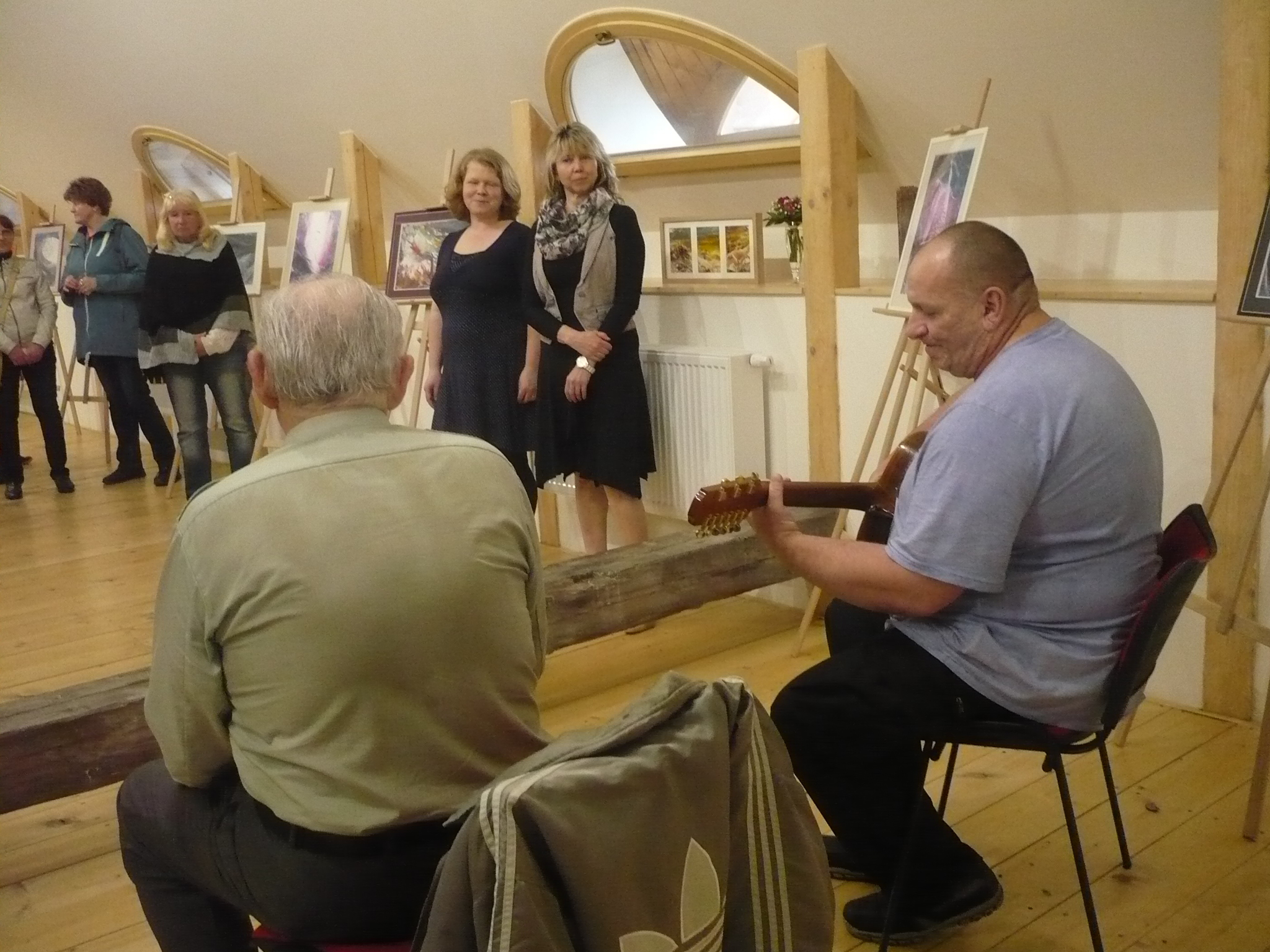 Jaroslavy Bendové. Sešlo se nás přes 30 účastníků. Vernisáž hudebně zahájili naši zrakově postižení členové – pan Pavel Jura – hrou na kytaru doprovázenou zpěvem a pan Jan Beneš hrou na foukací harmoniku. Vedoucí odbočky přivítala přítomné, představila autorku a její tvorbu. Malířka pohovořila o technice enkaustiky a také o svém zrakovém postižení. Následovalo pozvání k prohlídce obrazů, pohoštění a vzájemné konverzaci.