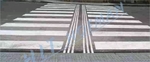 Hmatové prvky = zde vodící pás přechodu šířky 550 mm, pokud má být hmatový, bezpečný a funkční, musí být vystouplý po celou dobu své životnosti, aby zajistil hmatový kontrast, zn. najitelnost a bezpečnou použitelnost s ohledem na směrovost i rychlost.