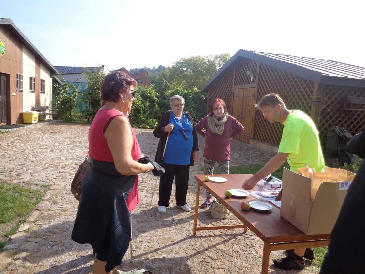 též chuť. Sluch si každý mohl pocvičit při chůzi k určenému zvuku, jehož