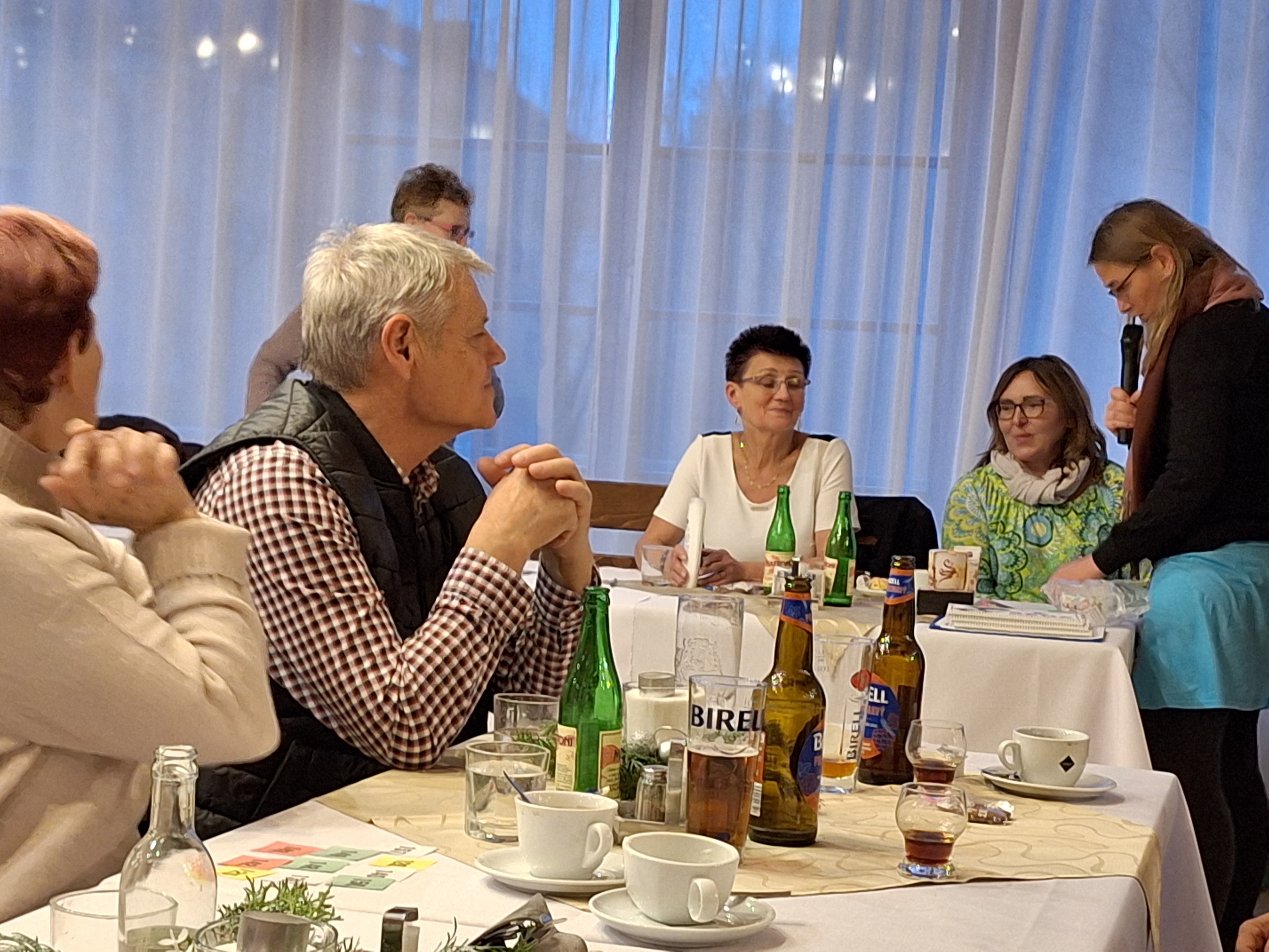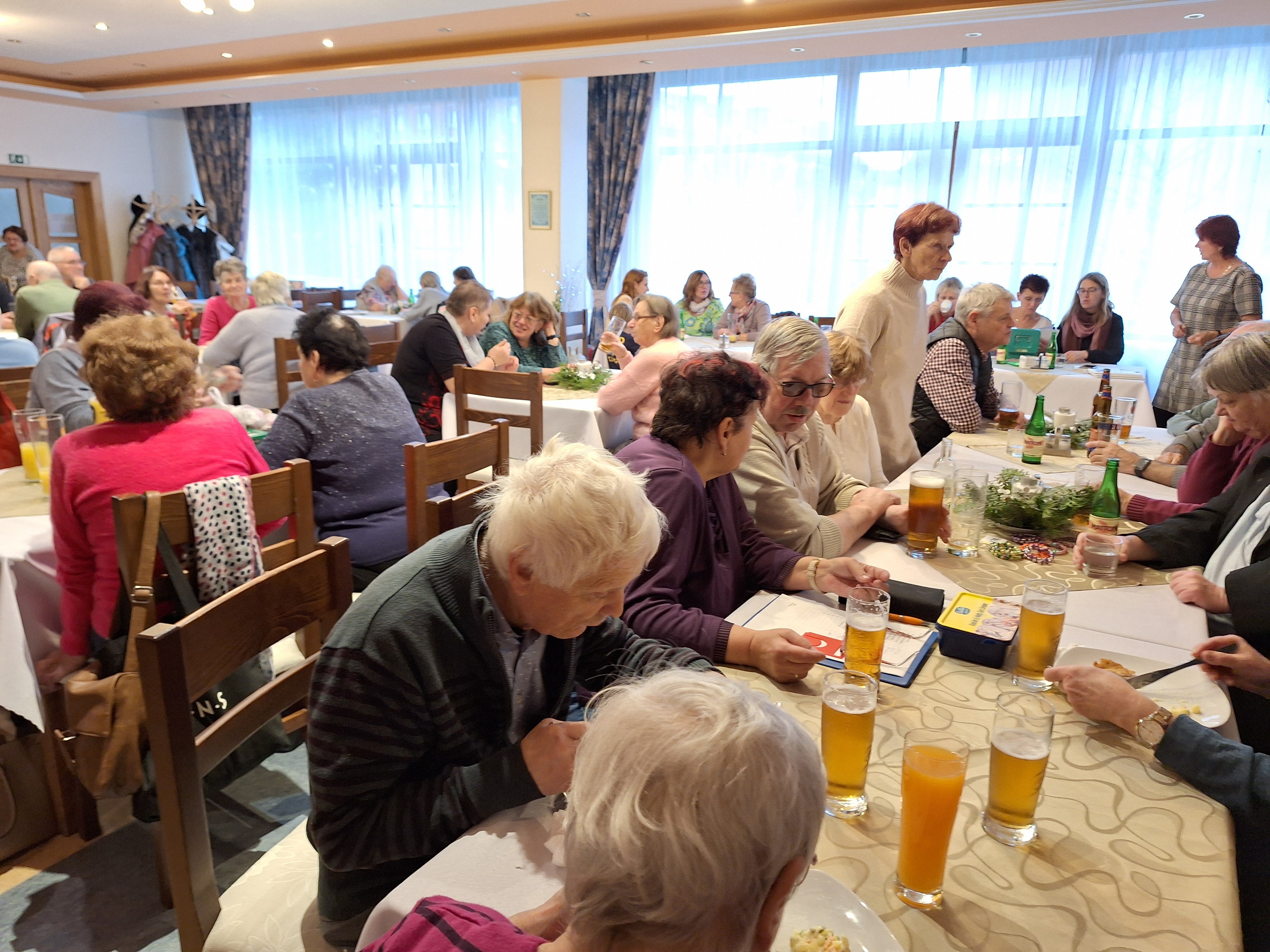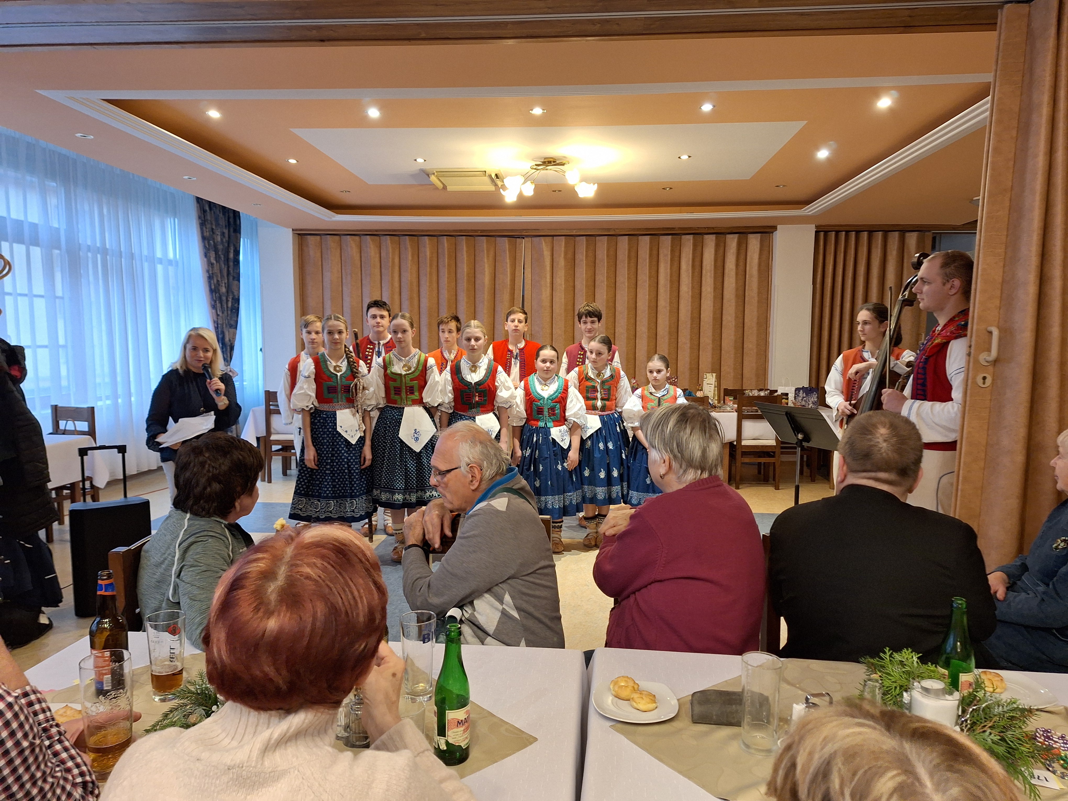 Dne 10. prosince 2024 se uskutečnilo vánoční posezení s bohatým programem a občerstvením. Po přivítání 57 členů, předsedkyně krátce seznámila přítomné s programem, a poté nás slavnostně naladilo na téma vánoc vystoupení folklorního sdružení Malá Jasénka. Tuto nadšenou mládež vede její stejně nadšená dlouholetá vedoucí Andrea Frňková. Během krásného odpoledne se podávalo bohaté občerstvení. Proběhla soutěž o nejlepší druh vánočního cukroví, členové a uživatelé služby přinesli své povedené výrobky do soutěže. Hodnotitelé vzali tuto úlohu vážně a s klapkami na očích vybrali ty nejlepší kousky. Aby ostatní nezaháleli, prohlíželi si hapticky betlém i hmatová vánoční přání. Další platili členské příspěvky, přihlašovali se na aktivity, vyměňovali si své poznatky a předávali různé recepty. Po vyhlášení nejlepšího cukroví, nastal další vrchol odpoledne bohatá tombola, resp. předávání dárků.