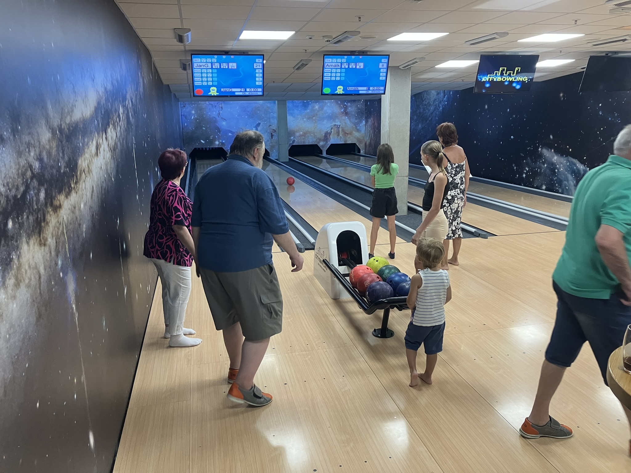 Dnes dopoledne proběhl tak trochu netradiční prázdninový bowling s uživateli služby a jejich vnoučaty ve Smetanově obchodní galerii Vsetín. Bowlingu se aktivně zúčastnili uživatelé, kteří rádi sportují. Ostatní uživatelé si přišli jen tak popovídat a dozvědět se, co je nového. Uživatelům byla zopakována pravidla hry, byli naváděni k drahám a upozorňováni na přešlapy. Během hry se zajímali o průběžné výsledky a vzájemně se podporovali. Dále byli uživatelé seznámeni s plánovanými aktivitami na léto. Na závěr dostali soutěžící sladkou odměnu.