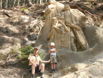Další naší zastávkou byl Velký Chlum, a to je místo, které nás spojuje s areálem Blanických rytířů v Rudce u Kunštátu. Velký Chlum je zajímavý pískovcovými sochami, které vytvořil sochař Stanislav Rolínek. Několikakilometrová túra nás neodradila a i když Velký Chlum je nižší než Malý Chlum, žasli jsme, jak mohl jen pomocí hasičské sekery a půlky nůžek na