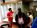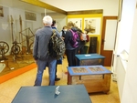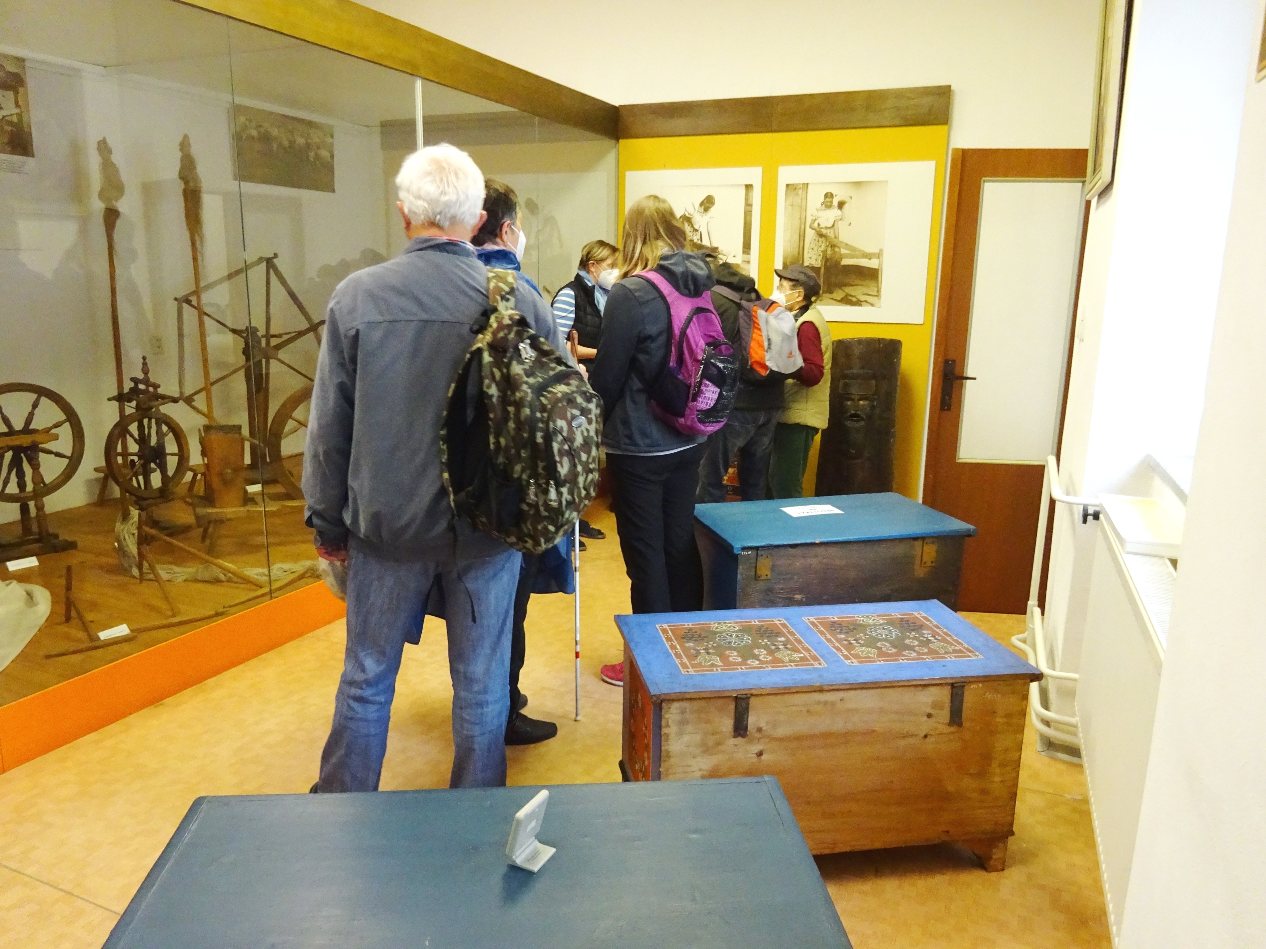 Druhá vycházka měla také slibný cíl. Ale v ten den nás zradilo počasí. Zradilo od cíle, nikoli odradilo od vycházky. Všichni přihlášení jsme se sešli na vlakovém nádraží, postoupili jsme instruktážní obsluhu nově instalovaného veřejného WC a vybaveni pláštěnkami, deštníky jsme vyrazili do ulic. Dali jsme si menší trasu městem, kolem řeky Moravy, hučícího jezu na Bartolomějské náměstí. Tam má sídlo Městské muzeum a právě v ten den po neskutečně dlouhé době otevřeli. My se tak stali prvními návštěvníky a na výkladu to bylo znát. Takže díky dešti jsme navštívili stálou muzejní expozici nazvanou "Od Doubravy po Javořinu", rozdělenou na část archeologickou, historickou a etnografickou ve Veselí nad Moravou. Vřele doporučejeme.