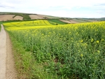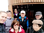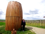 První byla na nejfotogeničtější oblast celého Česka - Moravské Toskánsko. Tuto oblast proslavil japonský fotoraf, sice ji naši zrakově postižení chodci nemohli zcela docenit, ale vidící průvodci se snažili popsat zvlněná pole, která protínají různé linie, remízky a ostrůvky, padesát odstínů zeleně a podobně. Na zvlnění krajiny se významnou měrou podepsala bohatá důlní činnost, která zde za komunismu probíhala. Desítky let se zde už v netěží, ale téměř celá krajina je silně poddolovaná a štoly se postupně propadají. Tím dochází ke zvětšování vln v polích, jejichž strmost je někdy až zarážející. Krásné, slunečné, leč větrné počasí nám ani nepomohlo při pohledu z vyhlídkového místa, velkého, dřevěného sudu. Aspoň nám posloužil k občestvení. Další jsme si dali přes okýnko, při čekání na autobus.