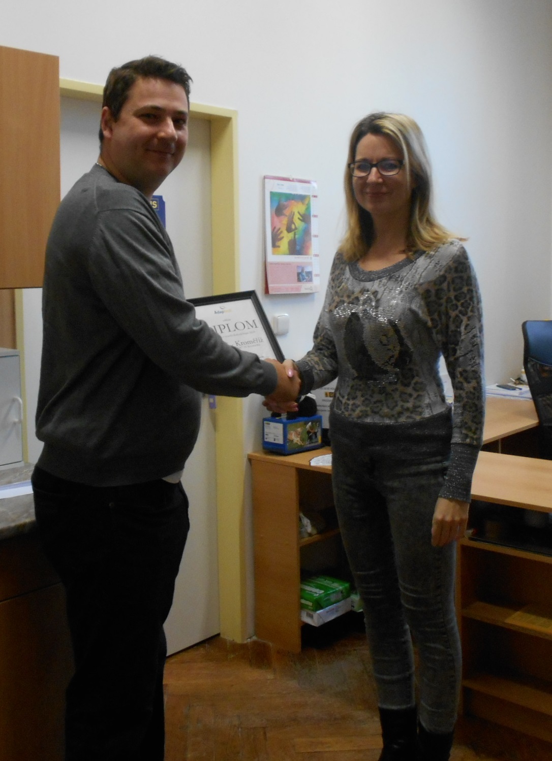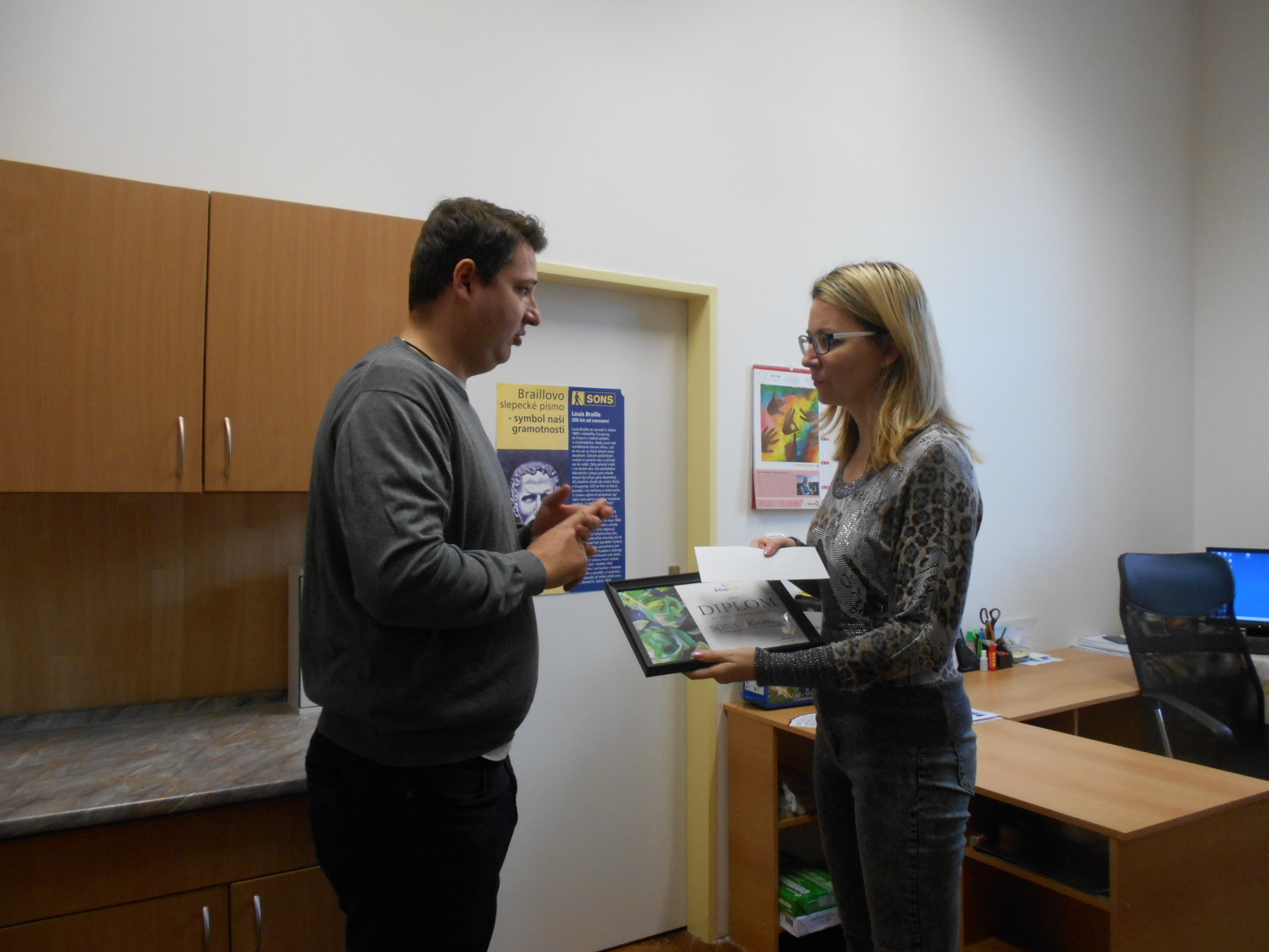 Finanční odměnu ve výši 5 000 Kč spolu s krásným diplomem nám dnes přijel předat pan Jaroslav Kavan ze společnosti Adaptech. Děkujeme! Získané prostředky budou použity na podporu aktivit členů naší odbočky.