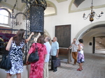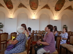 Ze sousedních prostor sala terreny jsme pak vystoupali po schodišti do prvního patra se zámeckou kaplí, velkým sálem a dalšími reprezentačními sály s bohatou štukovou výzdobou a krásnými lunetovými klenbami s mytologickými výjevy, které jsou inspirovány Ovidiovými Proměnami. Přesto, že není zámek vybaven mobiliářem, dokázal nám pan Thomayer poutavým vyprávěním přiblížit jak jeho historii, tak i osobní život jeho majitelů, doplněné i o pár pikantních historek.