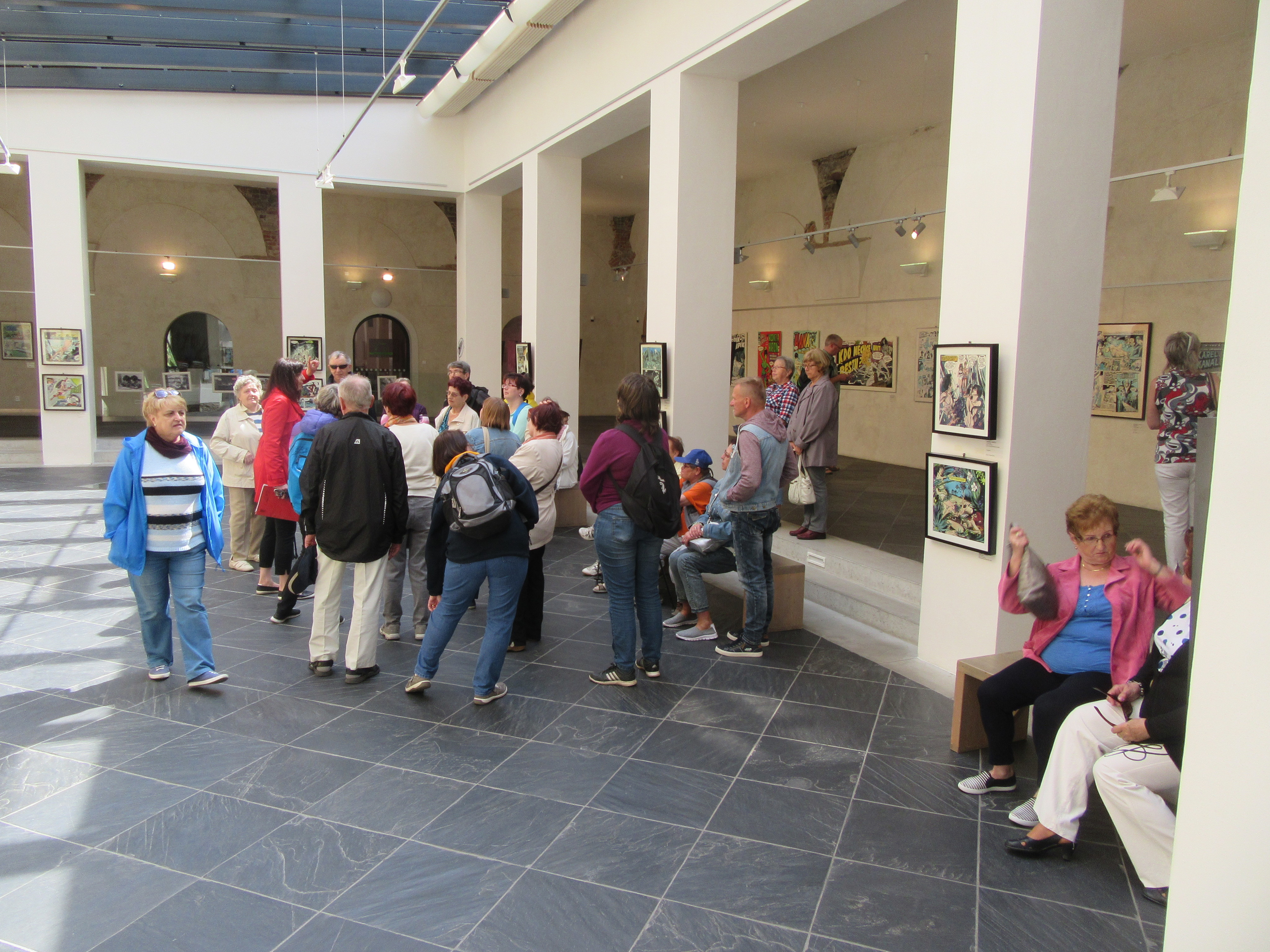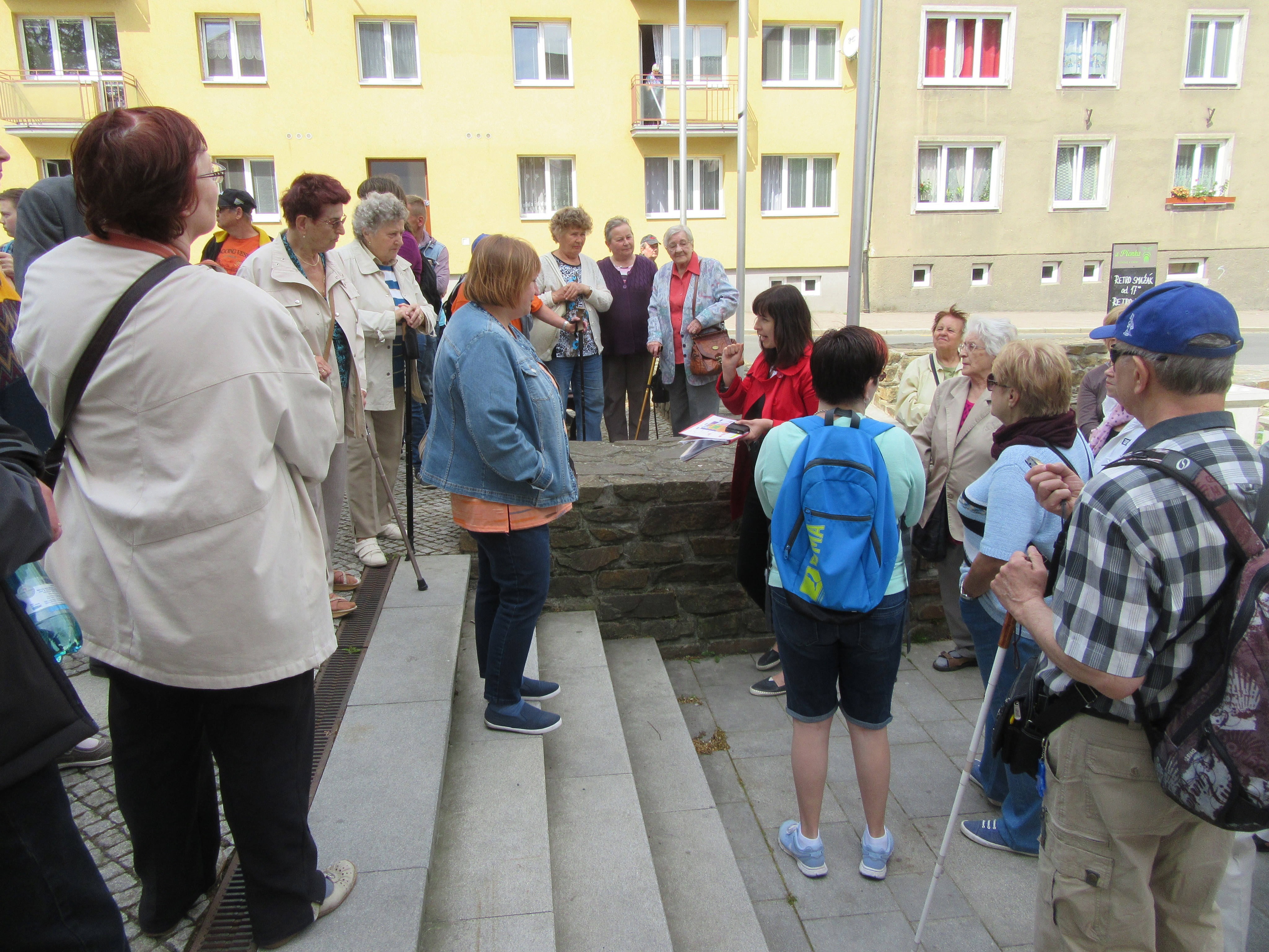 Na Opavském východním nádraží nás očekávala pracovnice místní odbočky Petra Plchová. Pod jejím vedením jsme se trolejbusem přemístili do centra města. Na Dolním náměstí nás očekávala poměrně velká skupina členů zdejší odbočky včele s vedoucí pracoviště odbočky paní Ivetou Čiháčkovou a energickou paní průvodkyní, pracovnicí opavského Národního památkového ústavu.