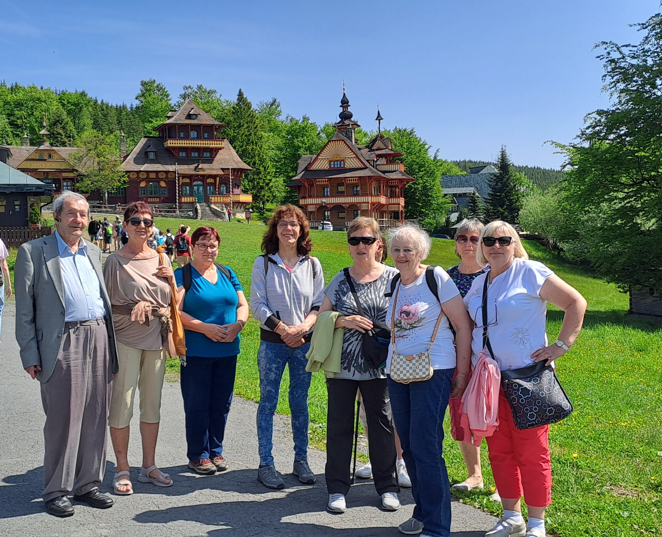 Poslední den jsme vyjeli autobusem na Pustevny, kde za krásného slunečného počasí jsme strávili den procházkami, obdivovali jsme znovu postavený Libušín, zašli jsme se občerstvit do místní restaurace.