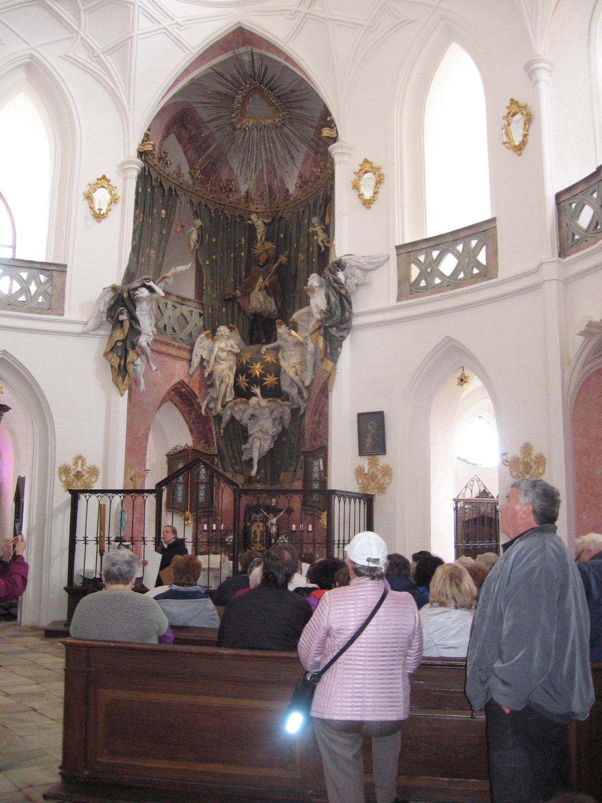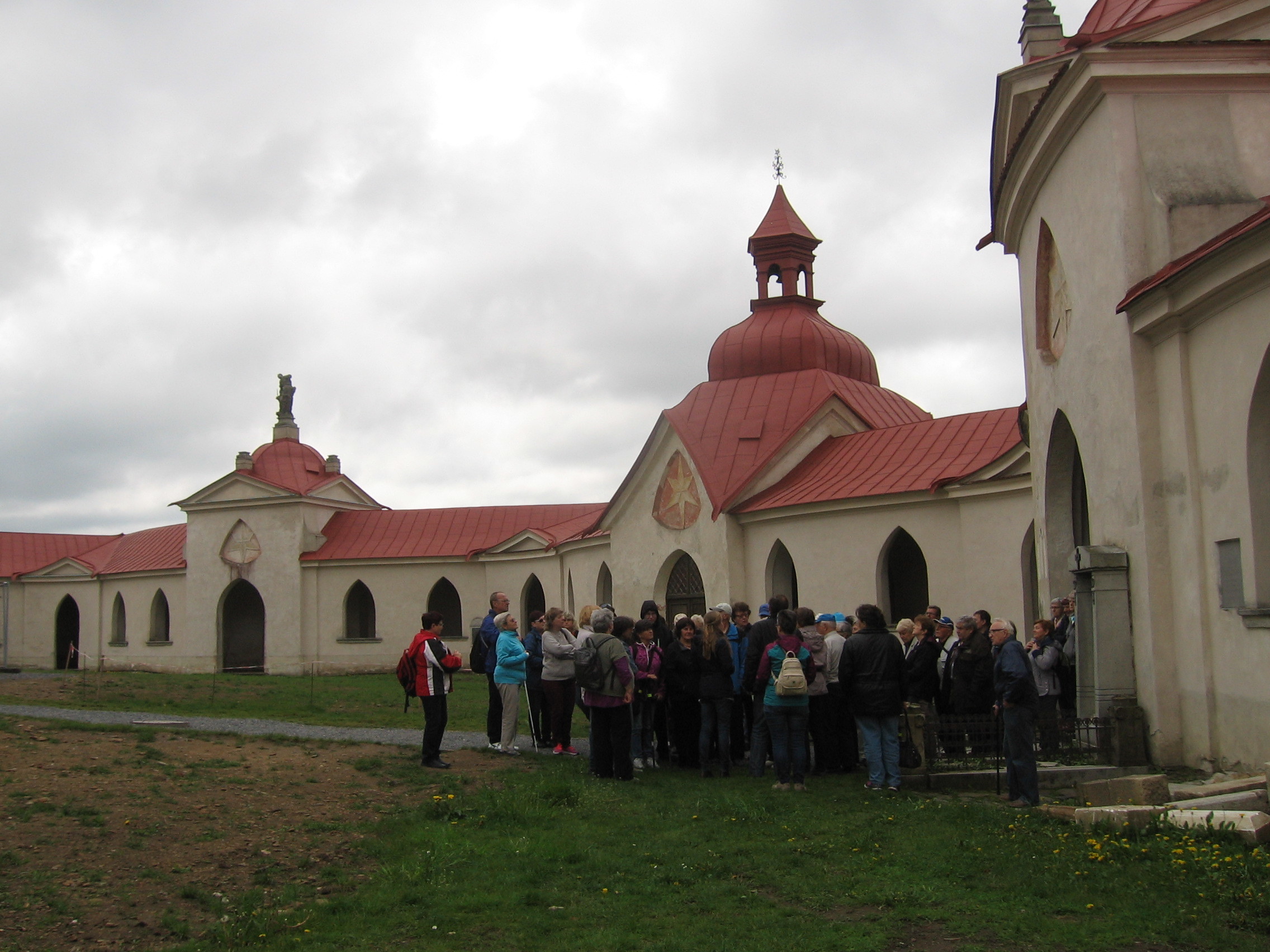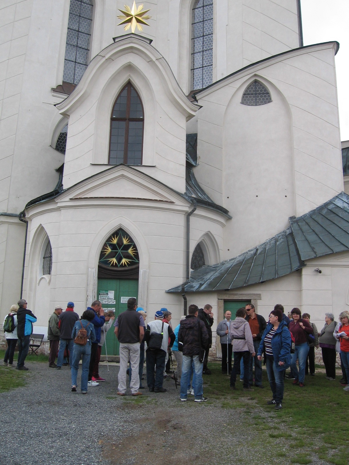 Po přeplánování programu se nás už konečně drželo štěstí ve formě pěkného počasí, krásně okomentované prohlídky kostela na Zelené hoře a výborného obědového menu. Cestou z kostela si všichni protáhli nohy sestupem dolů k restauraci. Účastníci měli také dostatek času k popovídání si mezi sebou a k navázání nových přátelství.