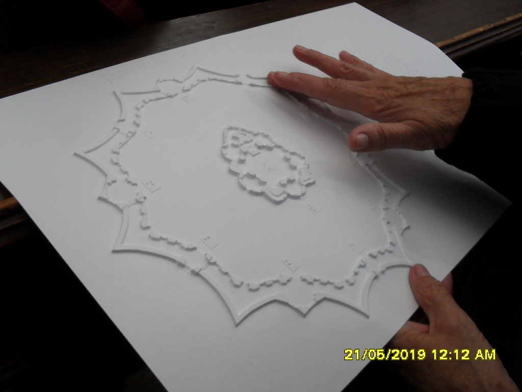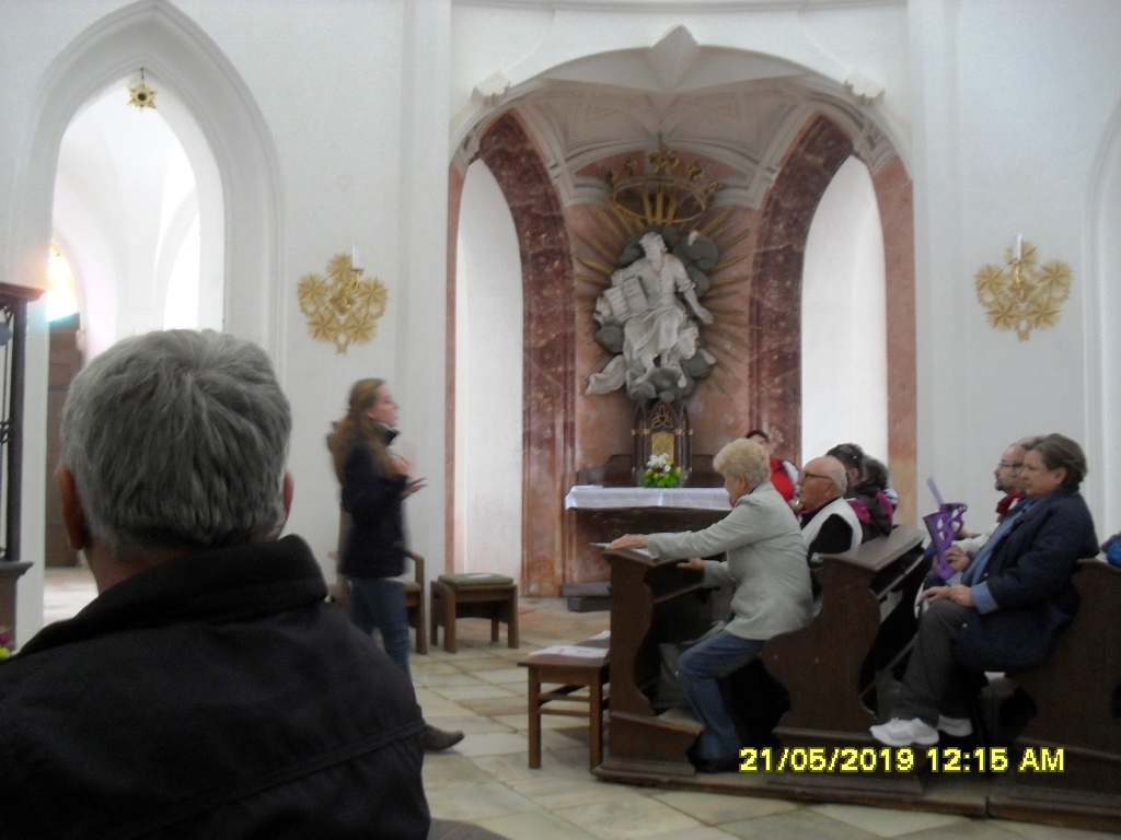 Mladá průvodkyně nám přiblížila historii místa a alespoň malinko poodhrnula závoj symboliky hvězd, číslic a kružnic této úžasné stavby. Zdejší farnost, správce poutního místa, musím pochválit i za pěkně zpracované haptické plánky pro nevidomé.
