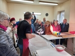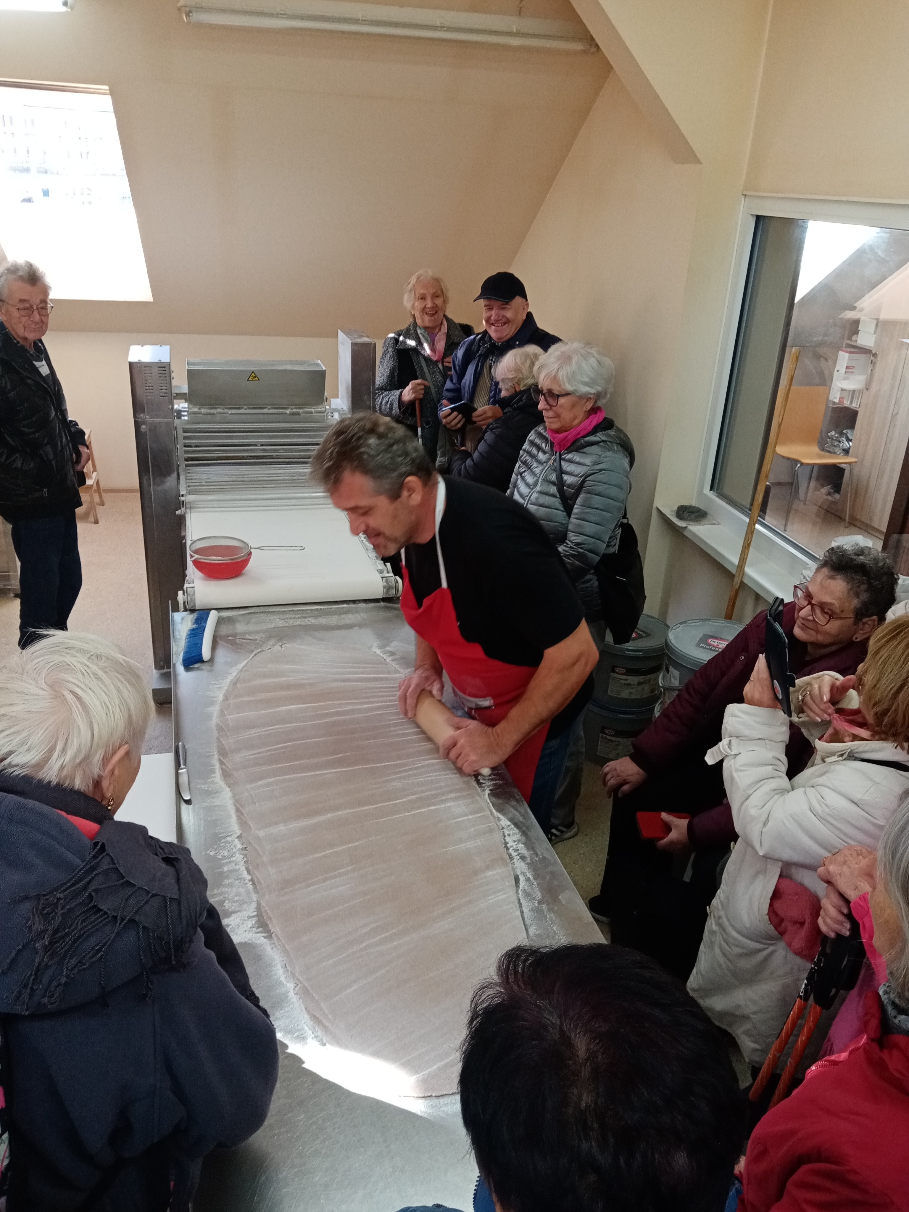 Nyní existuje ve Štramberku hned 7 pekáren Štramberských uší, péci se totiž mohou jen na katastru městečka. To nás hned na začátku zmátlo a „zakotvili“ jsme v jiné pekárně cca 60 m od domluvené pekárny U Hezounů. Využili jsme tedy krátkého času k nákupu měkčích uší, které byly i různě ochucené. Hlavním hřebem dne však byl poutavý a zároveň vtipný výklad o tradici pečení Štramberských uší z úst pana Hezkého. U něj se uši pečou ještě tradičním způsobem, dokonce se ještě jeho uši musí ručně dorozválet klasickým válečkem. Všude v pekárně se linula velmi příjemná vůně směsi koření, které je střeženým tajemstvím každého pekaře ve Štramberku. Během výroby jsme mohli ochutnat i syrové těsto, které také bylo chutné. Nakonec se mohl každý z nás zakousnout do čerstvých teplých uší, což byla pro všechny příjemná premiéra.