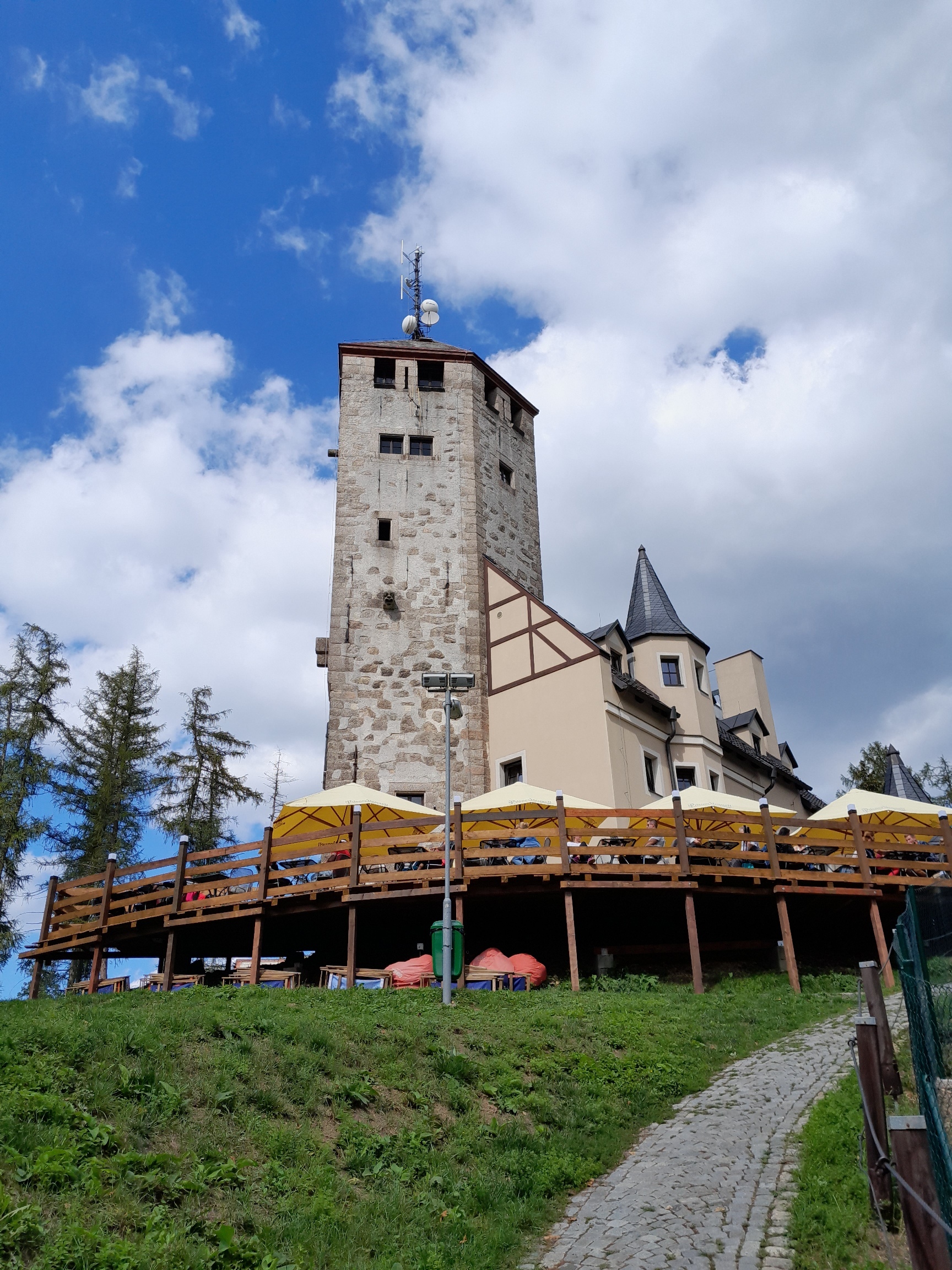 V sobotu 3. září jsme vyrazili z Lidových sadů po žlutě značené turistické stezce na Výšinu. Cestou, dlouhou přibližně 1km, s převýšením 130 metrů jsme došli k rozhledně s restaurací, která je postavena ve stylu středověkého hradu. Chutně jsme poobědvali a na závěr si dali sladkou tečku - zmrzlinový pohár. Procházkou jme došli zpět do Lidových sadů.