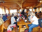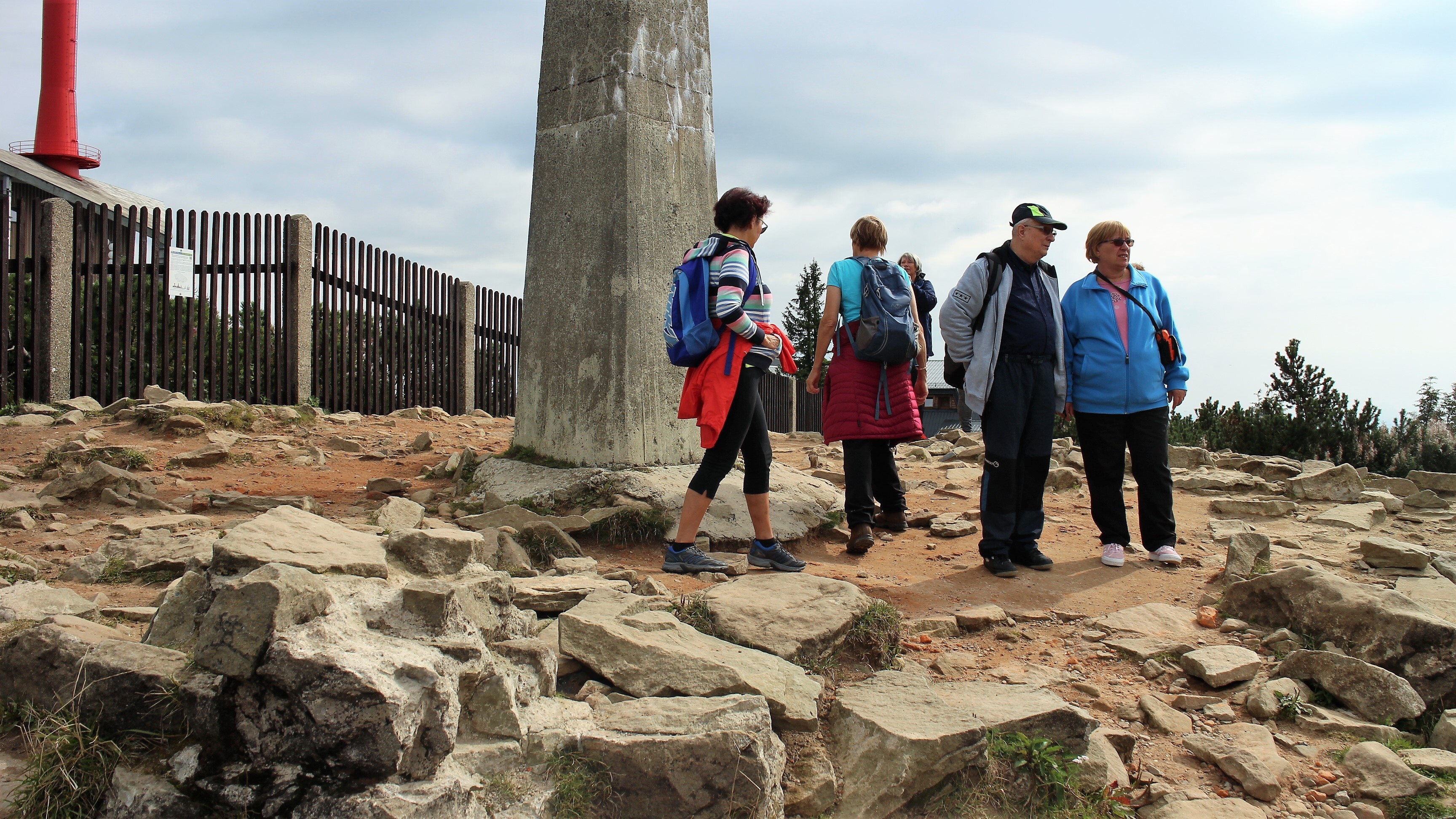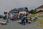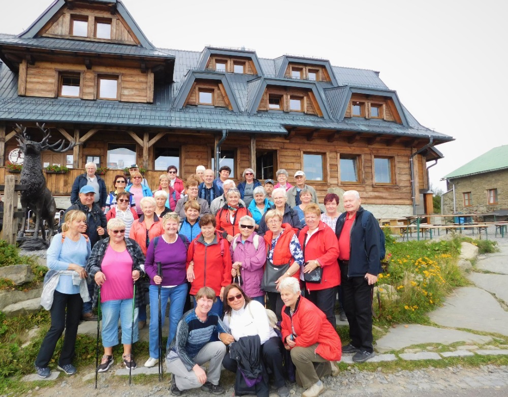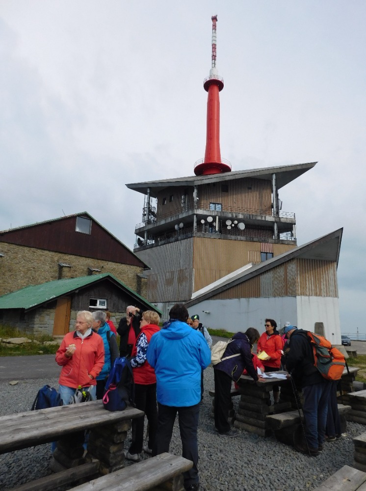 Na hoře jsme se občerstvili a šli jsme si prohlédnout široké okolí, výhled byl dobrý a znalost okolních pohoří jsme si mohli porovnat s naučnými tabulemi. Tento výlet byl pro uživatele velkým přínosem, protože sami už na horu nevyjdou. Zavzpomínali na mládí, kdy ještě byli schopni dojít pěšky a taky na bývalou Bezručovu chatu. Místo ní postavil Svaz turistů za pomocí sponzorů novou. I tuto chatu jsme si prohlédli. Domů jsme se vraceli s krásnými zážitky a s velkými díky od uživatelů.