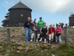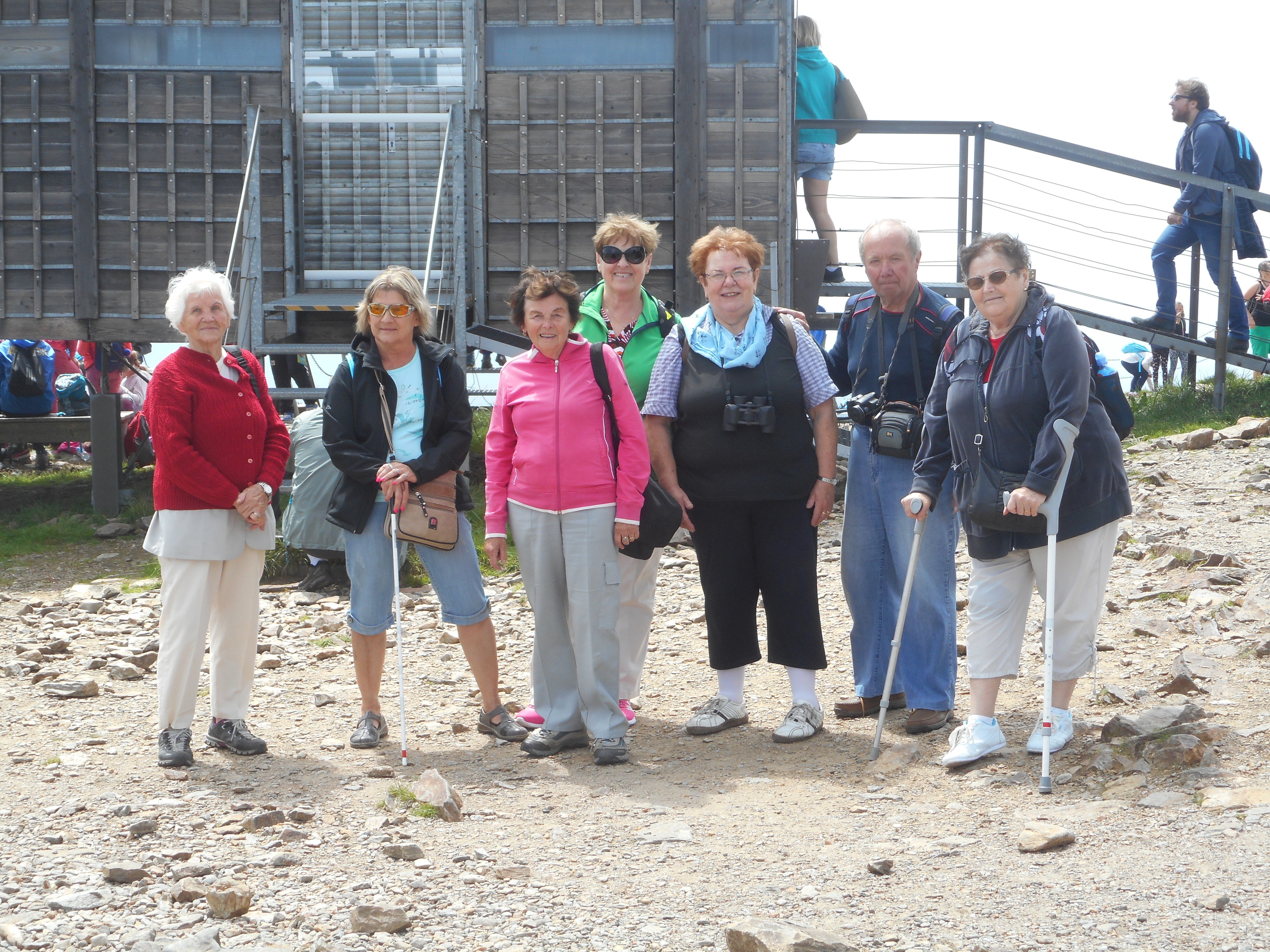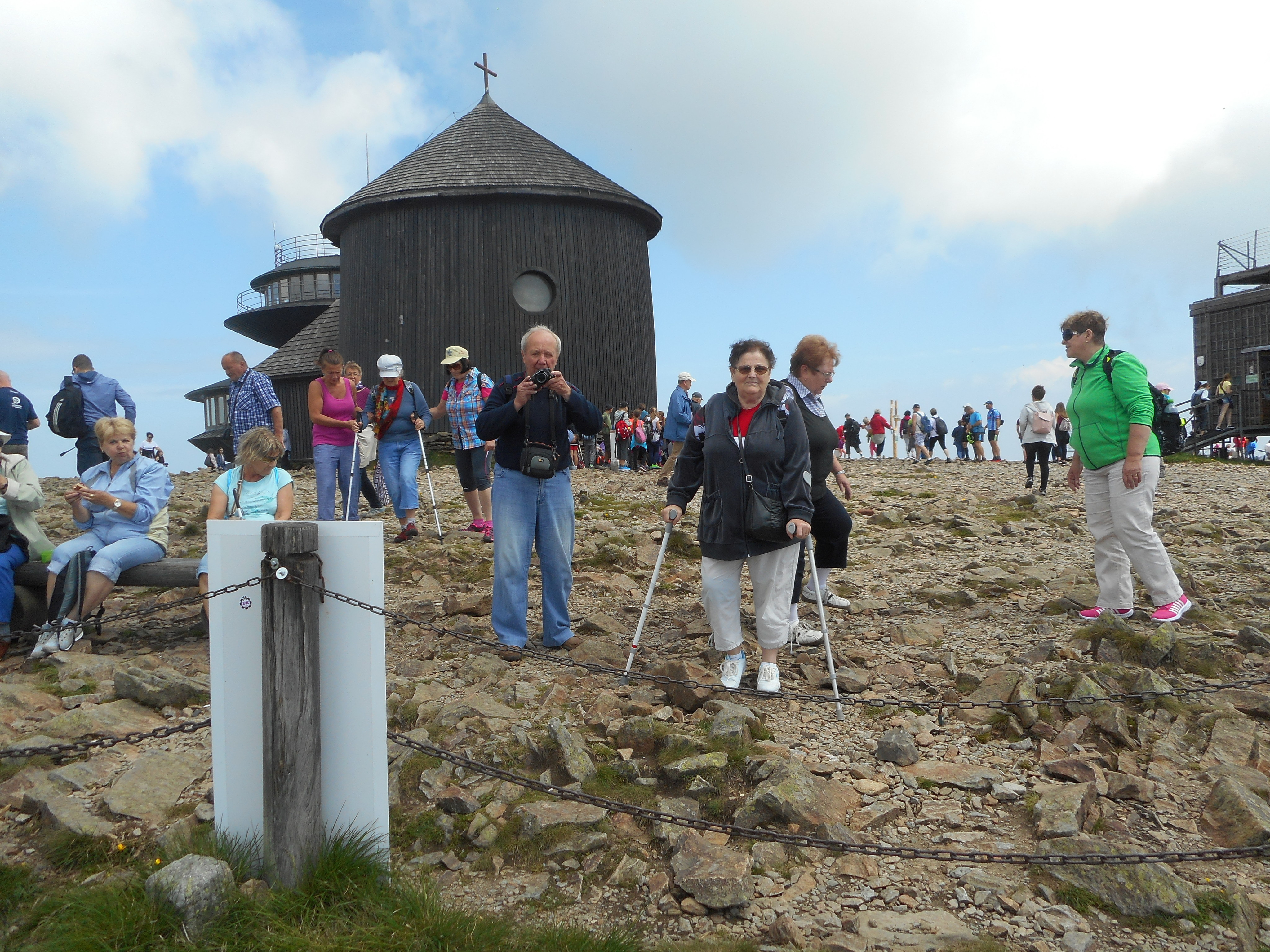 Náchodská skupina členů OO SONS uskutečnila v pěkný červnový den (6.6.2018) výlet na nejvyšší horu vysokou 1623 m.n.m. Cesta známou krajinou z Náchoda do Trutnova nám ubíhala při příjemném povídání. V Trutnově se k nám přidali přátelé z trutnovské OO SONS a už podél řeky Úpy jsme jeli autobusem až do Pece pod Sněžkou. Lanovka z Pece byla také pohodlná, příjemnější než do roku 2013, ta sedačková. Z kabiny byl kouzelný pohled na měnící se pásma lesů. Od vysokých smrků, přes kosodřeviny až po kamenitou suť žuly. Vrchol Sněžky nás přivítal příjemně. Vidět bylo daleko do údolí, i do rozsáhlé roviny Polska s městy i vesničkami z kterých je také zajímavý pohled na Krkonoše. Masív hor je odtud strmý. Tak jak na ně před miliony let narážel ledovec od severu. Trochu strašidelný je výhled dolů do Obřího dolu a zase uklidňující na plochu rašeliniště, odkud malým potůčkem vytéká naše Úpa, aby později nabrala sílu a jako řeka nás provázela všemi městy až k Josefovu. V Poštovně málo kdo odolal vůni kávy. Byla opravdu dobrá. A znovu nás vítalo v pozdním odpoledni městečko Pec pod Sněžkou. Už to ale není ta bývalá osada lyžařů a pěších turistů. Sotva jsou vidět vzrostlé smrky, které jsme tu sázeli jako studenti. Vyrostli tu obchodní centra a vysoké hotely. Zmizel i Krakonoš, který stával na břehu jezírka a dobrácky vyhlížel turisty. Stál by tam marně. Zanikl by v ruchu civilizace. Jen jedna hospůdka tu zůstala od nepaměti. Dřevěná na rohu, kde jsme šťastně zakončili u výborné krkonošské polévky své putování. A tak většina z nás už naposledy v životě navštívila nejvyšší horu České republiky.