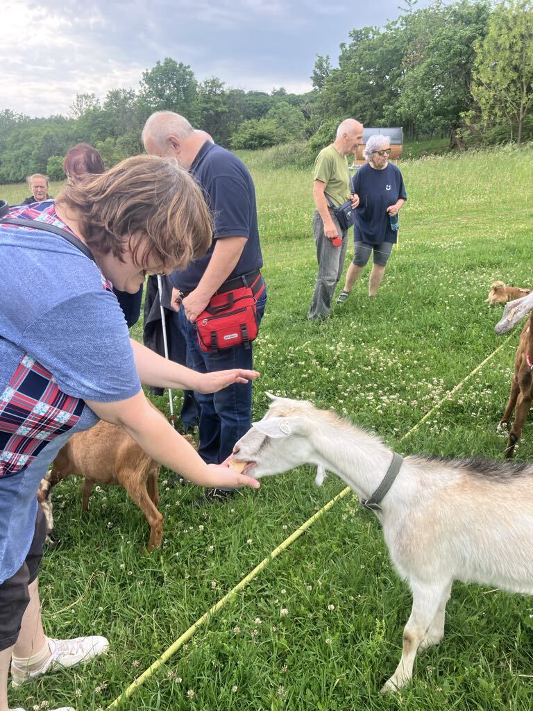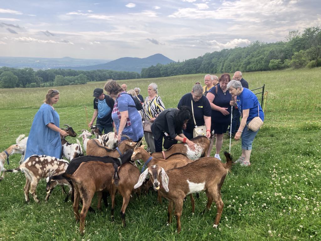 Vydali jsme se na krásný výlet, kousek od Ústí nad Labem, na kozí farmu Vacheria do Kletečné, kde nás čekala komentovaná a haptická prohlídka. Majitelka nás provedla celou farmou, seznámila s plemenem, které chovají, ukázala nám kde dojí kozy a co z mléka vyrábí. Mohli jsme si vše prohlédnout, pohladit kůzlátka a samozřejmě nám celou prohlídku odpovídala na dotazy a že jich bylo nespočet. Největší zážitek byl, když nás vzala do venkovního výběhu mezi kozy, které jsme mohli nakrmit a pomazlit se s nimi. Byly to kouzelné okamžiky, být v obležení těchto zvědavých tvorů. Kdo měl sušený chleba, byl ve výhodě a měl větší možnost, hladit si tato krásná rohatá stvoření. Následovala ochutnávka mléka a sýrů, což byla třešnička na dortu, jelikož očekávání byla spíše skeptická, a my byli velmi mile překvapeni, jak bylo vše velice chutné. Nakoupili jsme kozí dobroty a vydali se na cestu domů. Výlet se všem neskutečně líbil, měli jsme krásné počasí, pobyli jsme v krásné přírodě s milými lidmi mezi zvířaty, co více si přát.