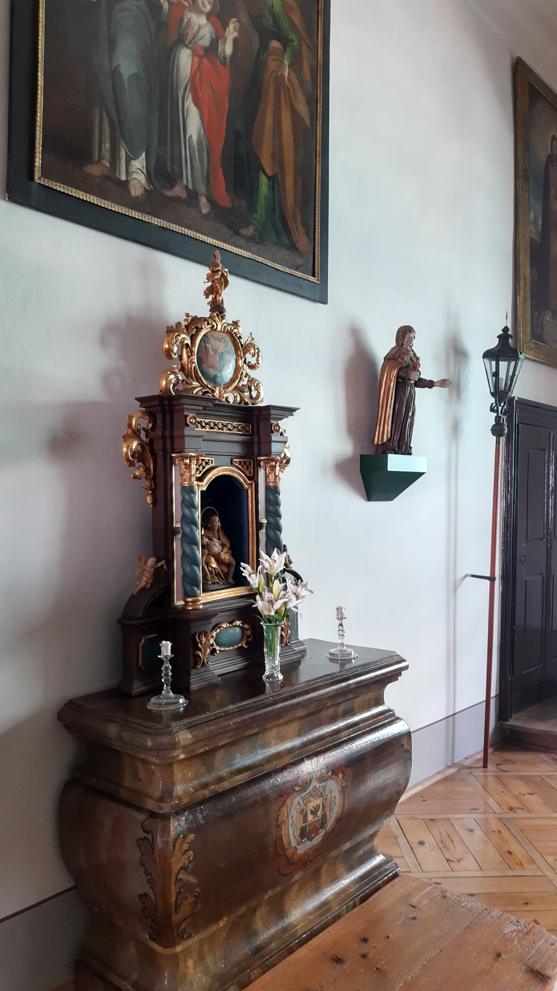 My jsme si měli možnost prohlédnout interiér zámku v podobě jaké byl v 30. let, kdy zámek obýval Mikuláš Vladimír Des Fours Walderode. Tento člen rodu byl velký vzdělanec a milovník historie a historie svého rodu. Ve svém sídle trávil čas v knihovně s velkou sbírkou knih a vlastním knihovníkem, který byl vždy připraven vyhledat požadovanou knihu či spis.