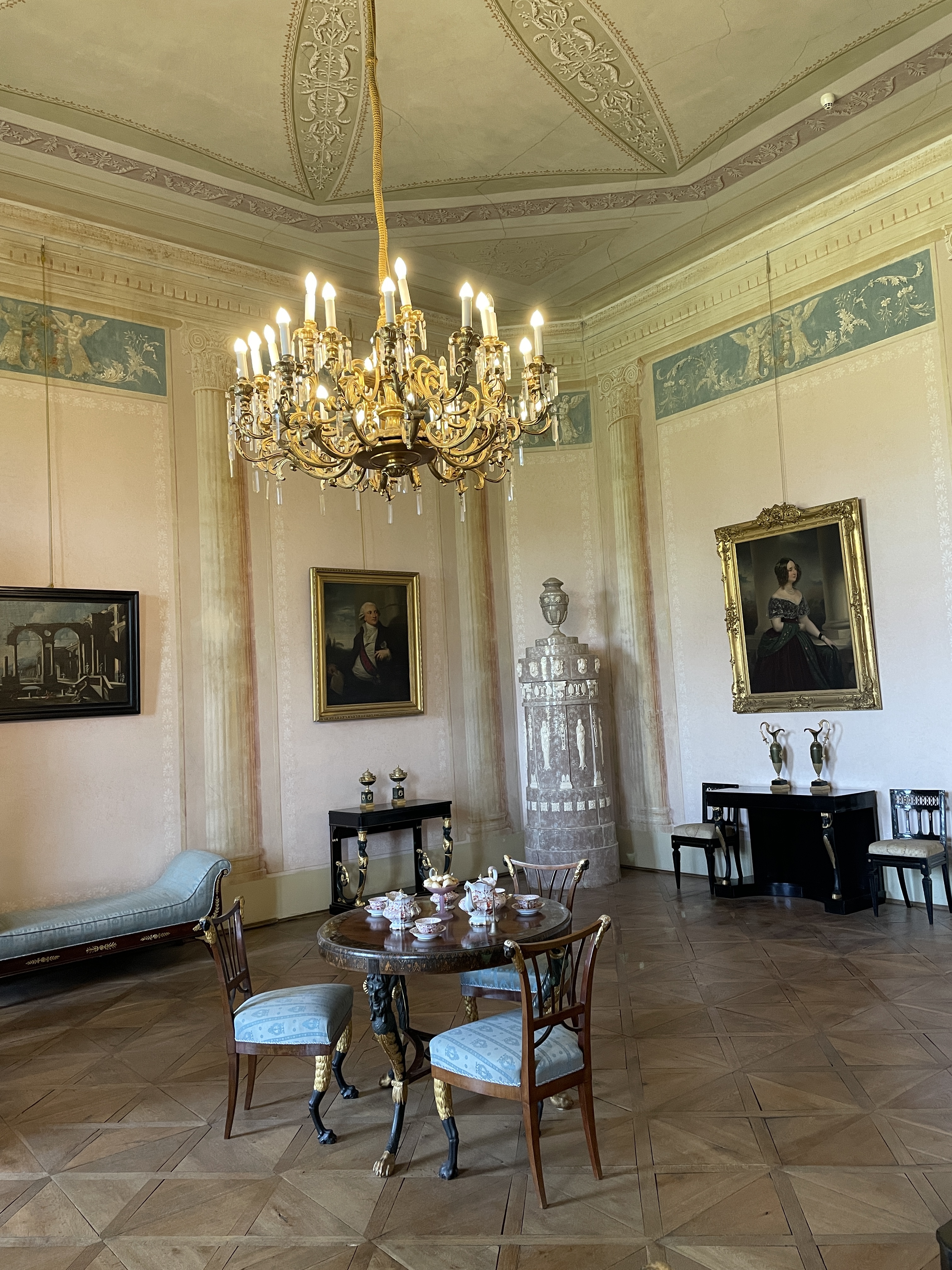 Po komentované prohlídce zámku jsme se přesunuli do restaurace u Hájků, kde pro nás byla rezervována místa na oběd. Po obědě jsme pokračovali autobusem na zříceninu letohrádku Belveder. Velmi pěkné místo se zbytky architektonicky zajímavé stavby - zříceniny kláštera s centrální osmibokou kaplí sv. Jana Křtitele s barokními detaily.