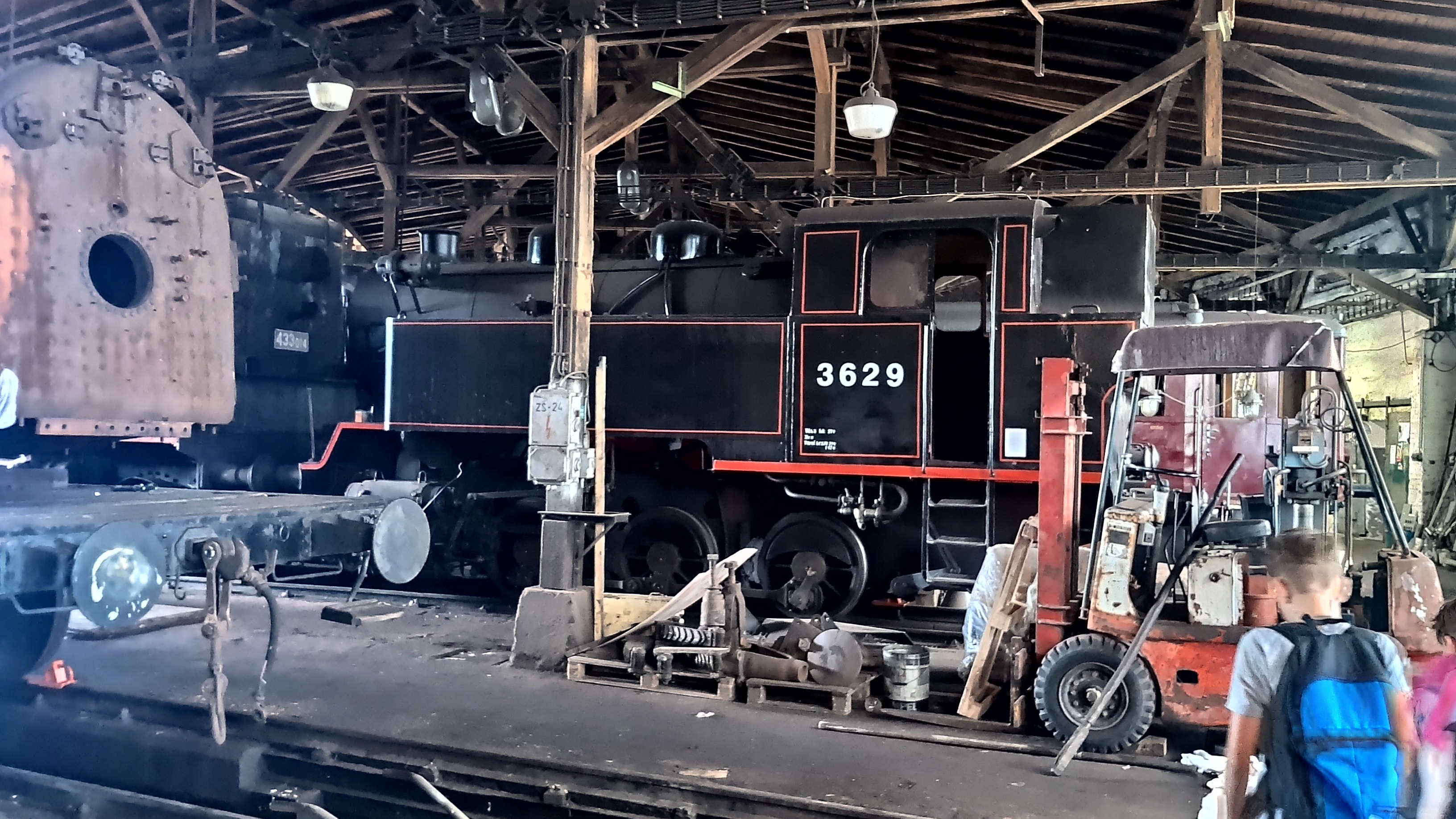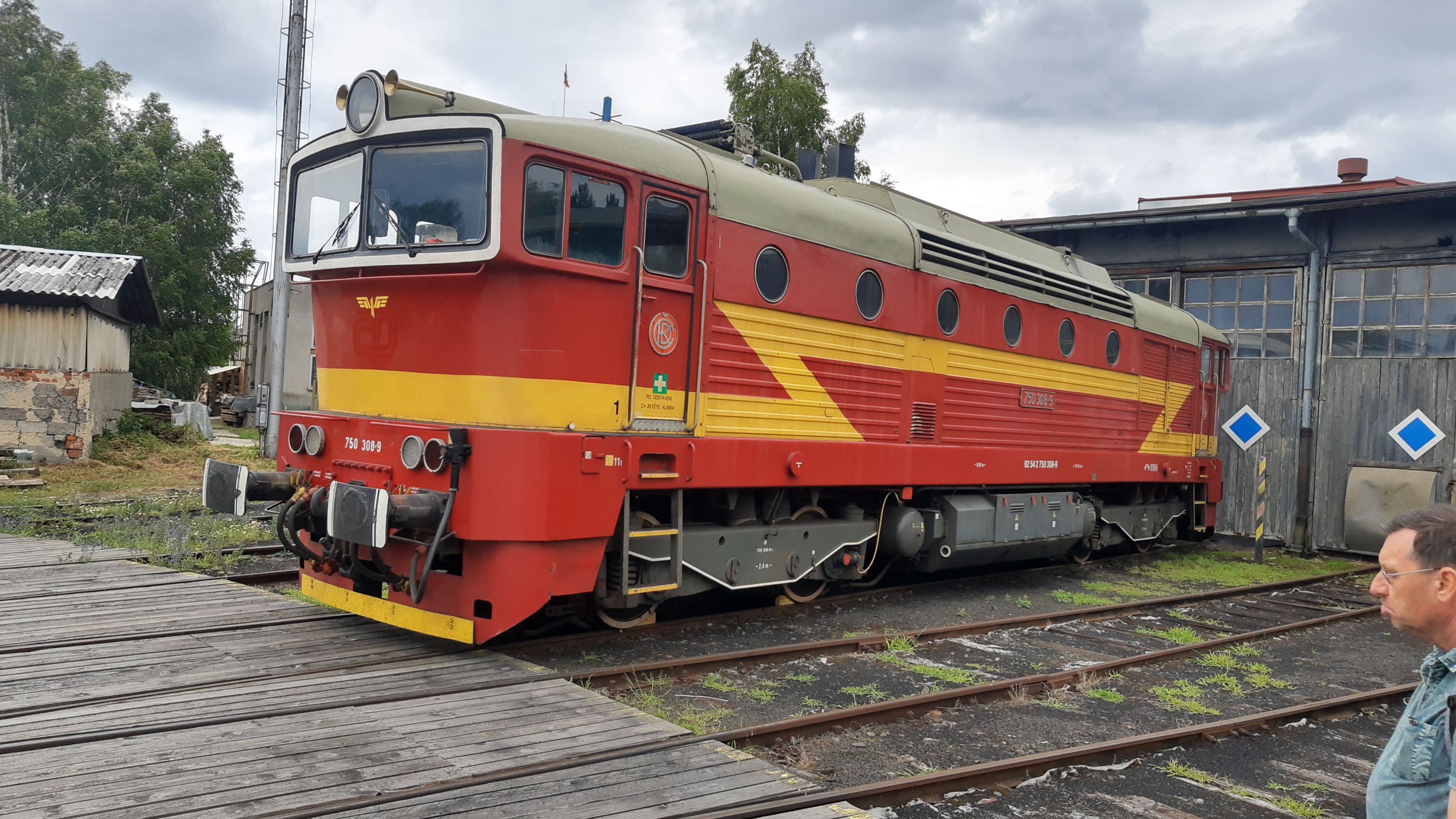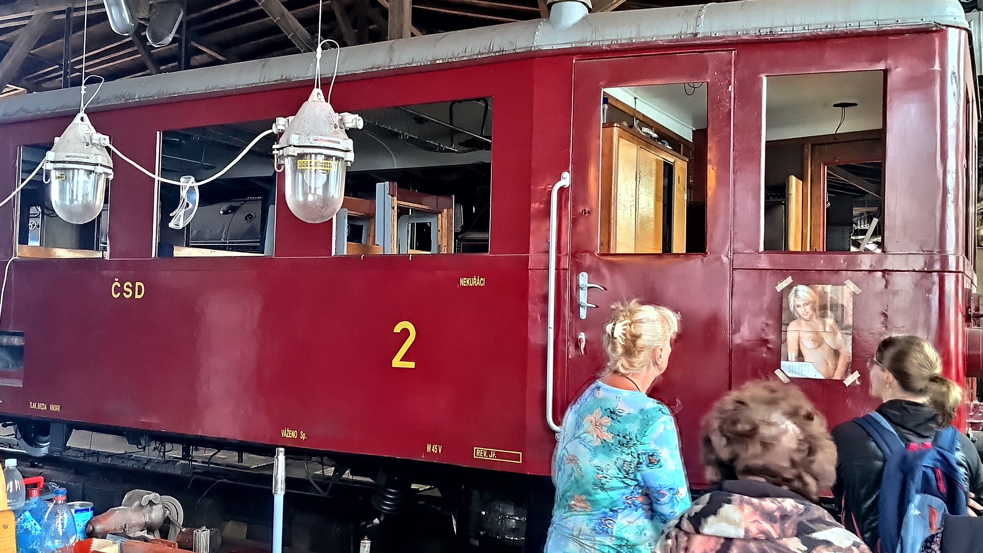 Na nás čekali dva průvodci a strojvedoucí úzkokolejky, který nás povozil vláčkem. Jeden z průvodců nás překvapil tričkem s Braillovým písmem z akce Českých drah pro nevidomé. Po projížďce nás vzali do lokomotivního depa, kde jsme mohli vidět vlaky na železničních rampách pro opravy a rekonstrukce. Poslechli jsme si, jak tento koníček pro tyto nadšence je náročný nejen fyzicky, ale především finančně. Největší části práce je hledání sponzorů. Pro zprovoznění parní lokomotivy je nutné vždy vyměnit trubky vedoucí páru z kotle. I takto malá rekonstrukce dosahuje vysokých částek.