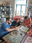Zde jsme opět odcházeli s nadšením a spokojeností nad našimi díly. K tomu si pár z nás dalo z místní malé cukrárny zákusek a nakonec jsme to zakončili dobrým obědem v restauraci Dobrý Kanec.