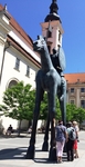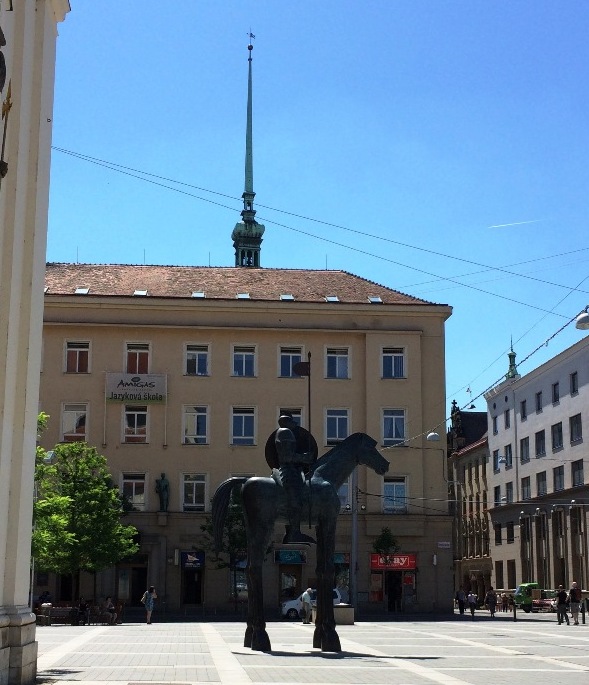 V úterý 7. června jsme se vydali do Brna. Paní průvodkyně z TIC nás provedla historickým centrem města. Z jejího vyprávění jsme se dozvěděli nejen o historii Brna, ale i o jeho některých novodobých dominantách. Například o Brněnském orloji na náměstí Svobody, který představuje mechanickou nábojnici s hodinovým strojem uvnitř, z níž vypadávají každý den v jedenáct hodin brněnské skleněnky. Jednu světle zelenou nám paní Ing. Sedláková půjčila k prozkoumání. Na Moravském náměstí nás upoutal pomník Jošta Moravského od Jaroslava Róny, který byl odhalen vloni na podzim. Bronzová socha jezdce na koni je vysoká 8 metrů a stojí před kostelem svatého Tomáše, v němž jsou uloženy Joštovy ostatky. Vedle je na kamenném podstavci bronzová haptická mapa Brna z dob třicetileté války. Už víme, pročpak v Brně zvoní poledne dvakrát. Podle pověsti se při dlouhém obléhání města v roce 1645 velitel Torstenson rozhodl naposledy udeřit a prohlásil, že pokud neobsadí Brno než budou zvonit poledne, odtáhne. Dozvěděl se o tom velitel obrany Jean Louis Raduit de Souches a dal rozkaz zvonit poledne už v jedenáct hodin. Švédské vojsko ukončilo boje a odtáhlo. Od té doby na počest vítězství na Švédy zvoní Petrské zvony poledne v jedenáct hodin.