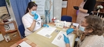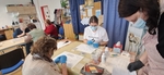 Těm, kteří na to neviděli, jsme naváděli k rukám hrnečky s požadovanými barvami. Nikdo nedělal jednobarevné výrobky, ale všichni se snažili vytvořit jakési vzory, aby výsledek hezky vypadal.