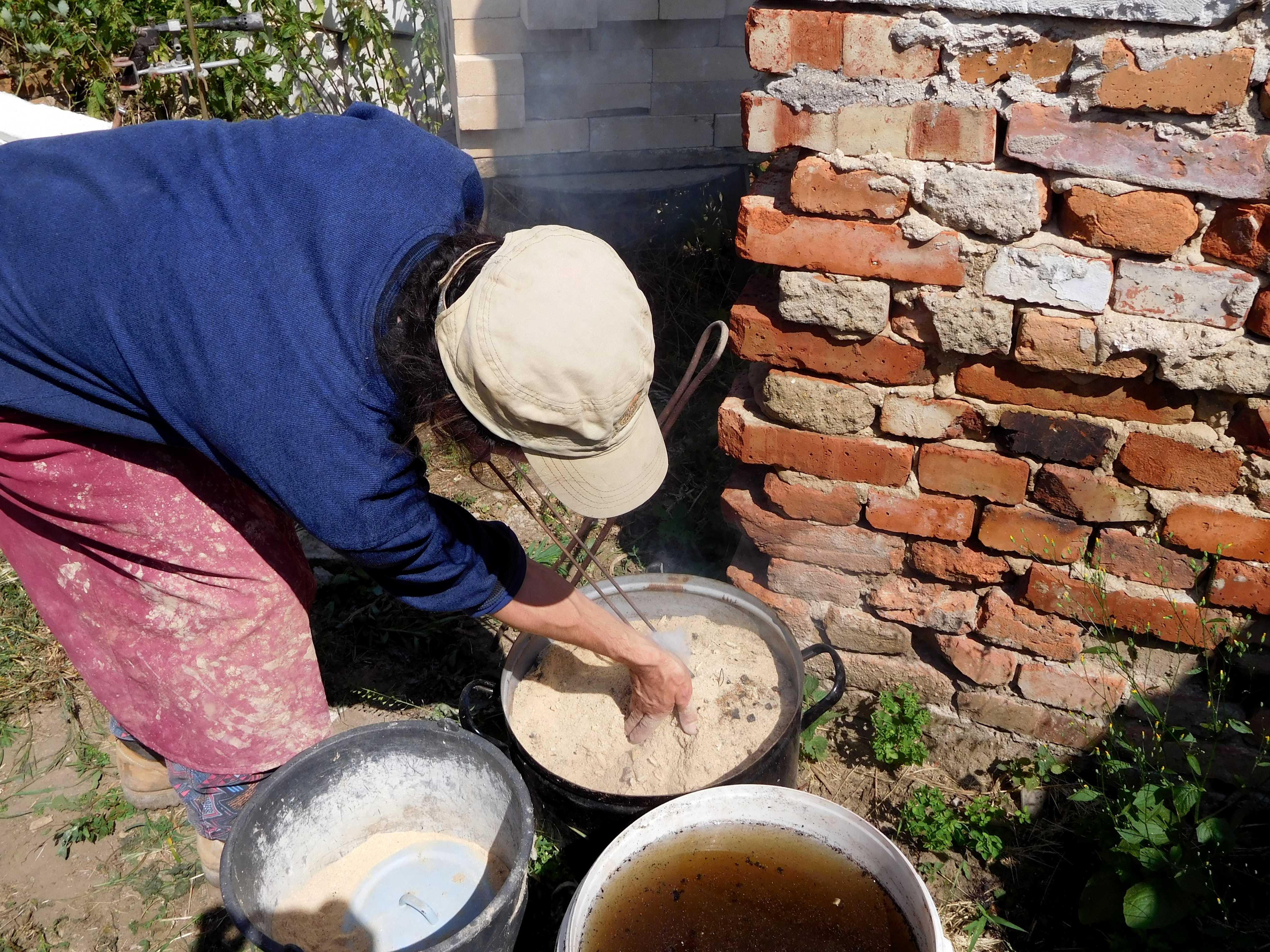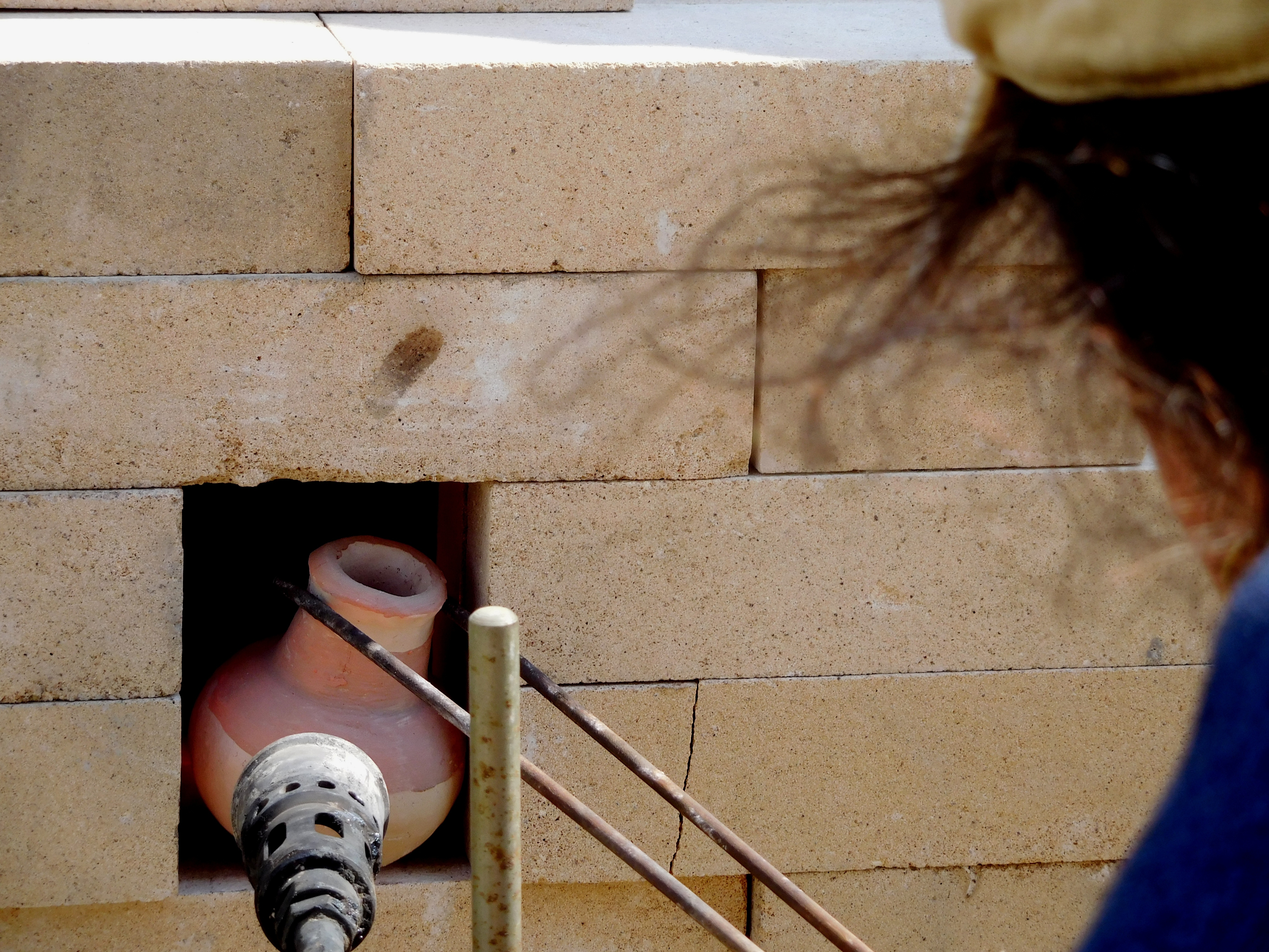 A tak si mohli naši keramici ošahat přípravenou improvizovanou pec ze šamotových cihel a ostatní přípravené atributy. Byli přítomny všemu dění, v bezpečné vzdálenosti od sálajího tepla. Ale i tak byla zajimavá zvuková kulisa procesu. Prostě opět neopakovatelná atmosféra prožitků všemy smysly něčeho nového, na kterém se částečně sami podíleli.