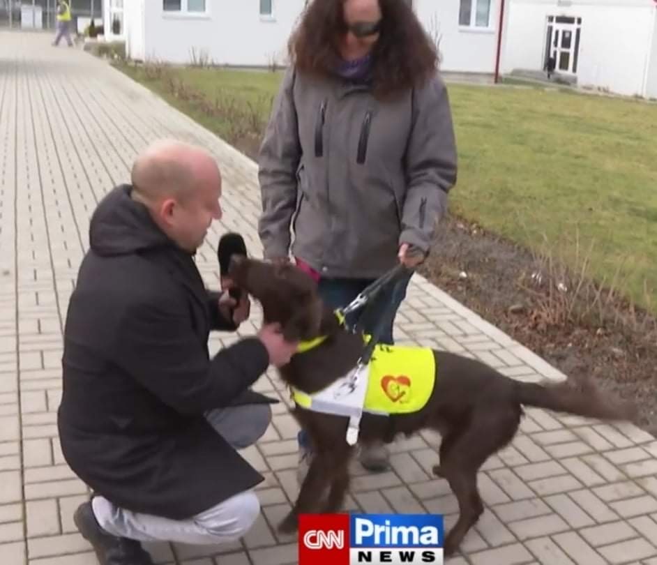 Cairo poskytuje TV Prima interview. Vypráví reportérovi o svém dětství, které prožila v Otevřené věznici Jiřice v rámci projektu „Tlapka v dlani“. (Reportér TV Prima v podřepu před hnědou fletkou Cairo, jejíž vodítko drží panička Katka; muž pravou rukou Cairo hladí, v levé drží mikrofon a vypadá to, jako by s pejskem vedl rozhovor)