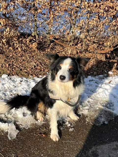 „Kde jste všichni?“ Diví se Spike. „Už tu na vás čekám takovou dobu!“ (Borderkolie sedí na sněhu a rozhlíží se)