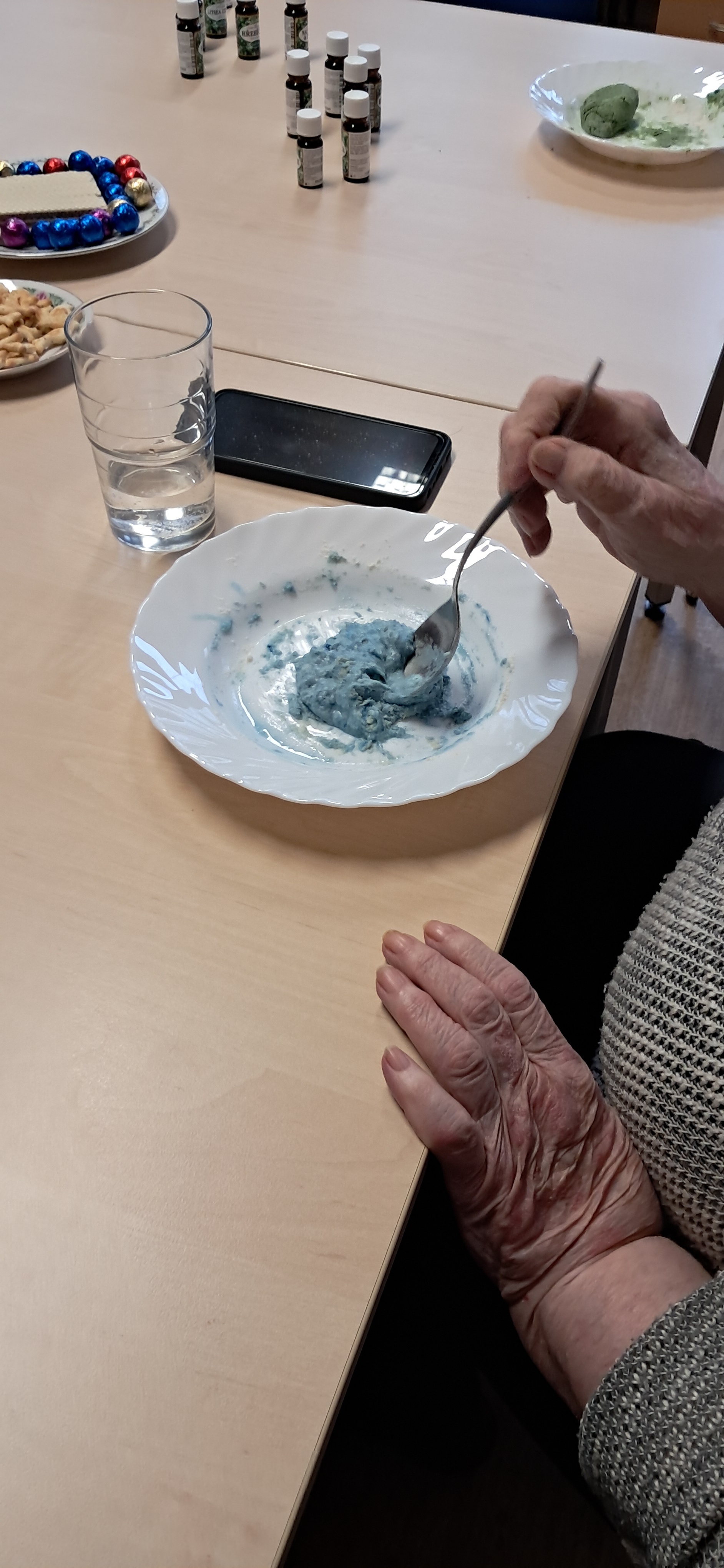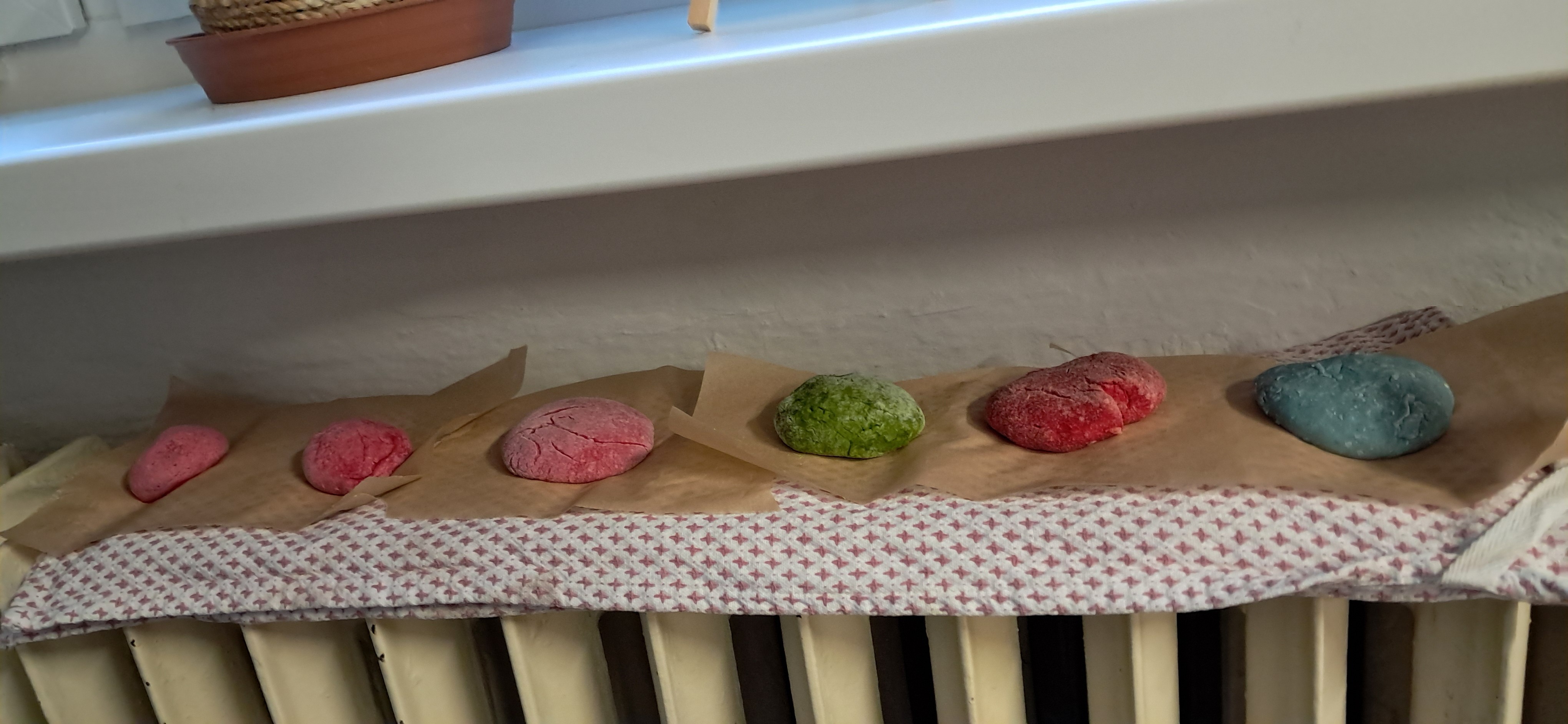 Zpracovanou hmotu pak v ruce jednoduše hnětete tak dlouho, dokud nevznikne těsto. Z něho vytvarujete jakýkoli tvar, který chcete (kouli, placičku, pokus o zvířátko a podobně). Výrobek pak položíte na pečící papír na topení, kde bude schnout a tvrdnout. Výsledek voní, a když vůni ztratí, je možné jej znovu pokapat olejíkem.