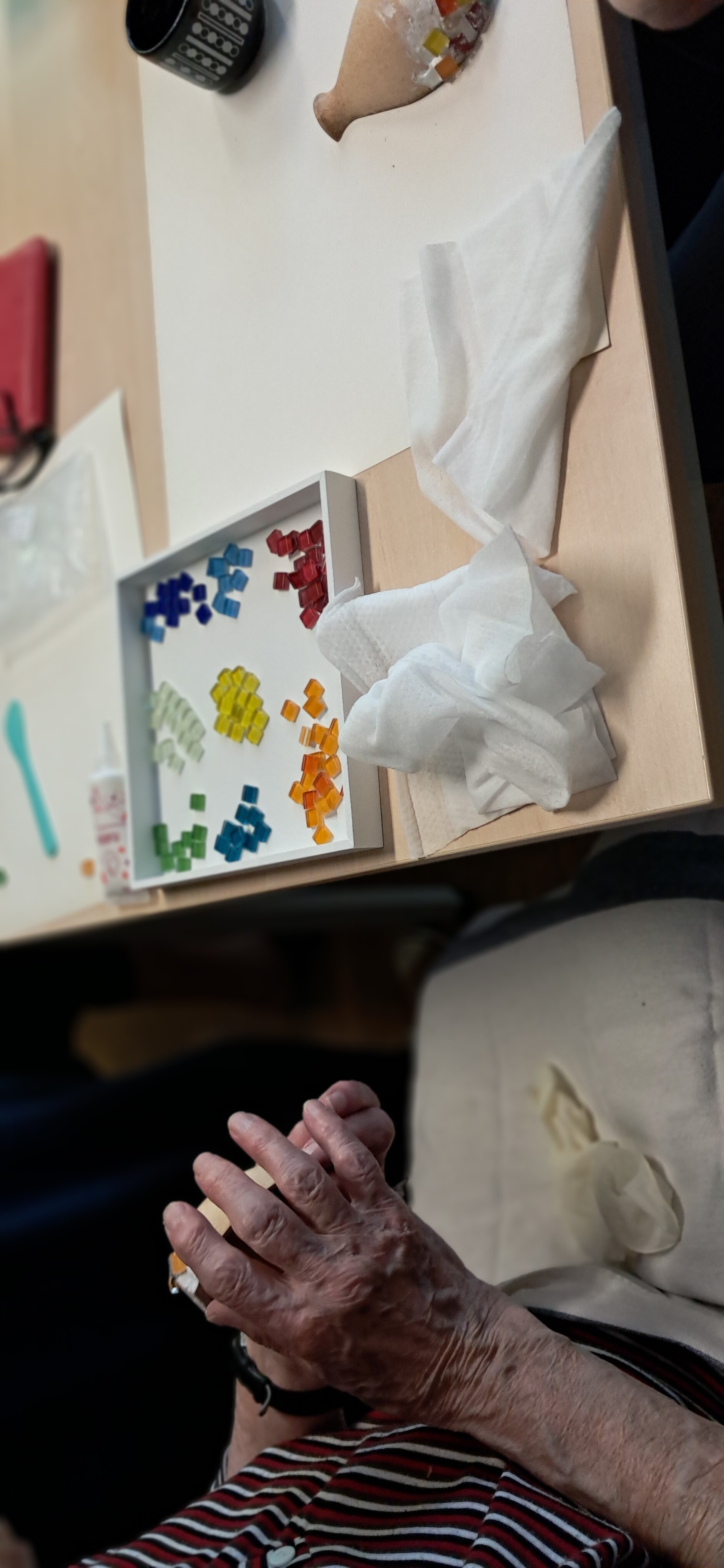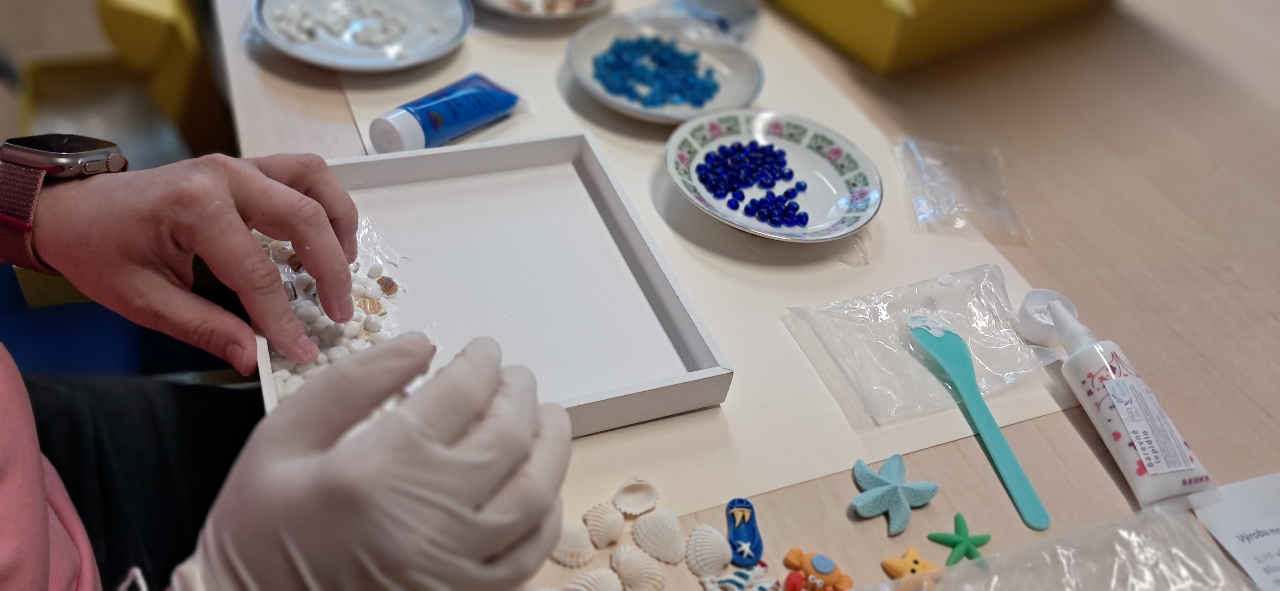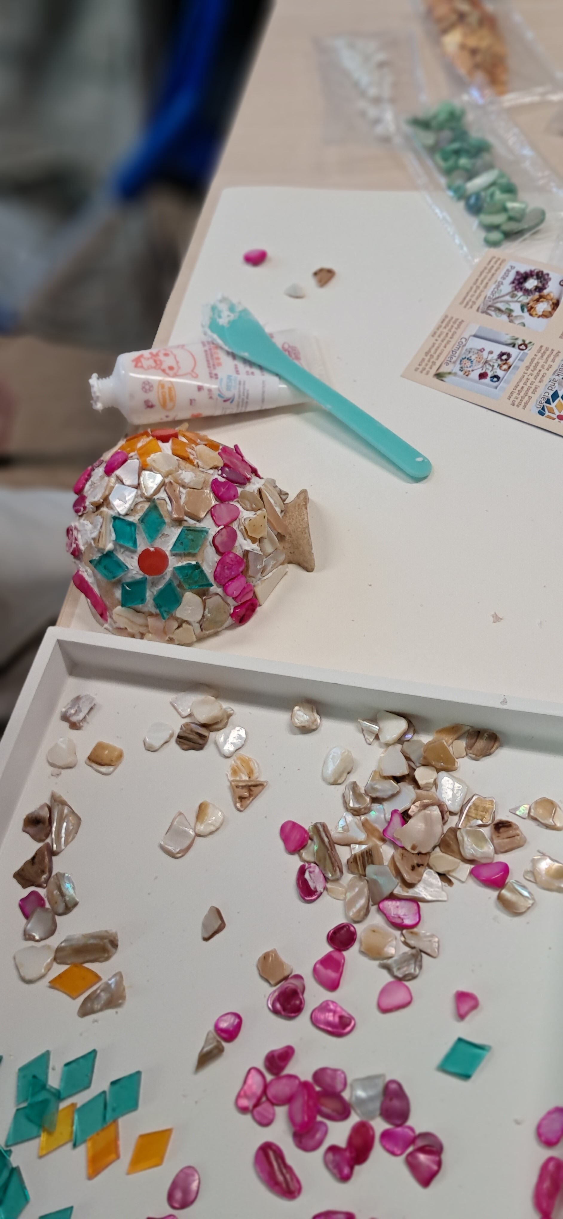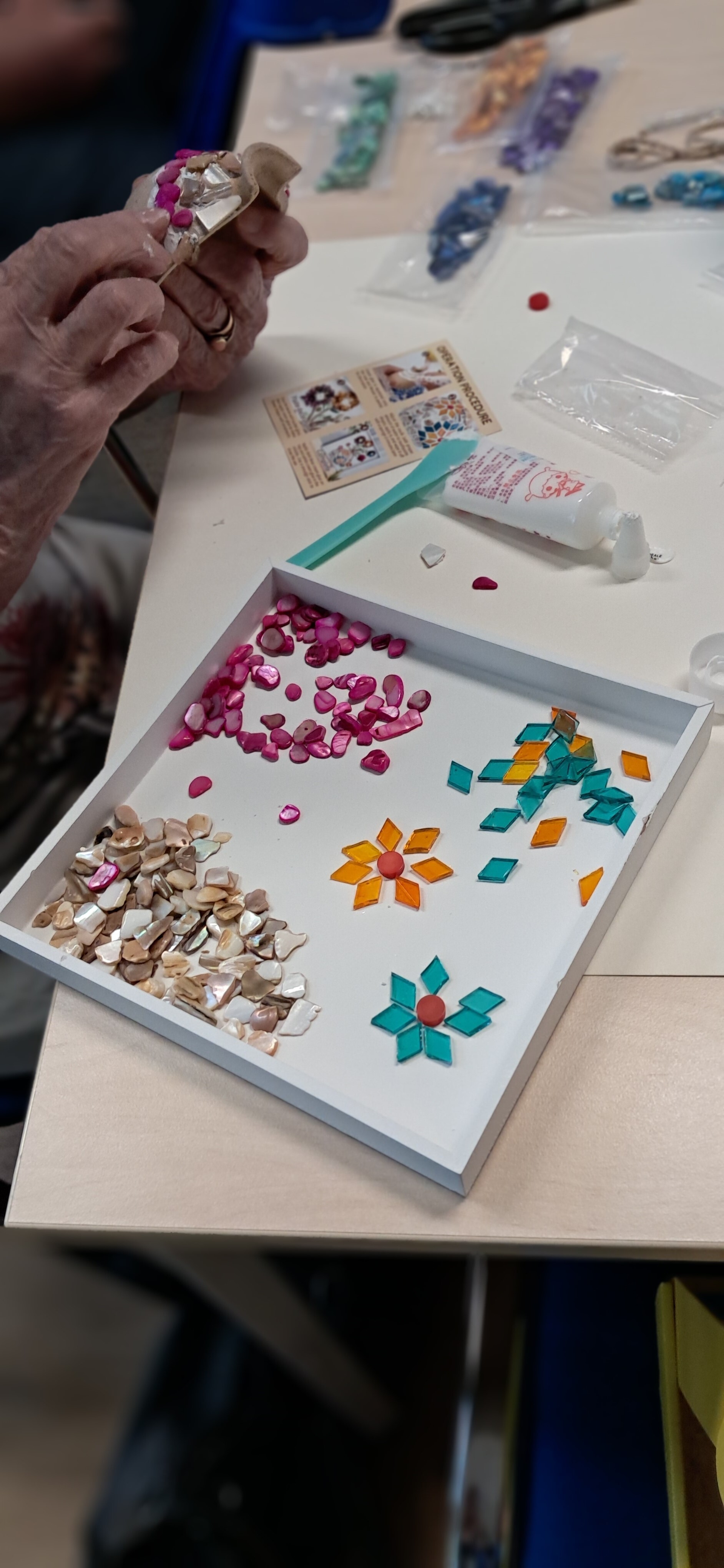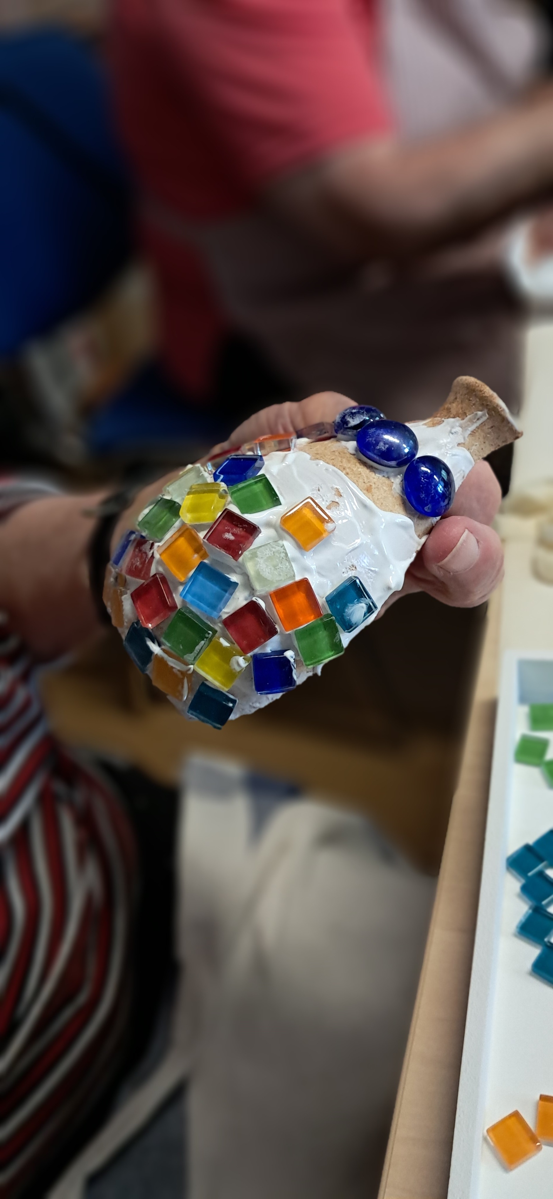 Tvoření, u něhož jsme se sešli v pondělí 13. června 2024, mělo v podtitulu hravý, až jako by laškovný dodatek „tvoříme pro radost.“ Po zkušenosti s mozaikou, a to jsem jen pomáhala, bych spíš řekla „doufáme, že to s námi v průběhu nešlehne a že nás pustí domů, když to nedokončíme.“ To aby si dal člověk něco ostřejšího na kuráž a poté pořádný dlabanec, protože jednomu vytráví, při práci se rozklepe a chvílemi neví, čí je.