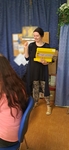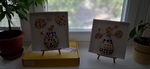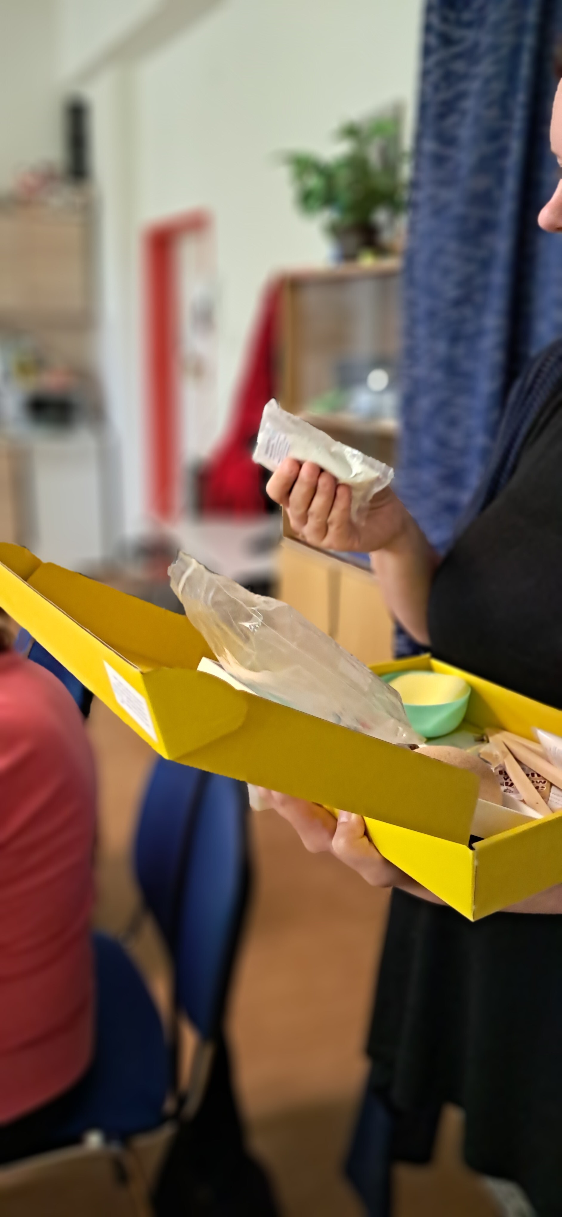 S tmelem si hráli výrobci obrazu s vázou. Základem výrobku je nízká čtvercová krabička, do které se celý obraz na konci nalepí. Někdo je maluje, my lepili. Jak bude vypadat, záleží na tvůrci. Ten si pak krabičku může postavit na trojnožku, která slouží jako stojánek na hotový skvost, dát si ji doma, kam chce a vodit k tomu návštěvy.