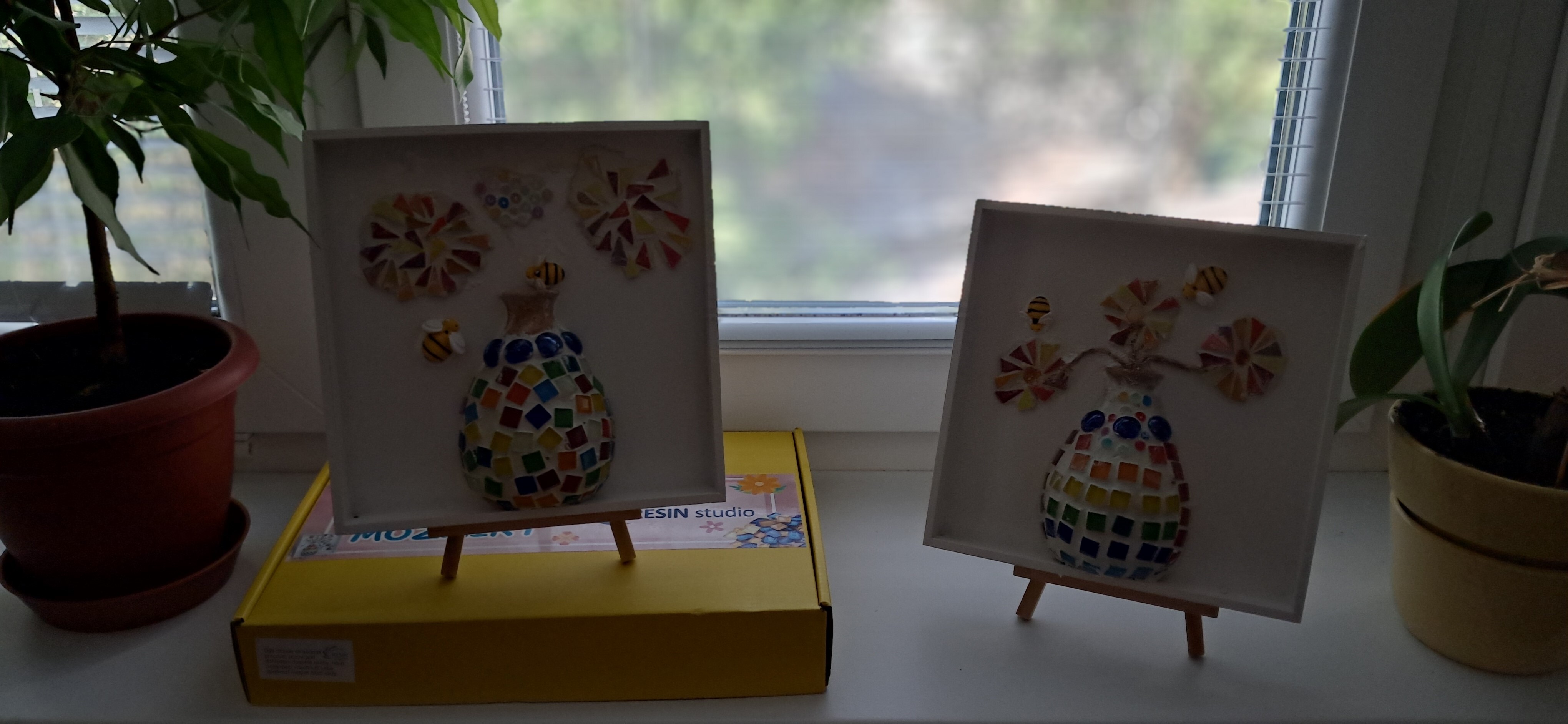 Pravda, ne všichni svoje výtvory dokončili. Trvalo, než jsme zjistili, jak s malými kousky pracovat. Tmelení vázy tak, aby se vyspárovala každá kostička, také nebylo za pět minut.