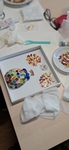 Následovala ona kreativní část lepení pestrobarevných kostiček, které opravdu vypadaly jako maličké dlaždičky. Z jedné strany hezky barevné a hladké, z druhé drsnější bílé.